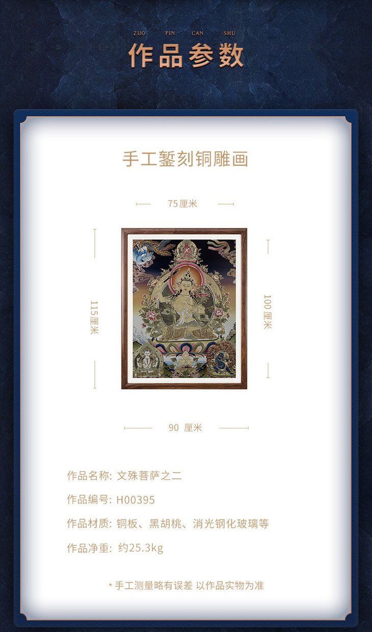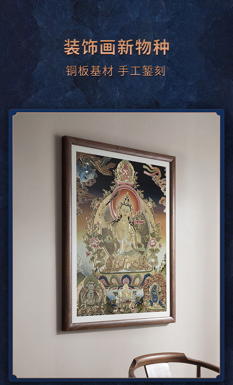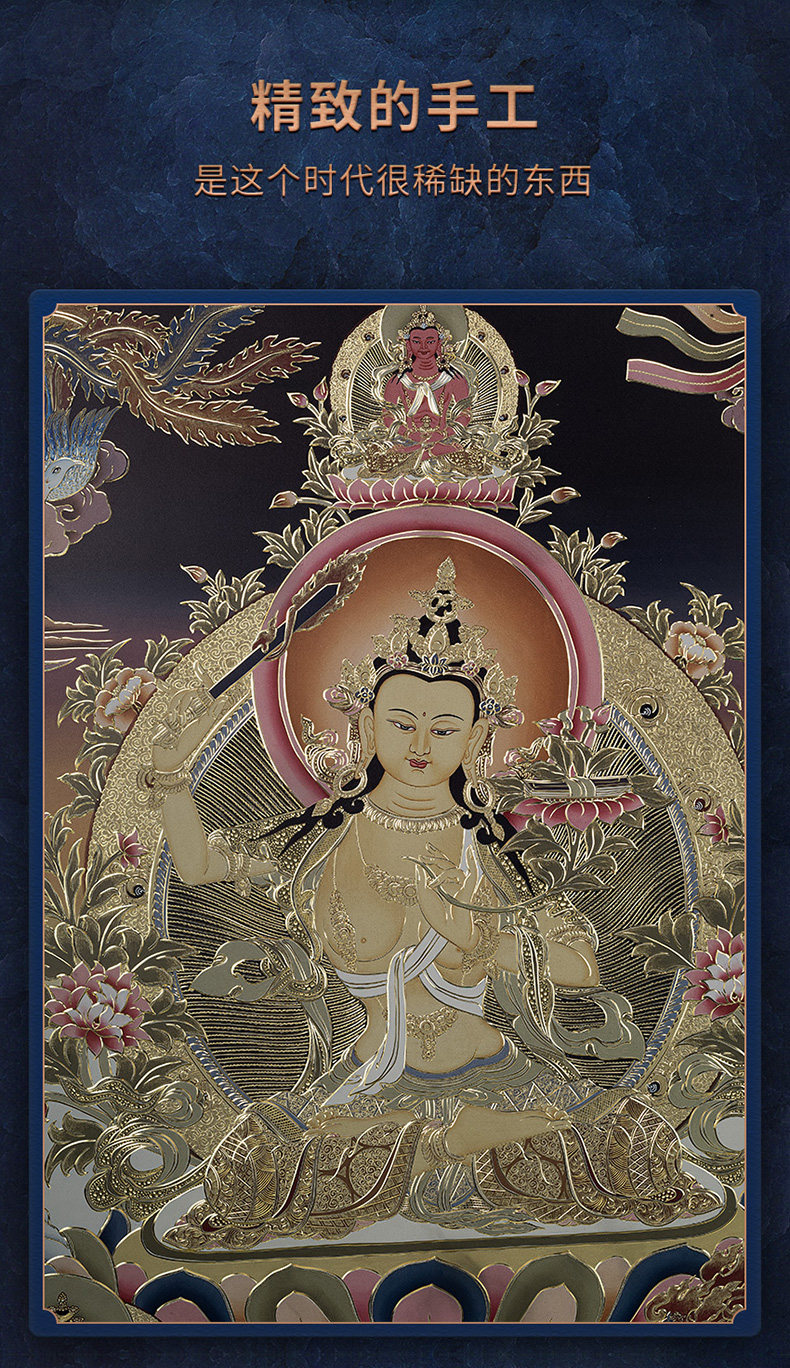 铜师傅 手工錾刻 唐卡铜雕画《文殊菩萨之二》