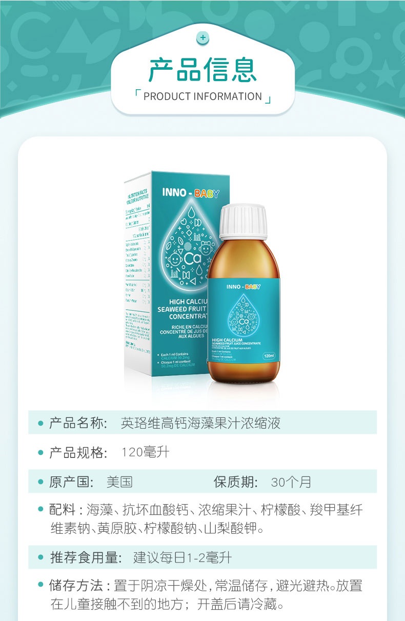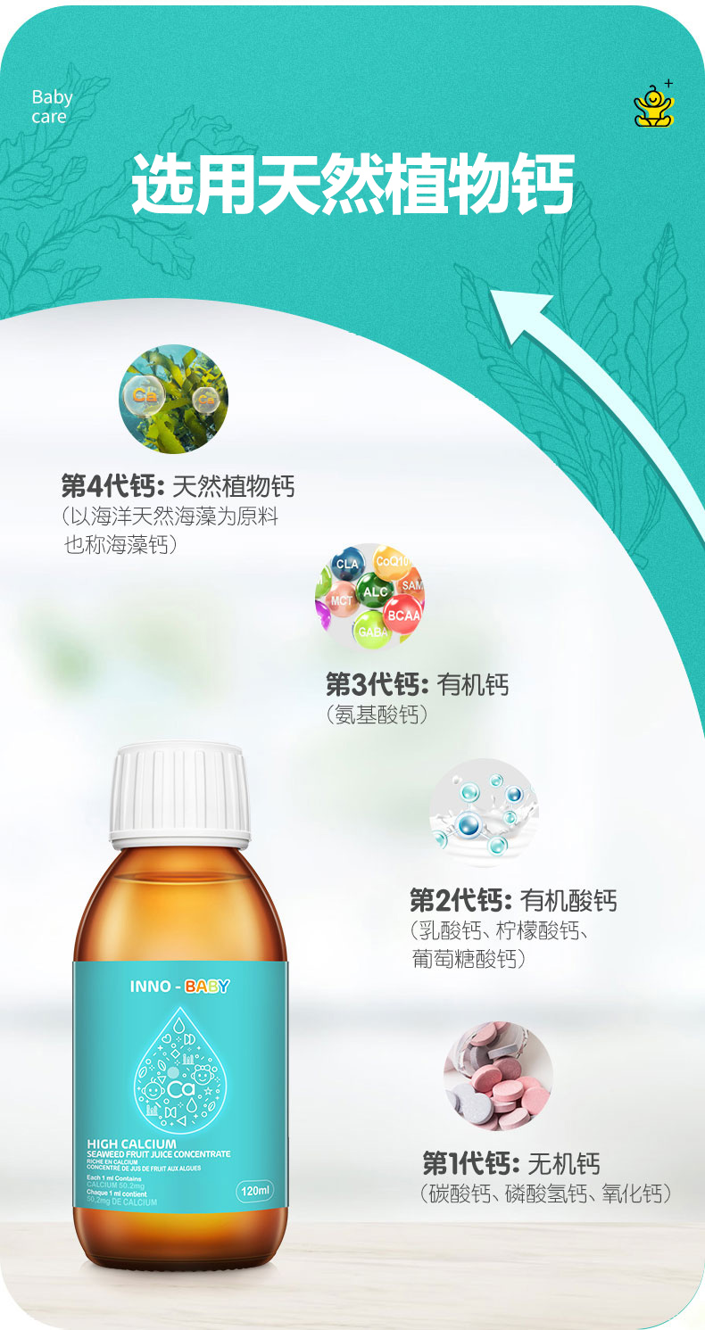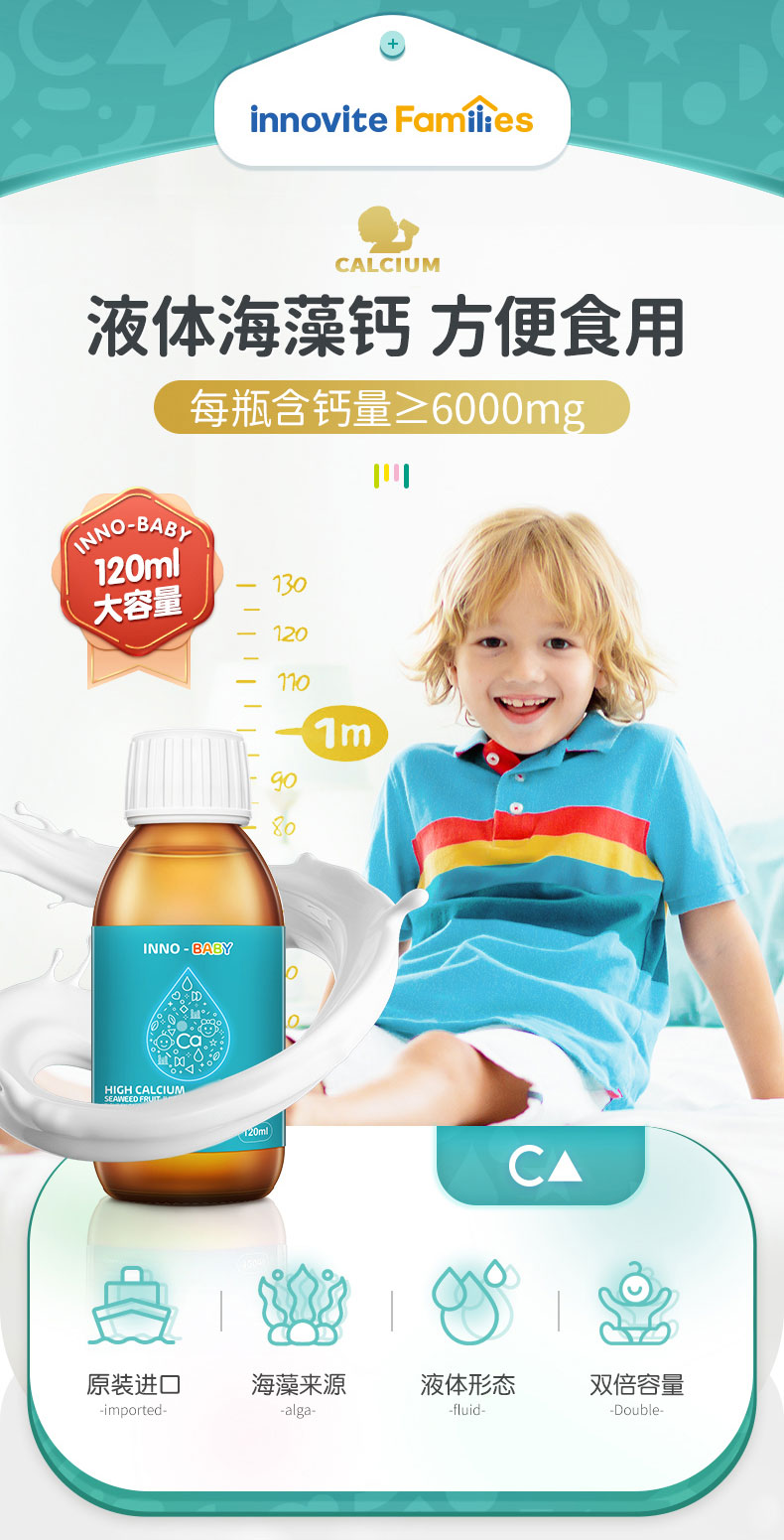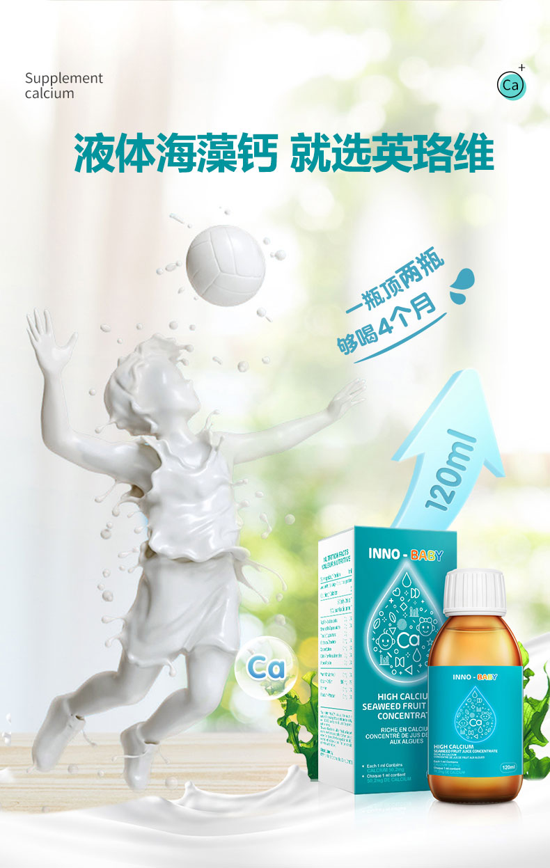 英珞维海藻钙宝宝婴儿补钙婴幼儿钙滴剂儿童天然液体钙乳钙 120ml