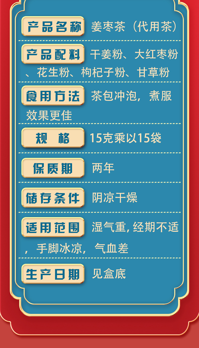 姜枣茶 除湿气 经期不痛 手脚不凉 气血佳 15包/盒