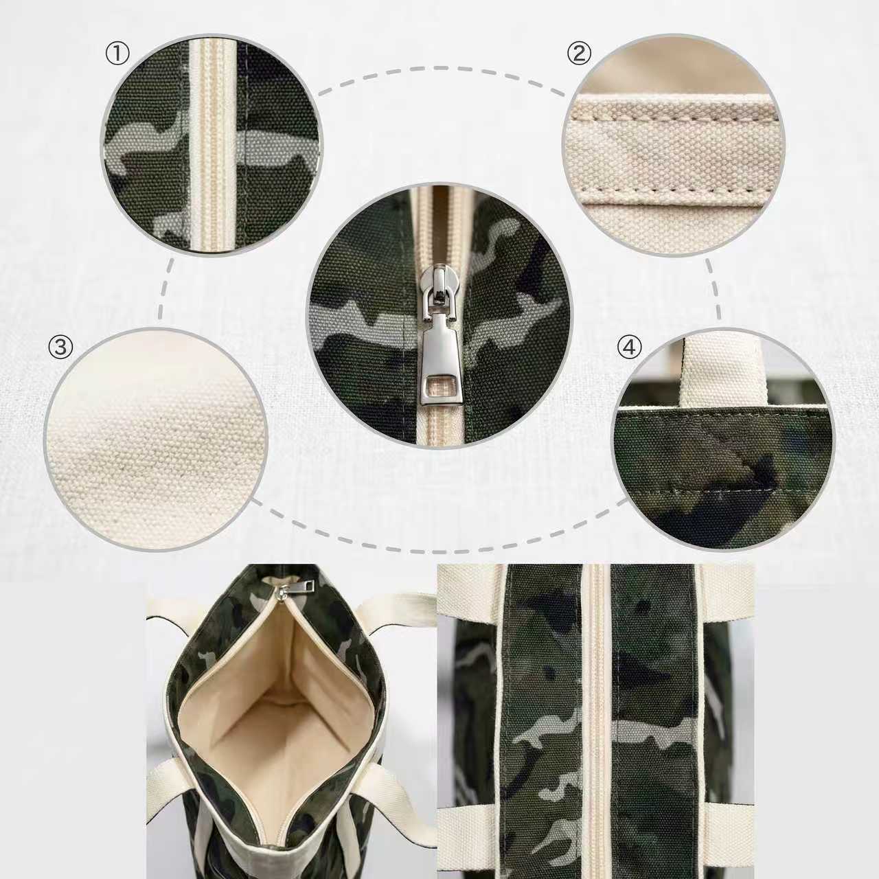 材质:外层:16A米色全棉帆布+迷彩牛津布