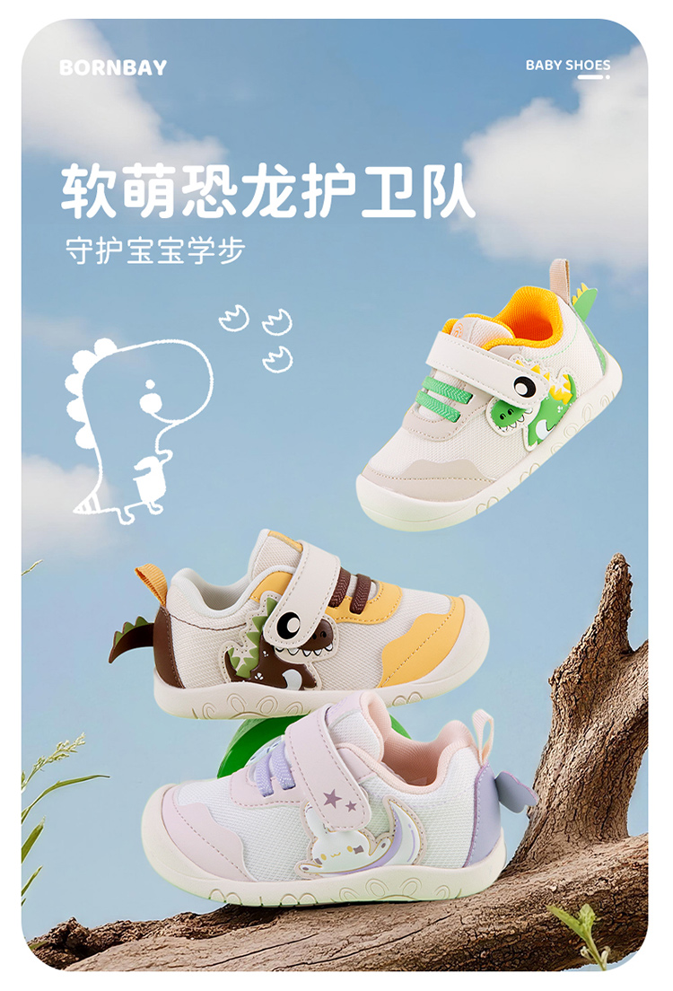 贝贝怡春秋新款男女宝宝学步鞋魔术贴圆头防踢鞋透气稳步鞋ZB3EX007