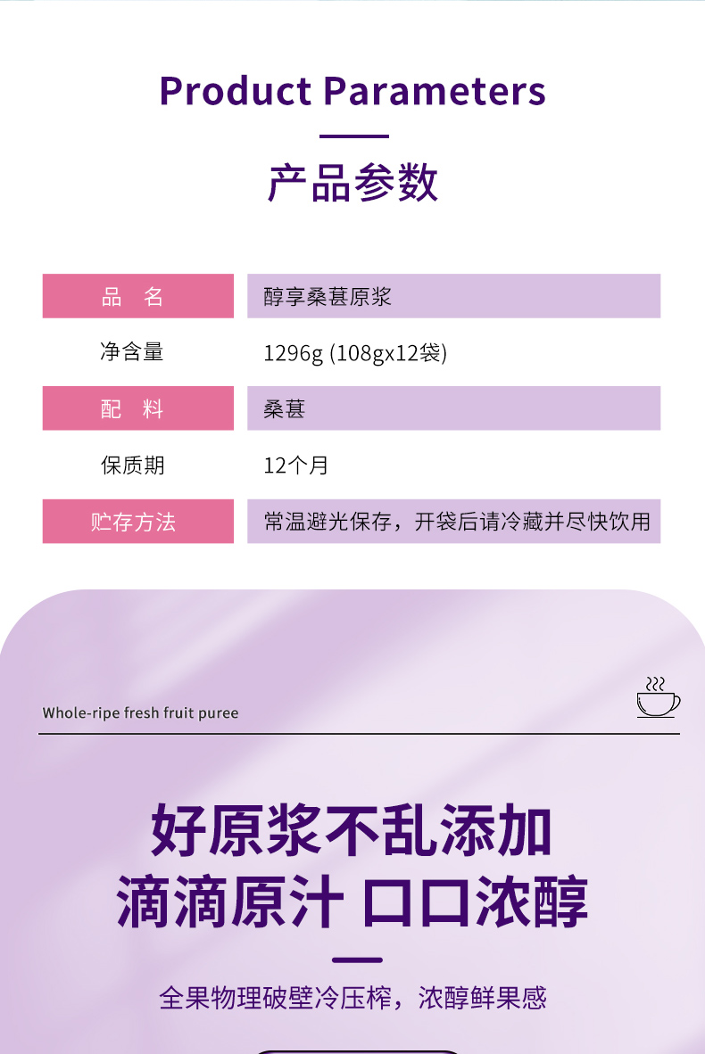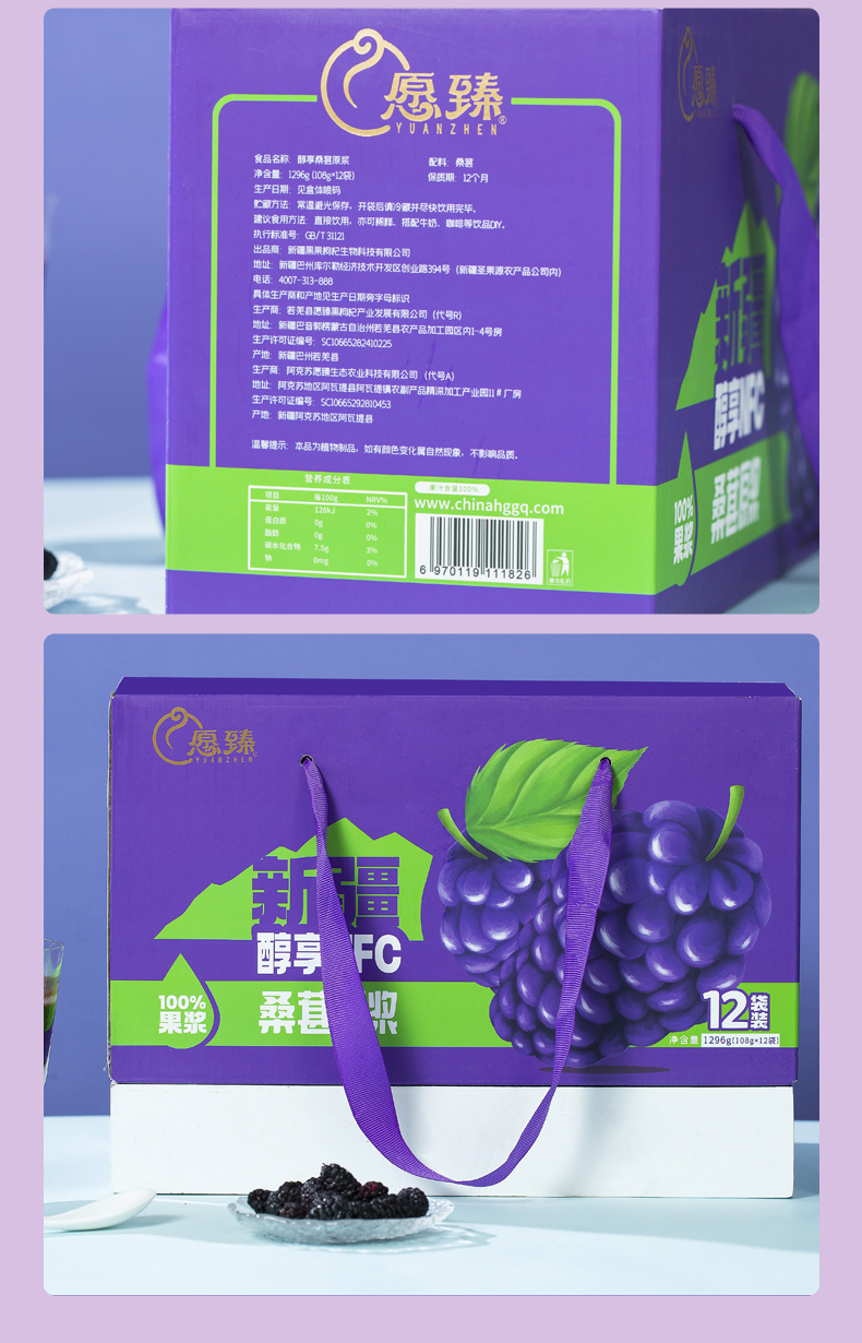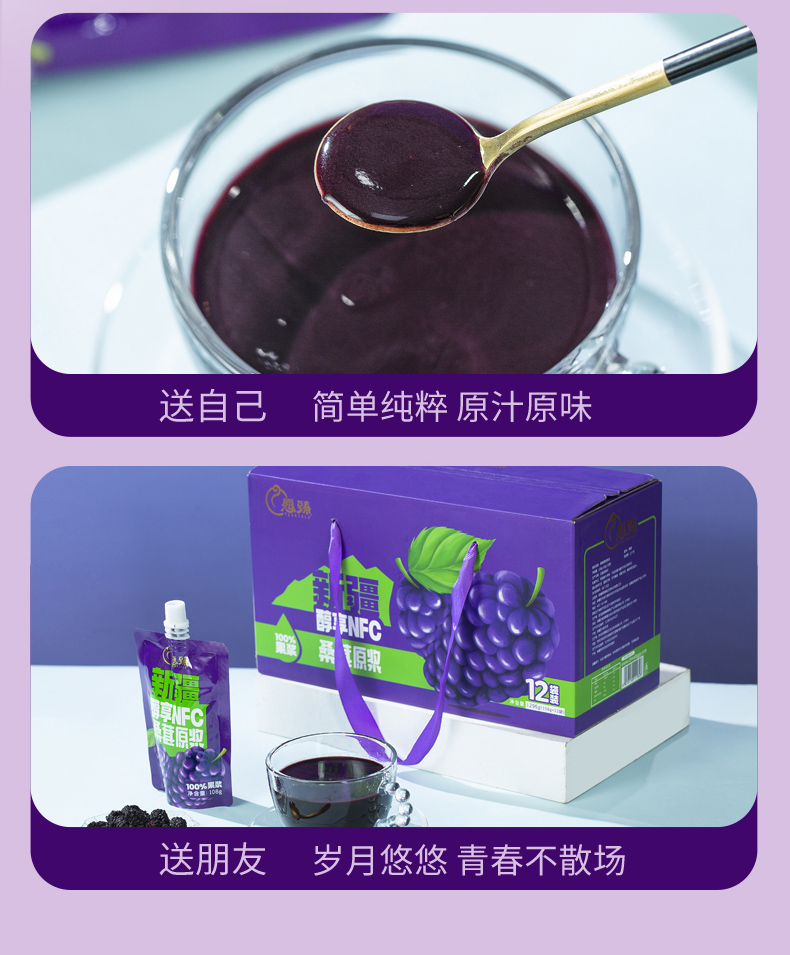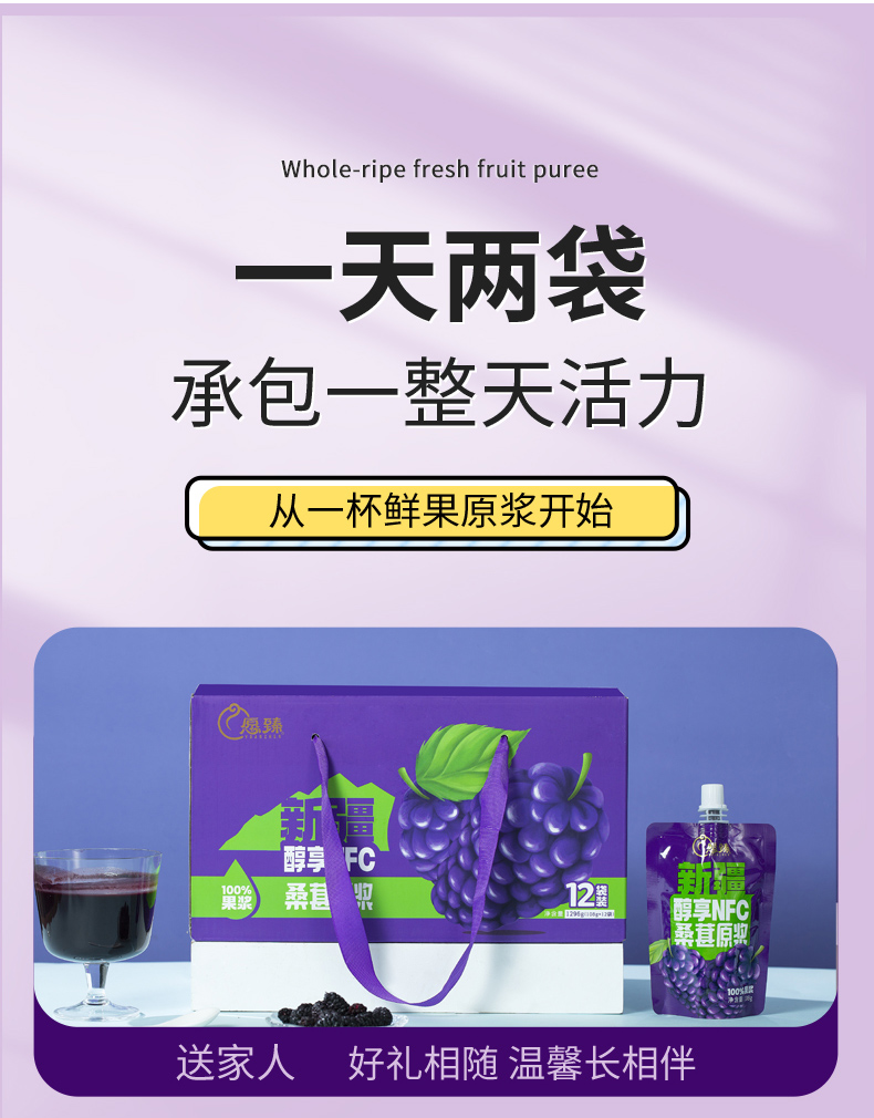 【全国包邮】新疆桑葚原浆(108g*12袋*1盒)