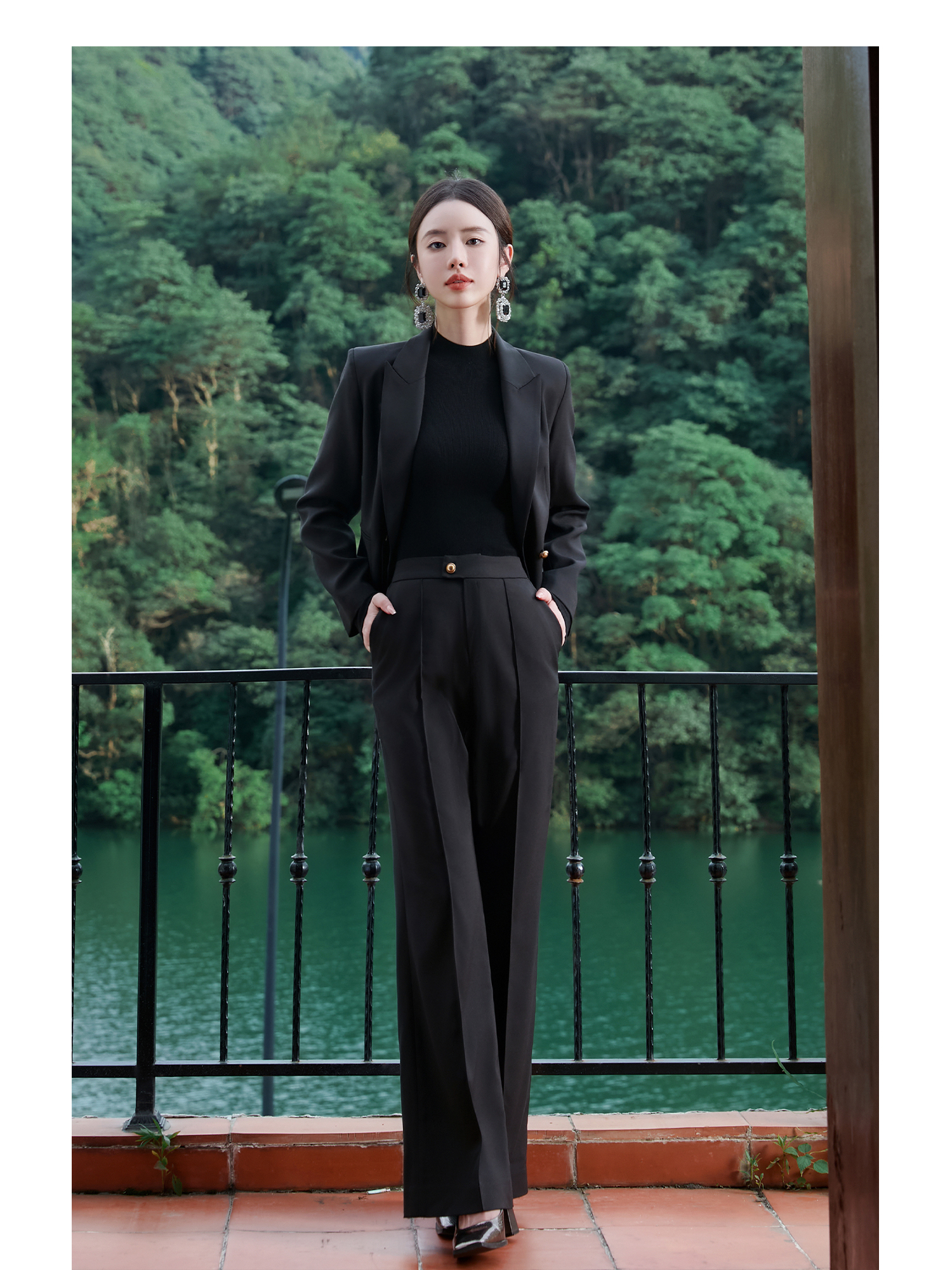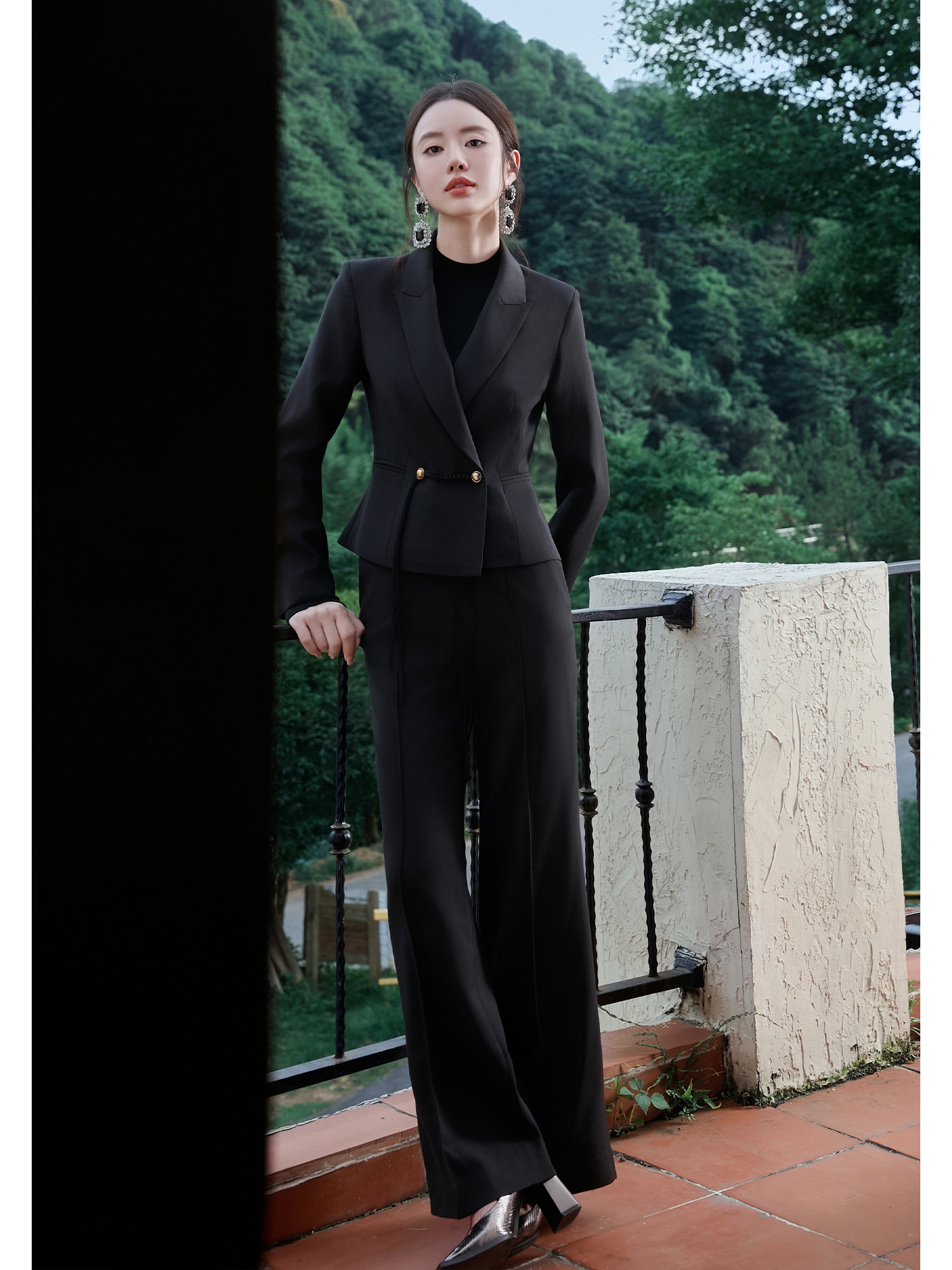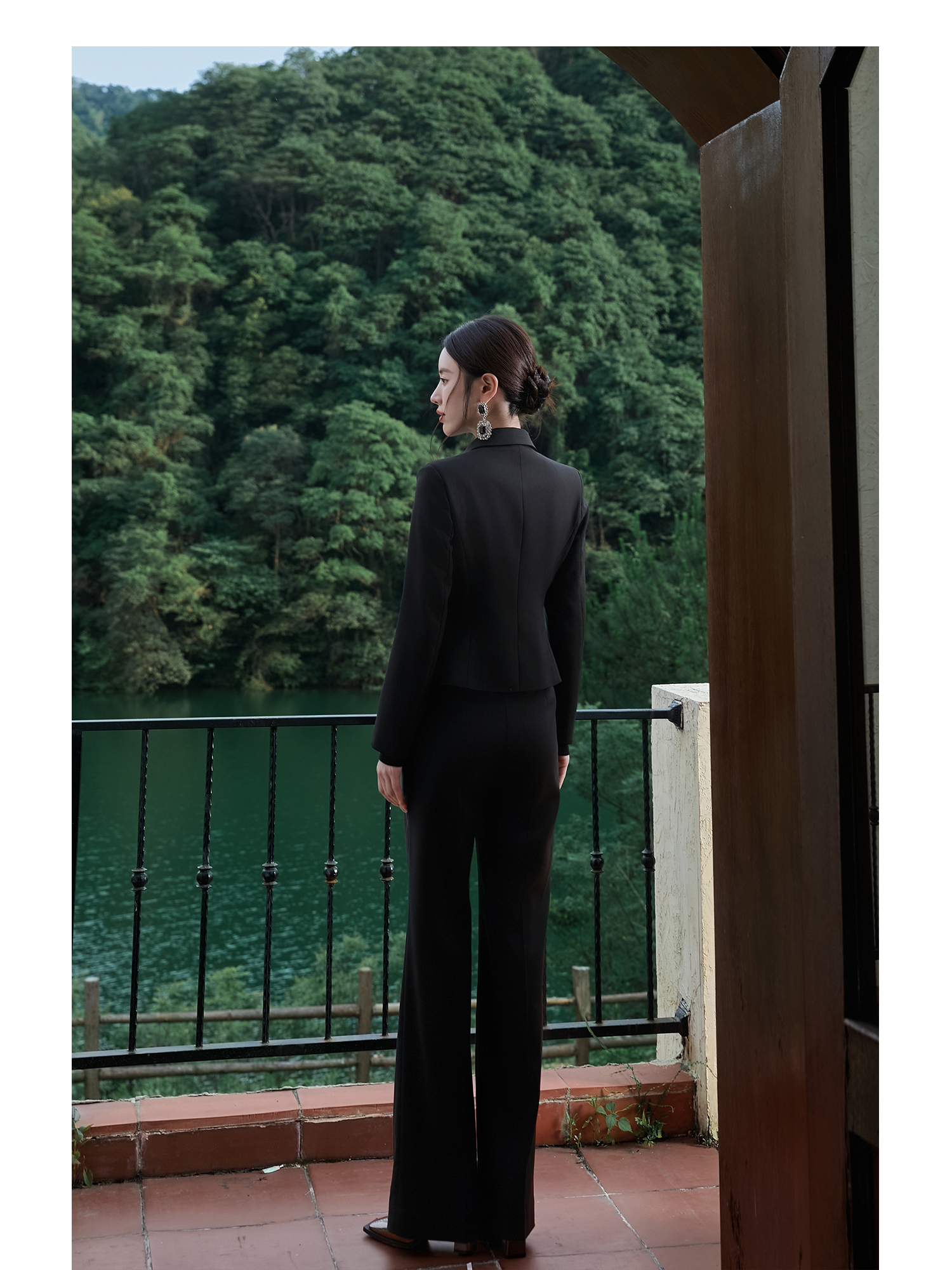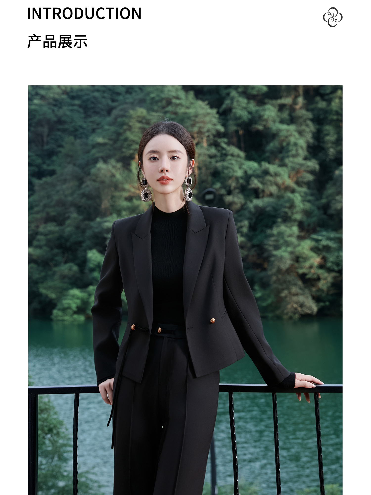 FUYAO扶摇 短款西装两件套女2025新款高级感黑色小西服时尚套装秋