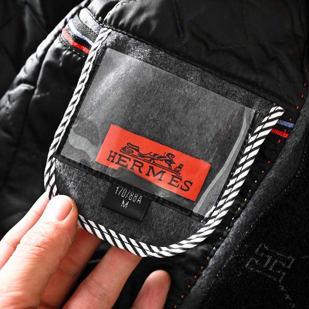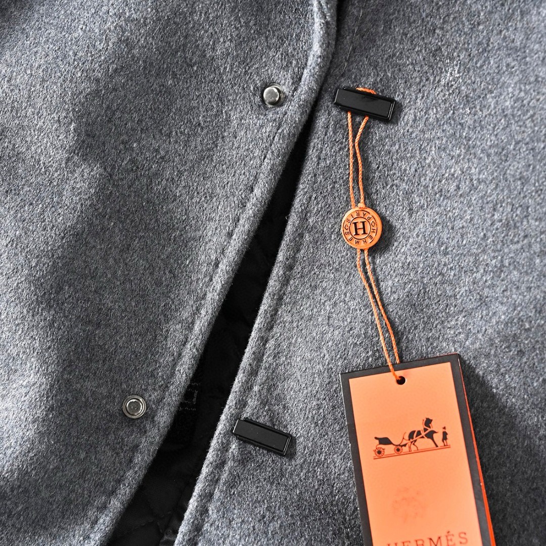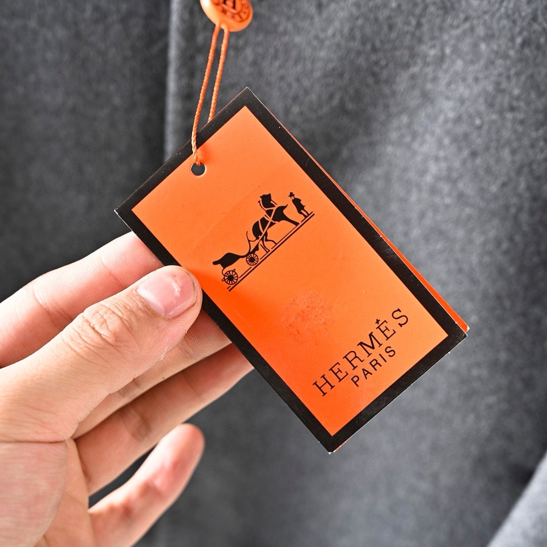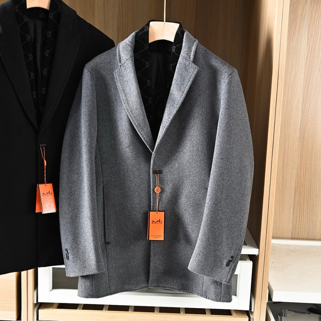 Hermes/爱马仕H家2025秋冬季加棉加厚商务休闲羊毛毛呢围巾中长款大衣外套