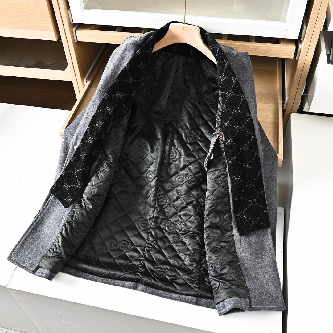 LOROPIANA (意大利高级品牌)简称:爱马仕的天花板!2022冬季新款纯色绵羊毛混纺羊毛呢大衣,男士领口一圈围巾设计!贸易公司渠道稀出,高级时装品牌2025年秋冬系最新秀款上线,品相与款型兼备的高端黑色羊毛呢大衣,各位男士心头最受追捧的冬季臻品!