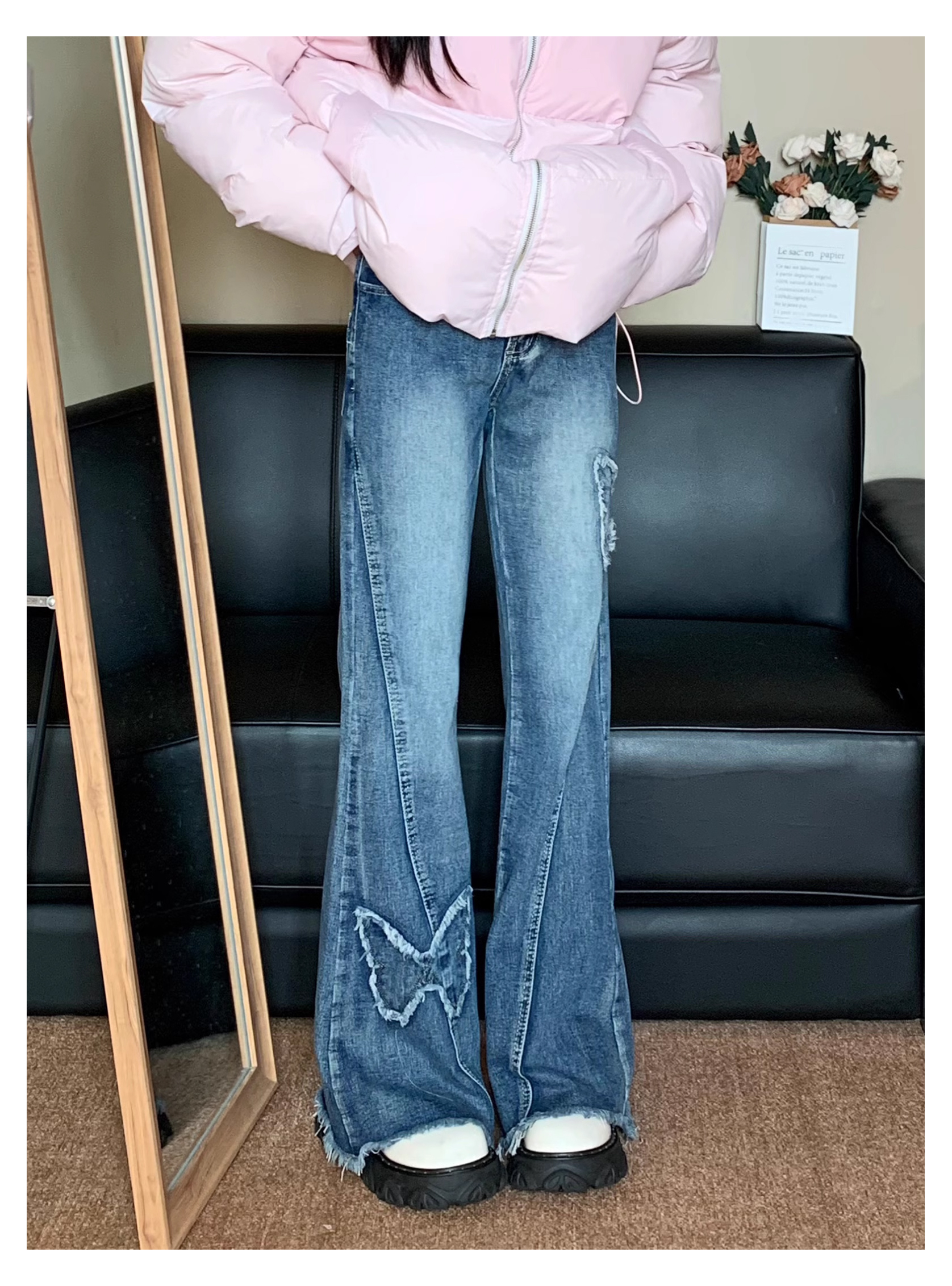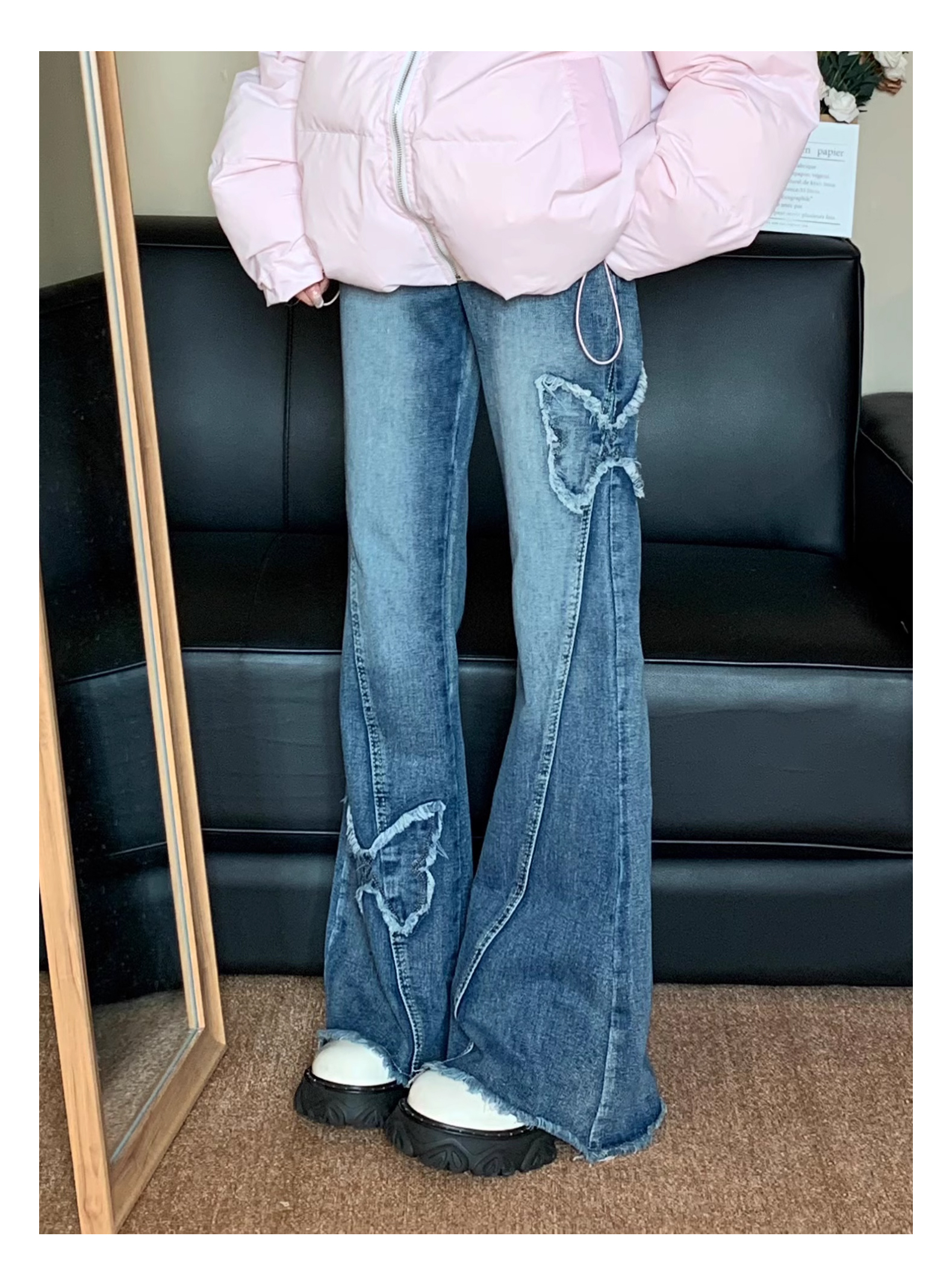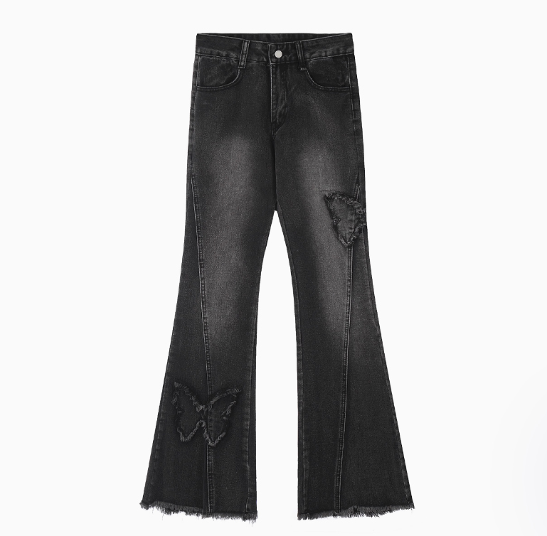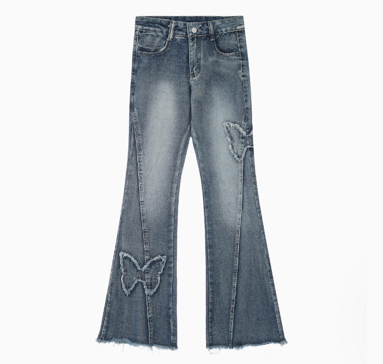 裁缝学苑AS408美式复古蝴蝶刺绣牛仔裤纸样女装裤子马蹄微喇高腰样板