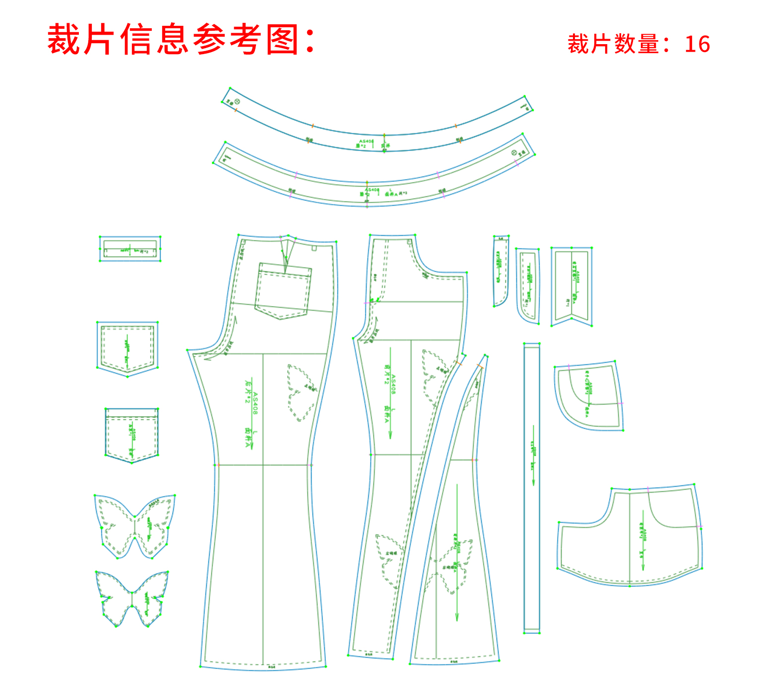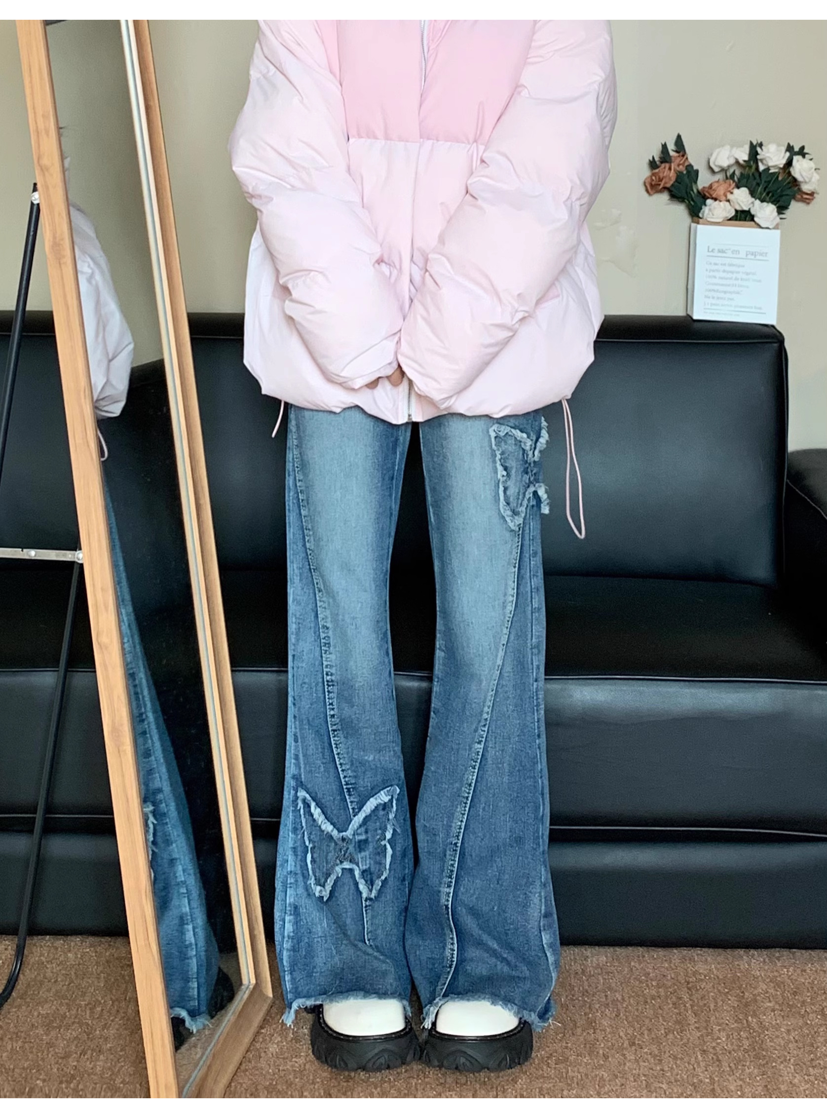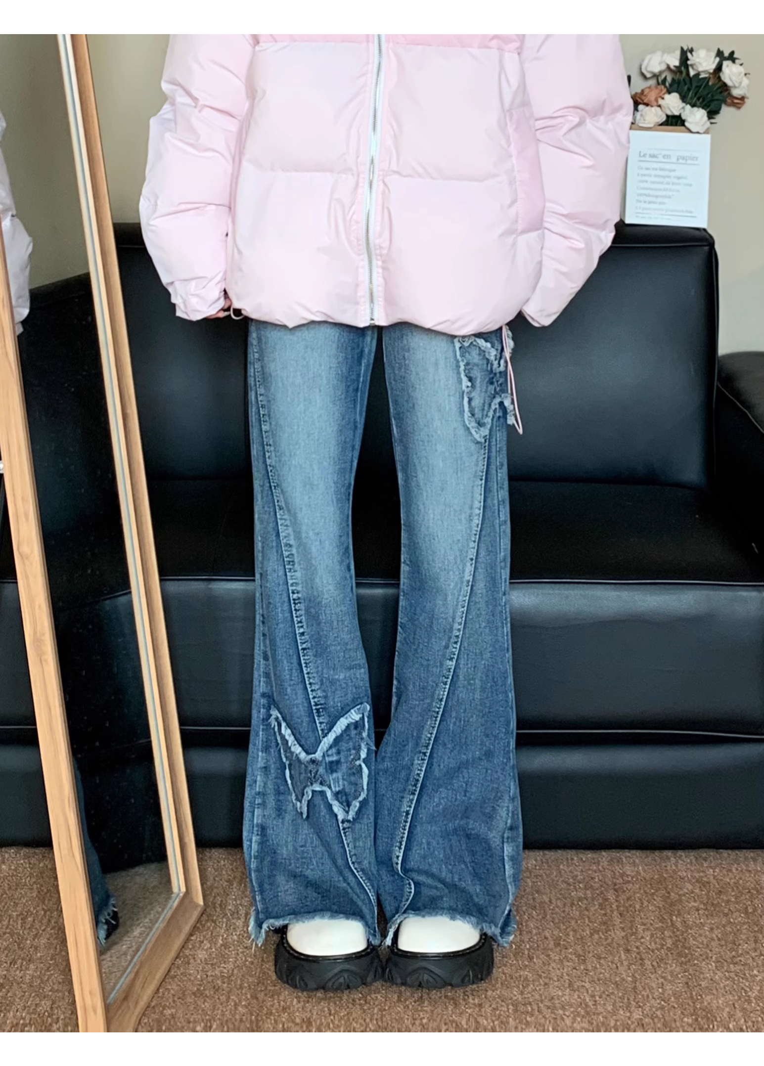 裁缝学苑AS408美式复古蝴蝶刺绣牛仔裤纸样女装裤子马蹄微喇高腰样板