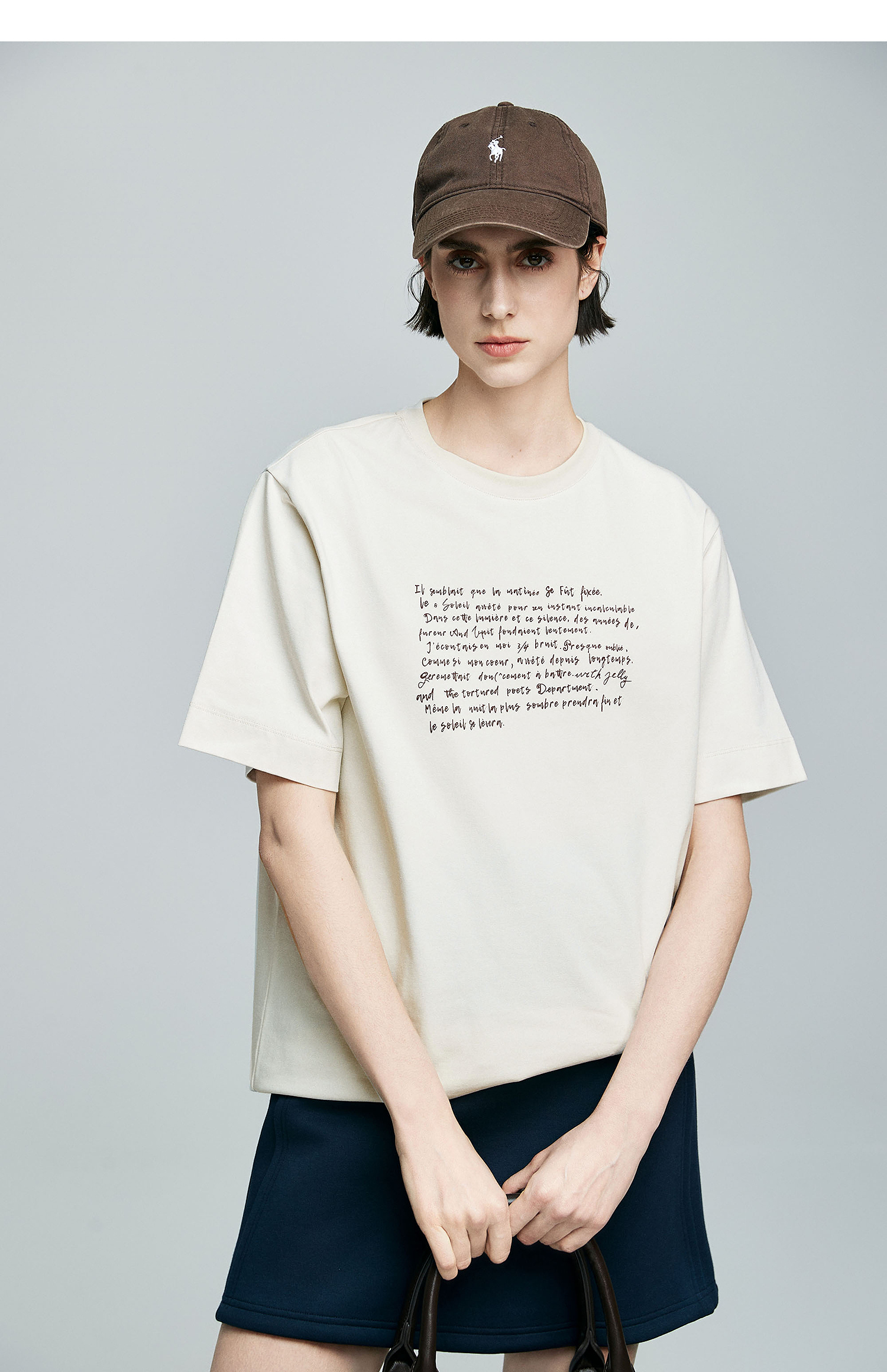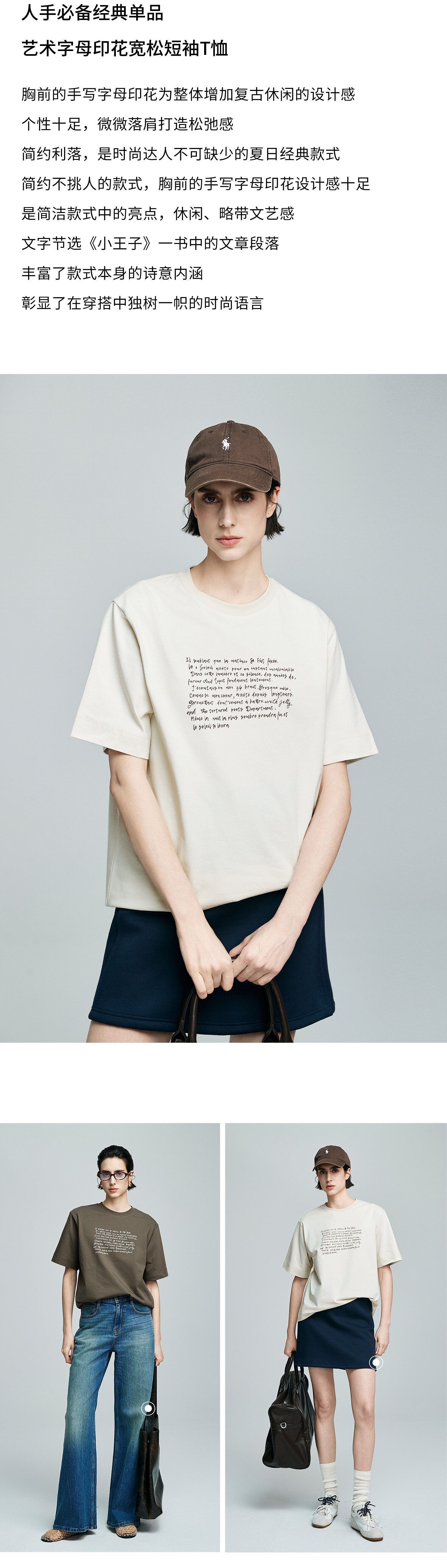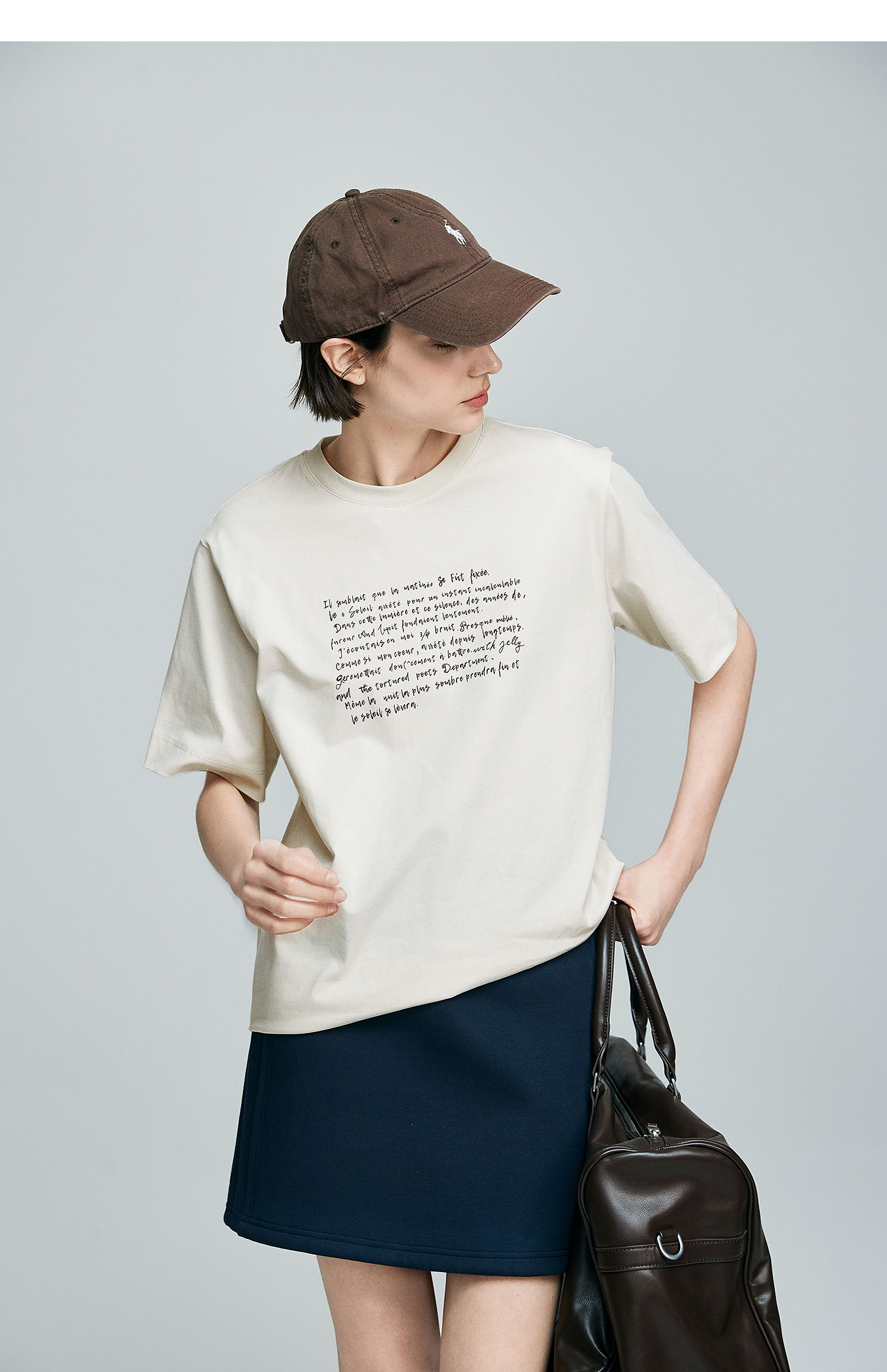 棉仓362601006-初棉艺术字母印花宽松短袖T恤
