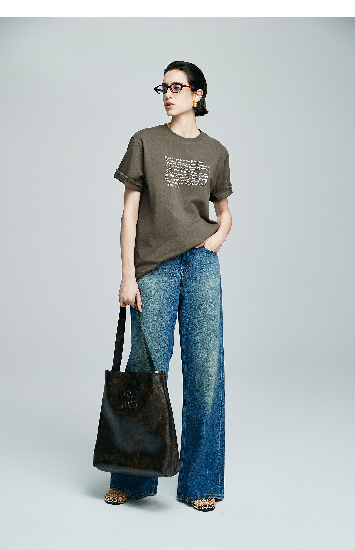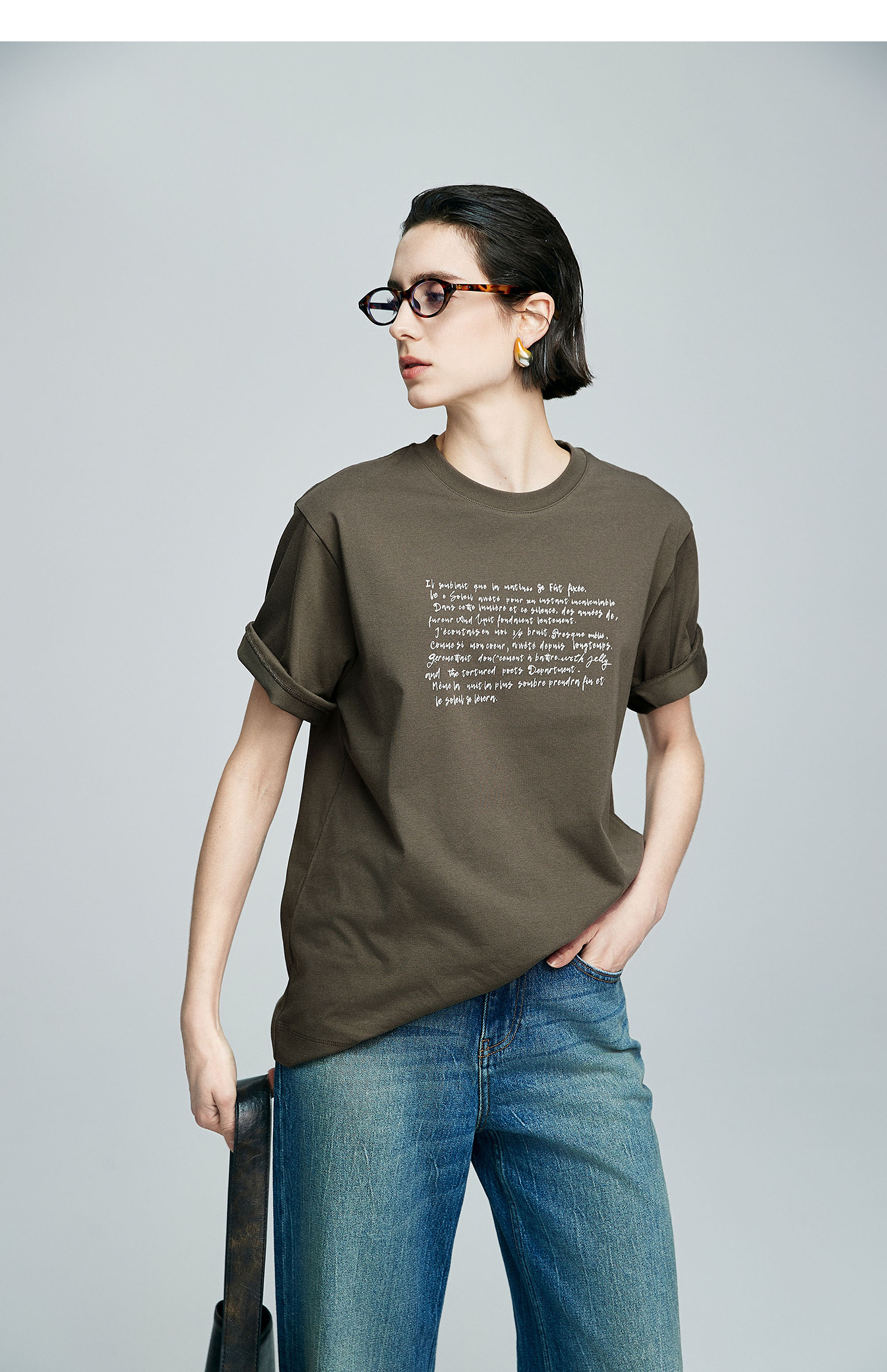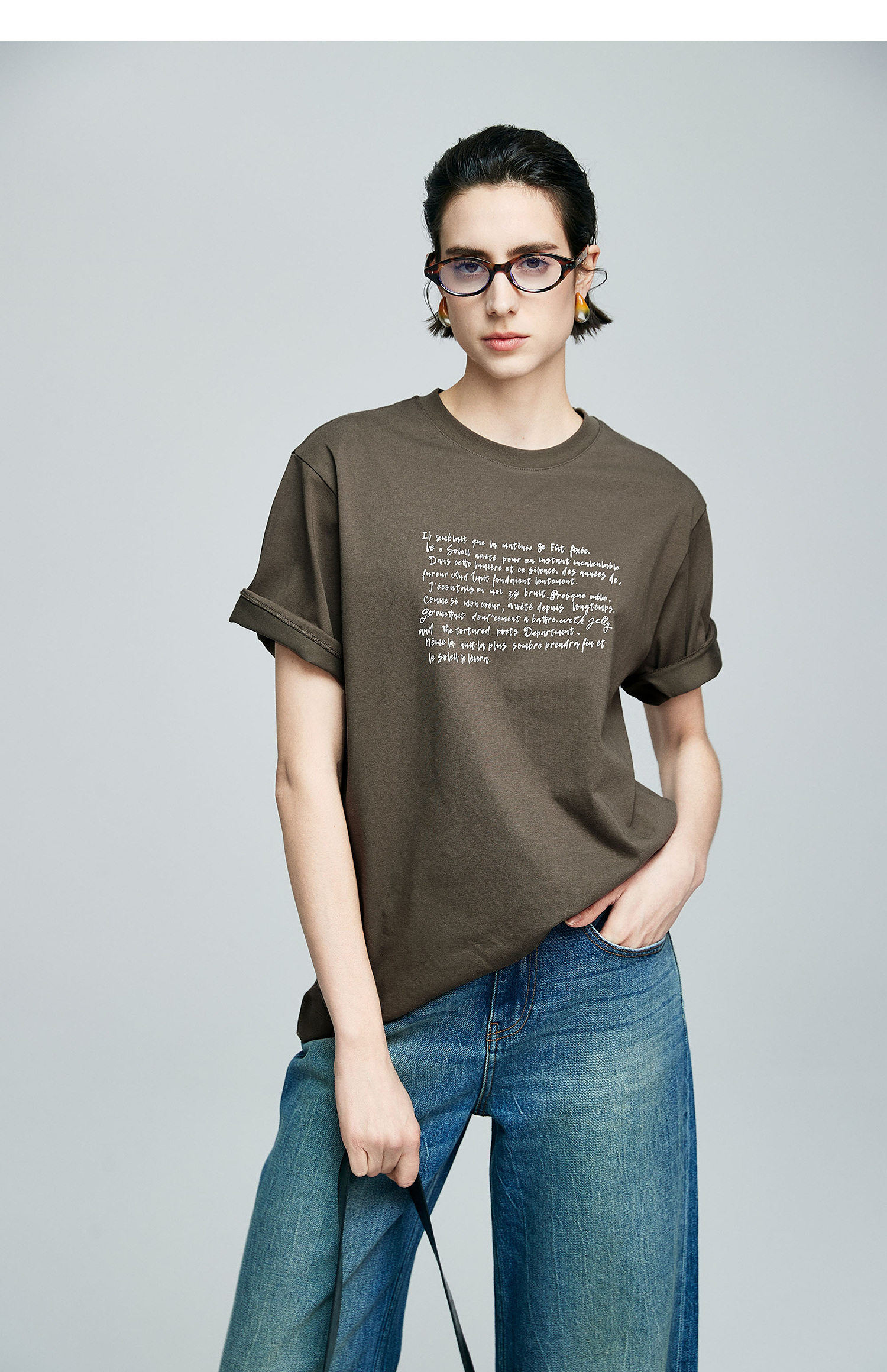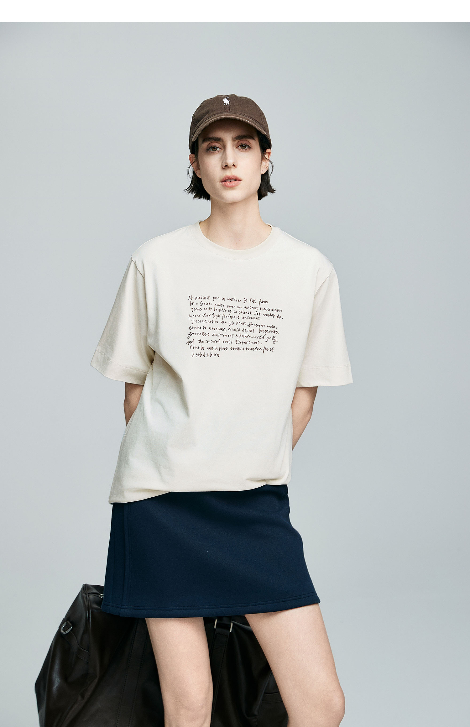 棉仓362601006-初棉艺术字母印花宽松短袖T恤