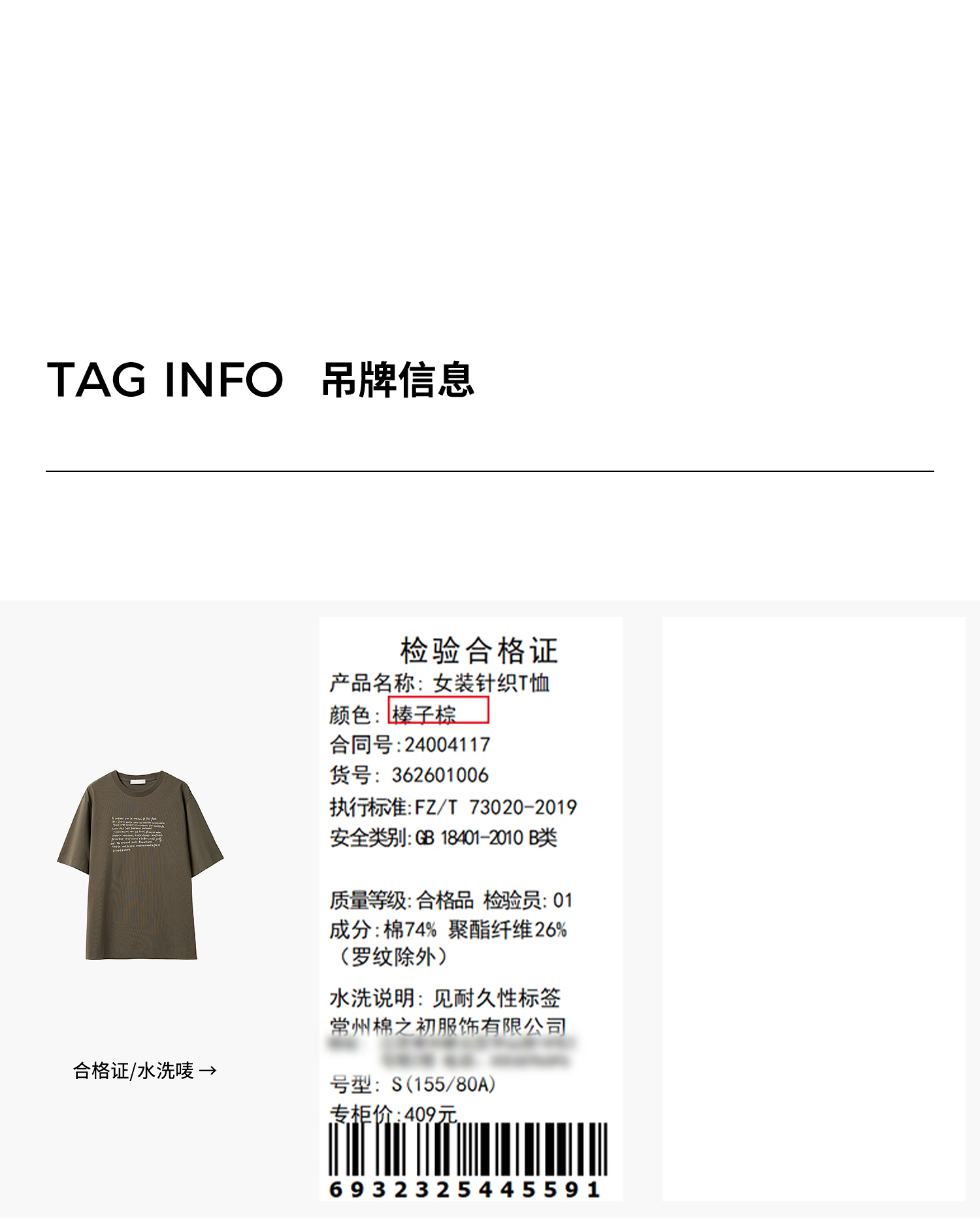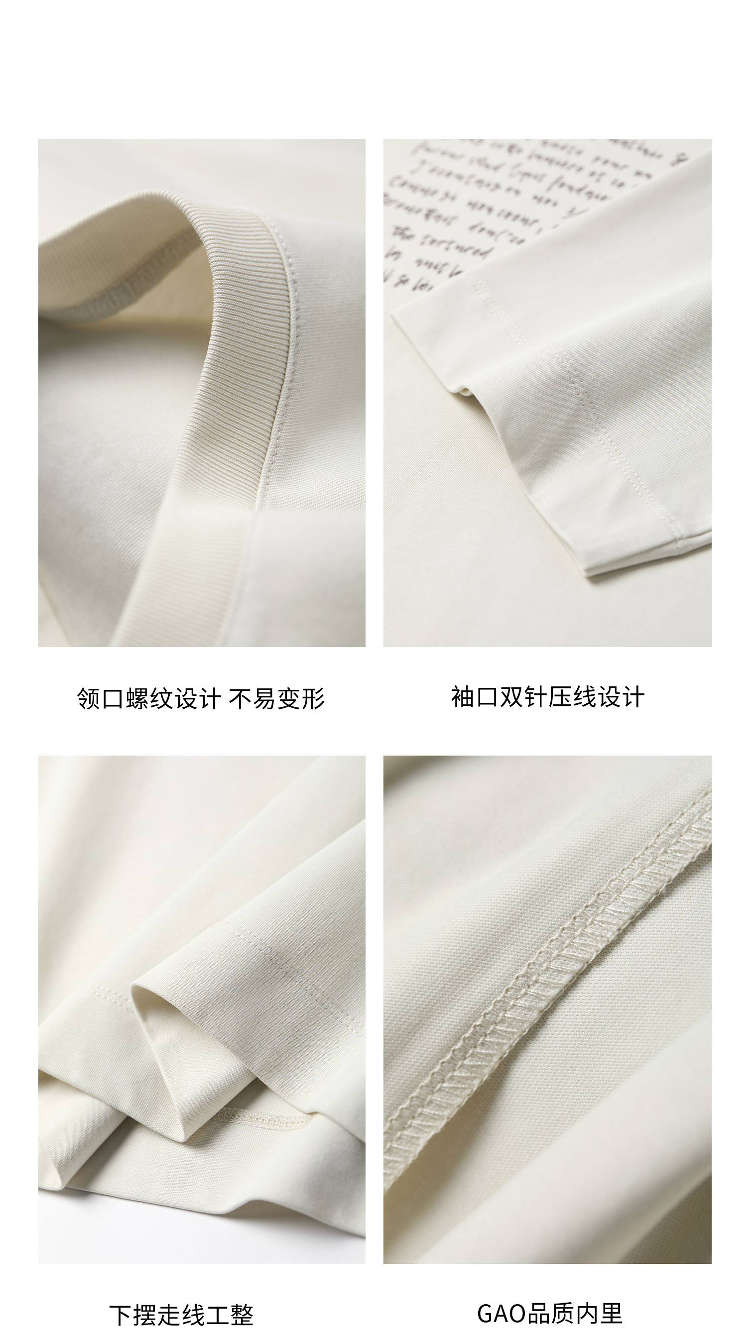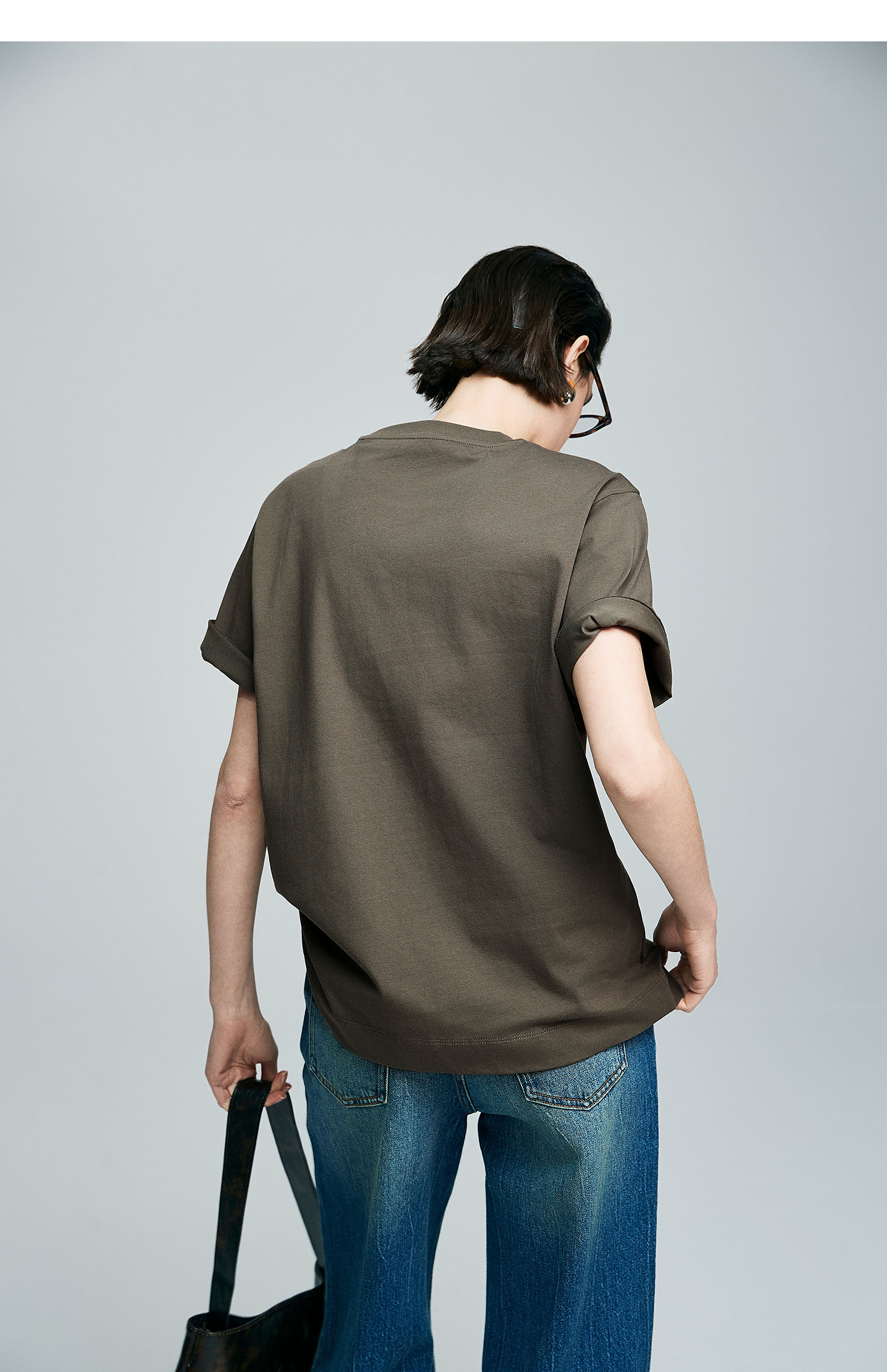 棉仓363801034-光盾遮热SORONA卷边撞色袖口微宽松圆领短袖T恤