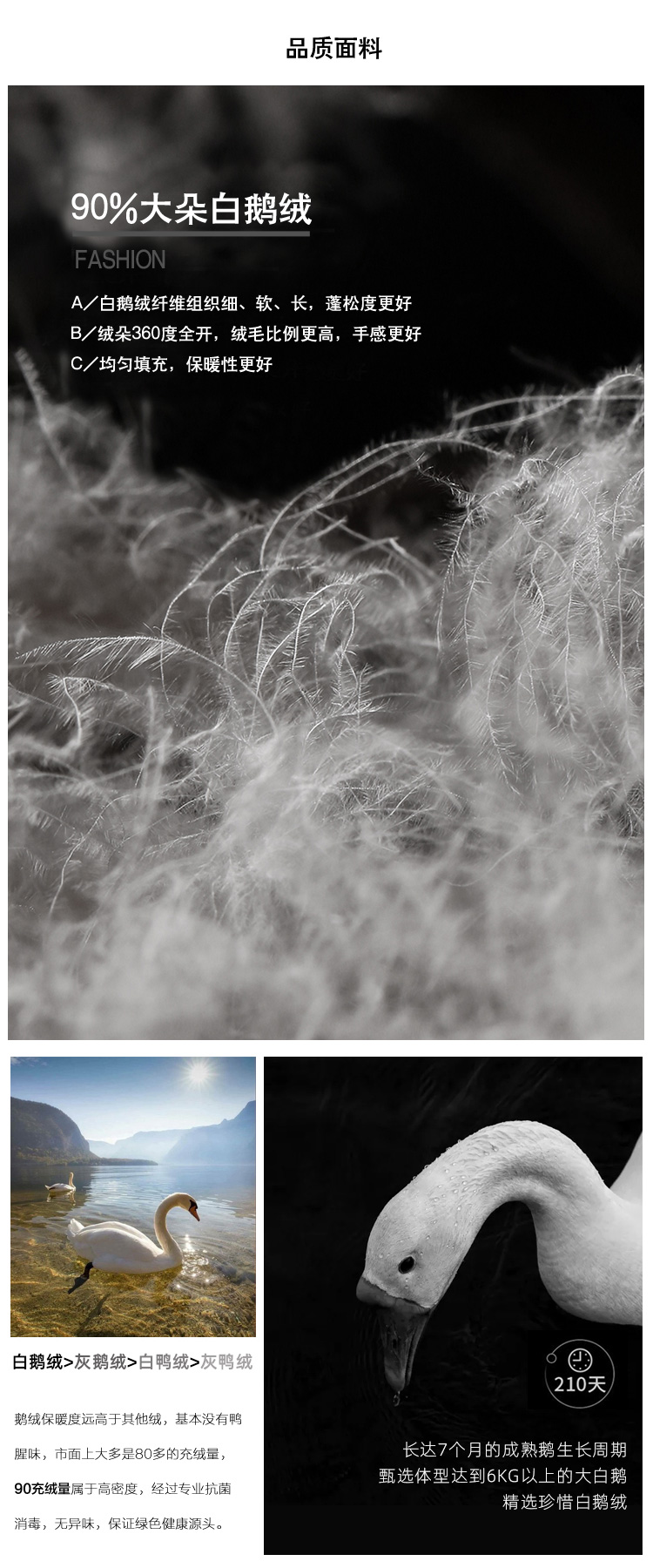 💎 更优保暖度:白鹅绒纤维更细、软、长,蓬松度优于鸭绒,保暖性更强。