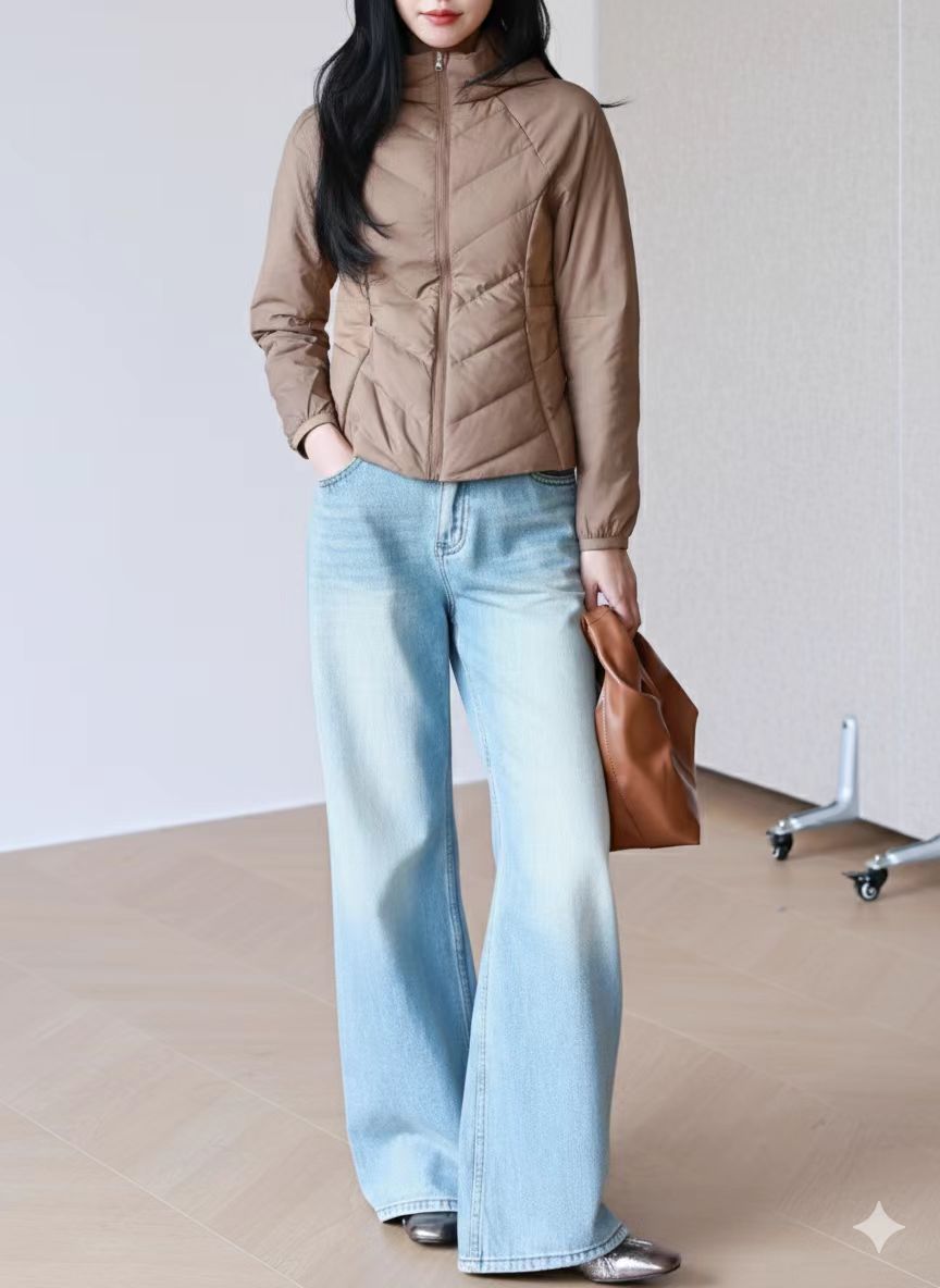 这款羽绒服采用正肩收腰的利落版型,搭配短款设计,能很好地修饰身形,显高显瘦。无论是内搭修身毛衣还是作为外套叠穿,都能保持线条的流畅与干练,彻底告别臃肿感!