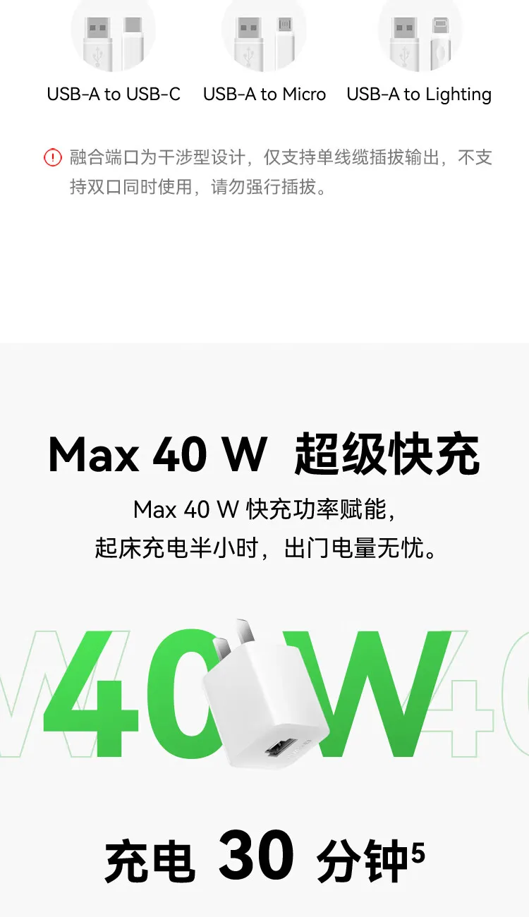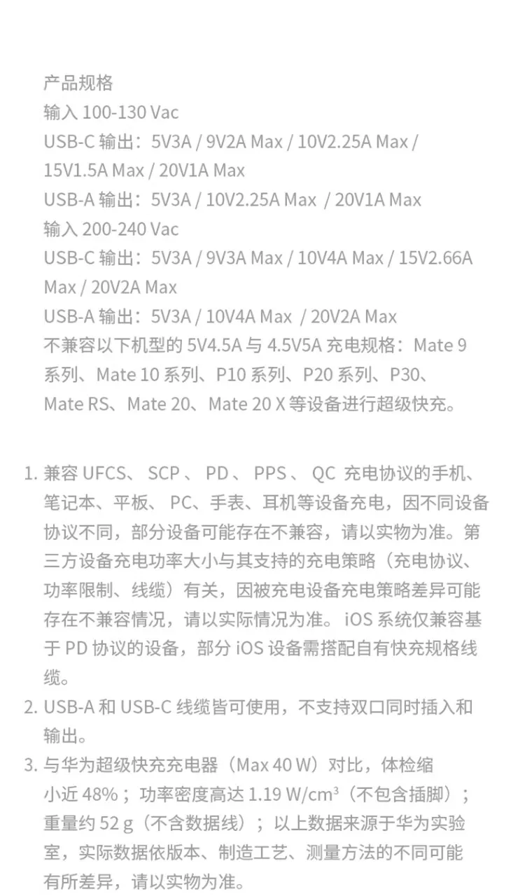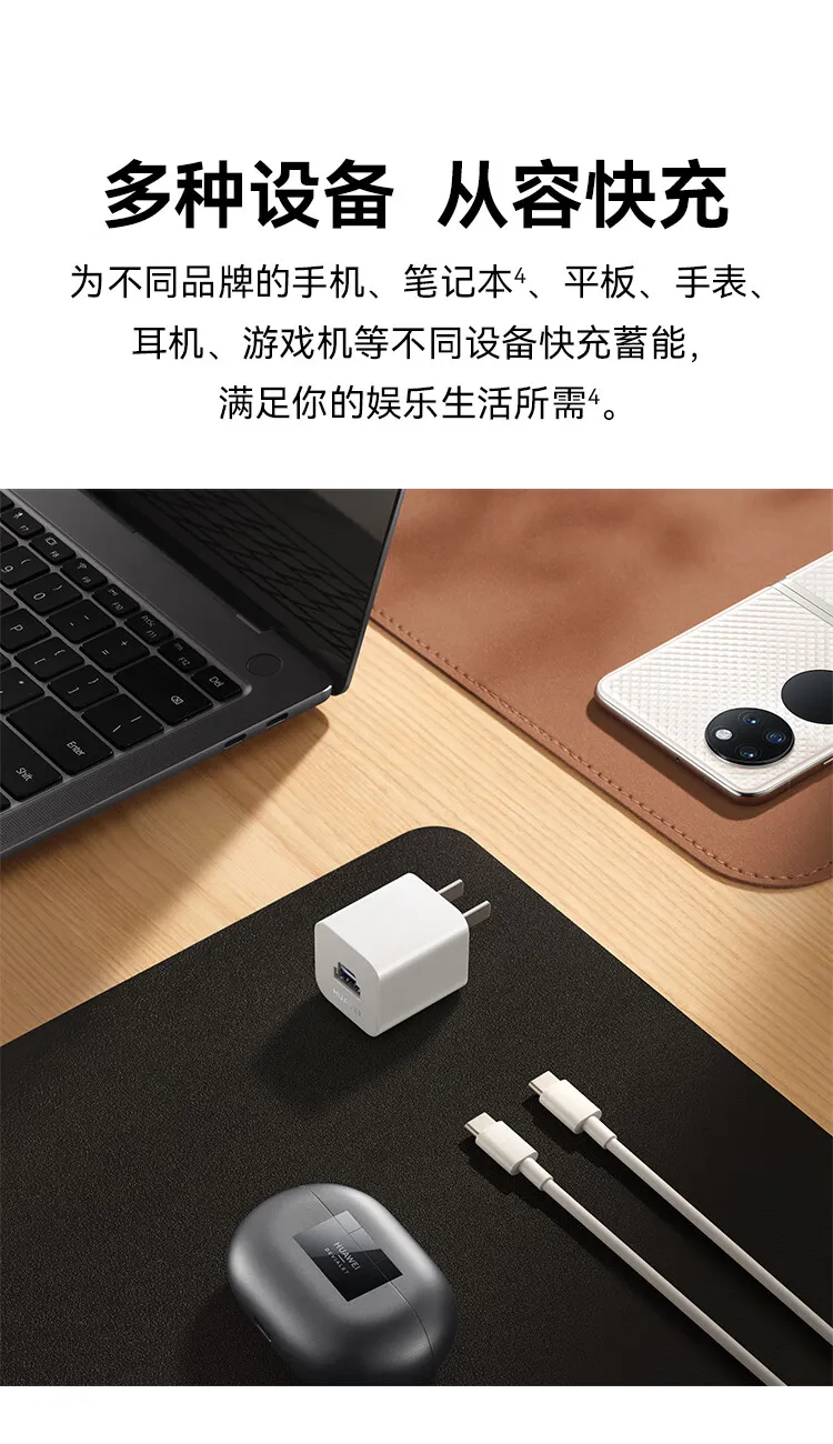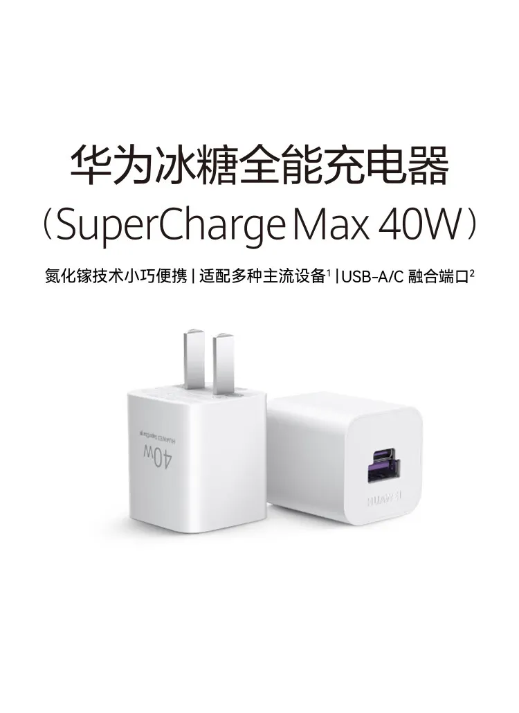 【积分兑换】华为 原装40W 冰糖全能充电白色 30分钟充满74% USB-A/C融合端口 多设备兼容