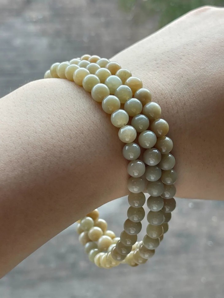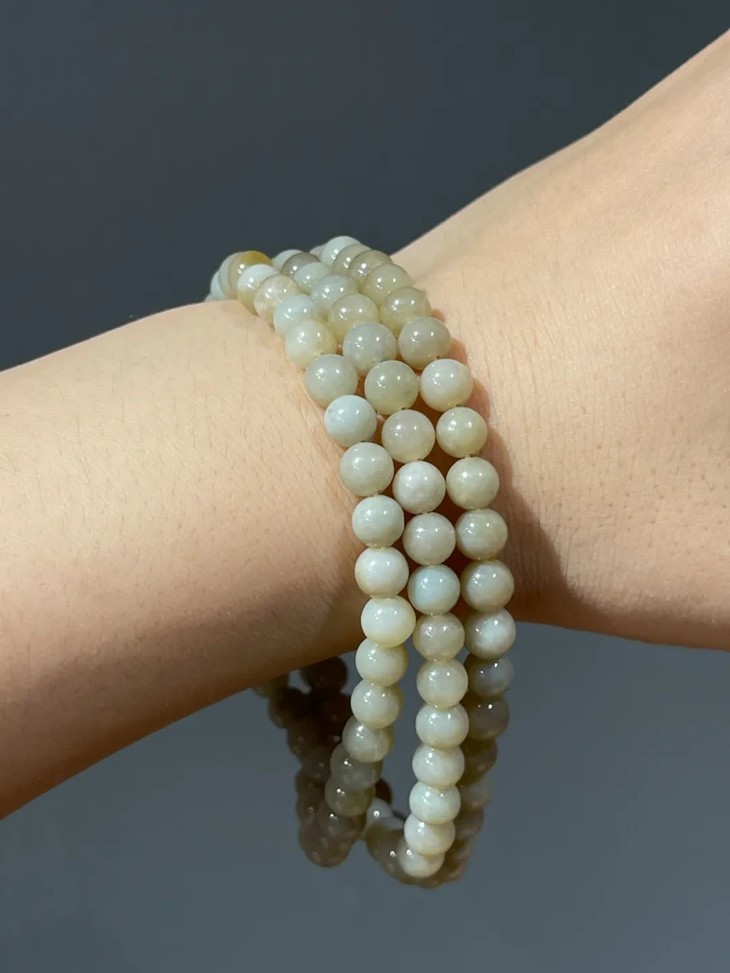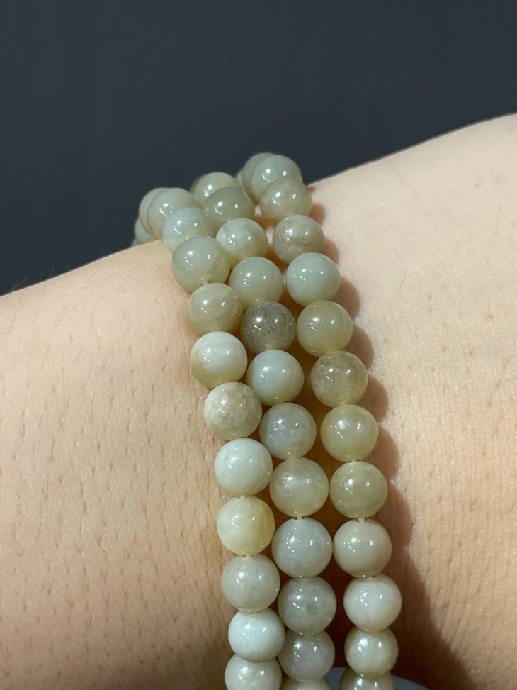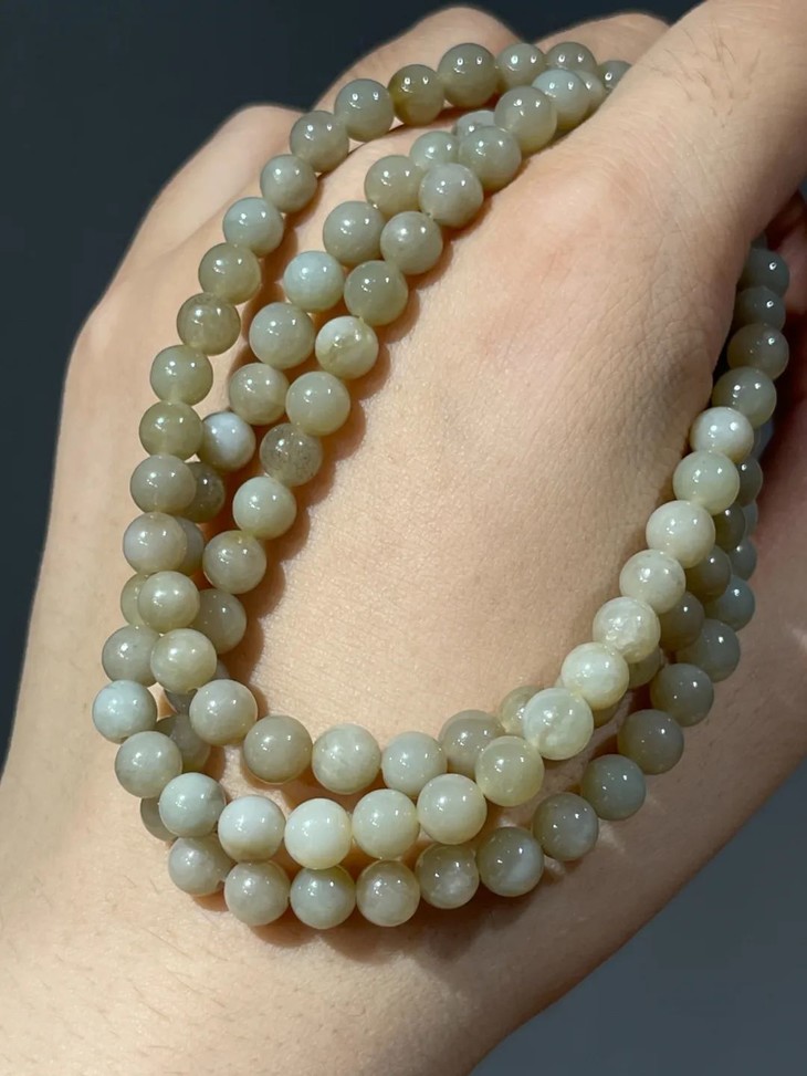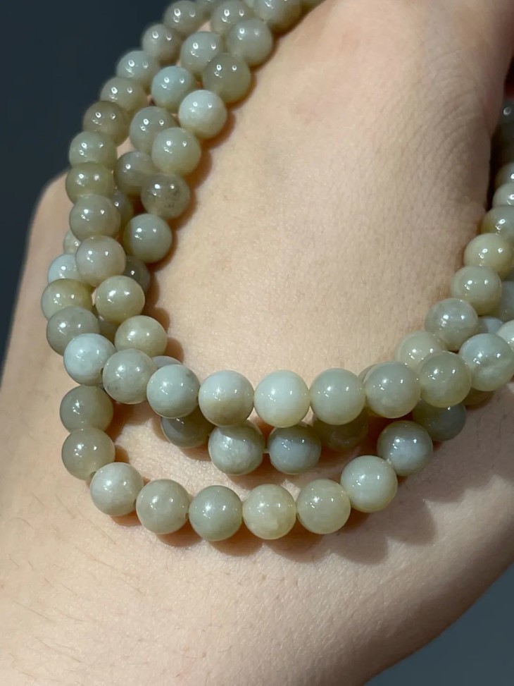 尺寸:糖料白玉圆珠共108粒,每粒直径:0.55厘米,长度:65厘米,重量:35.4克。