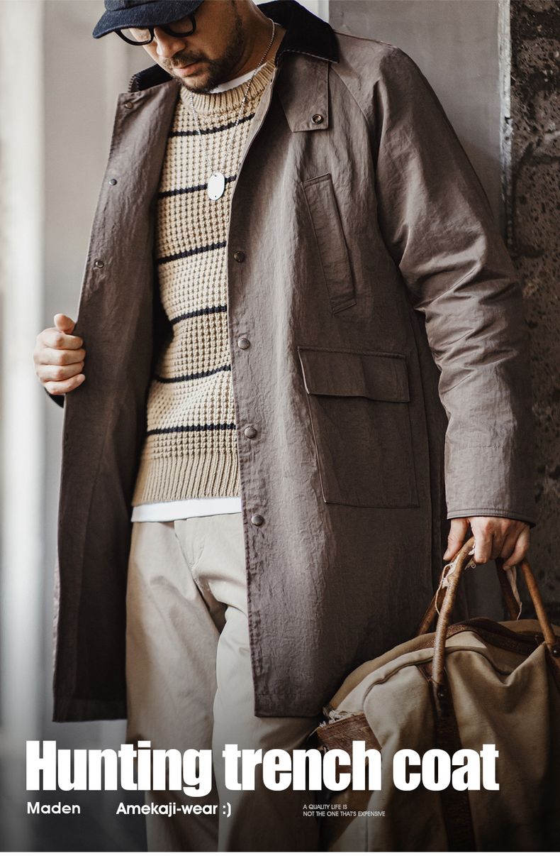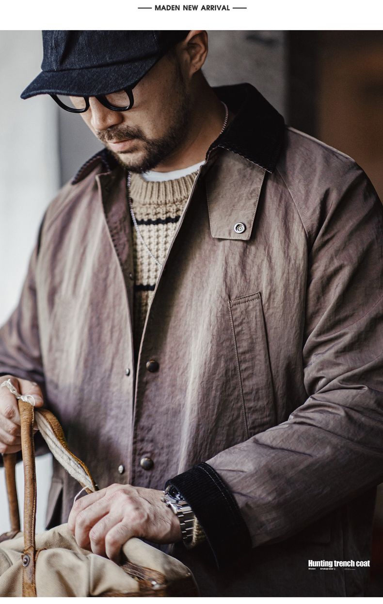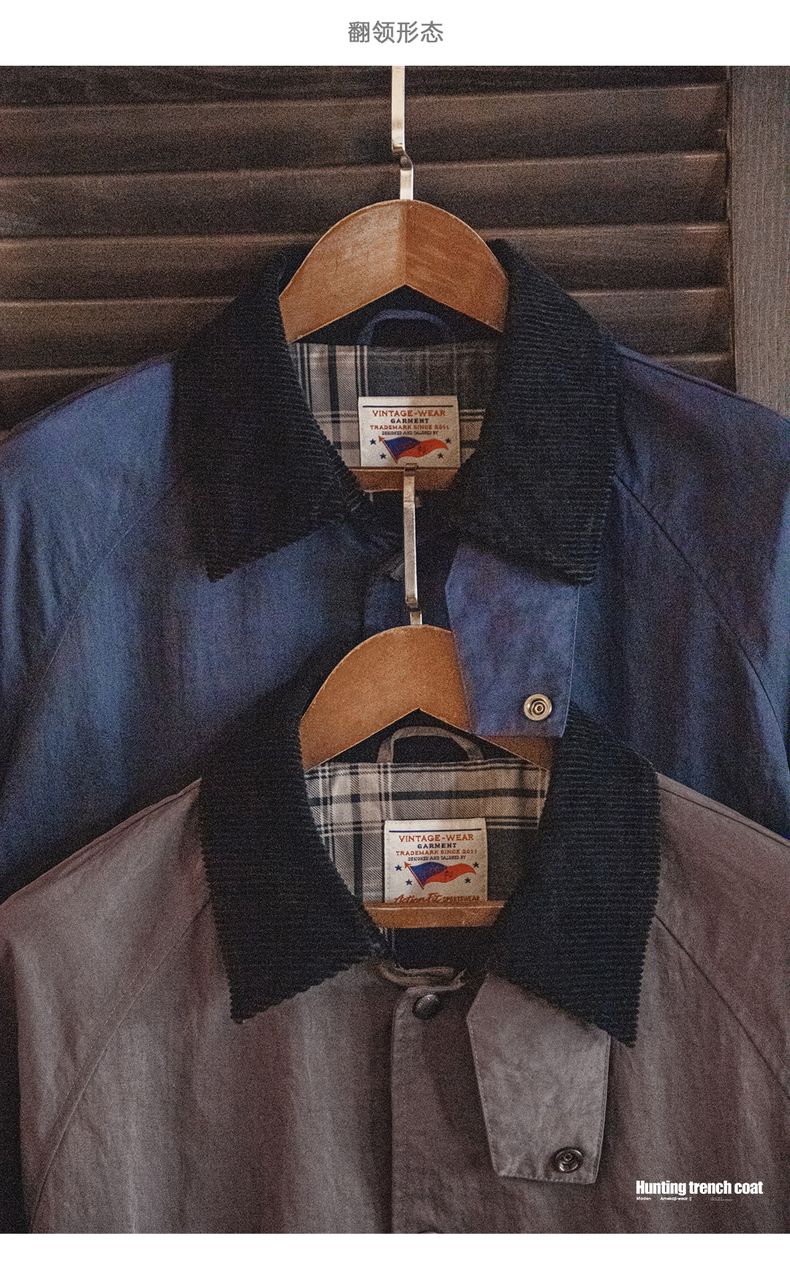工装优选美式复古oversize猎装风衣宽松翻领单排扣中长款外套男秋