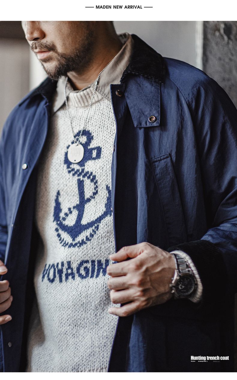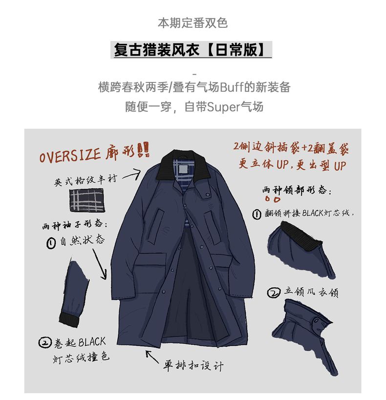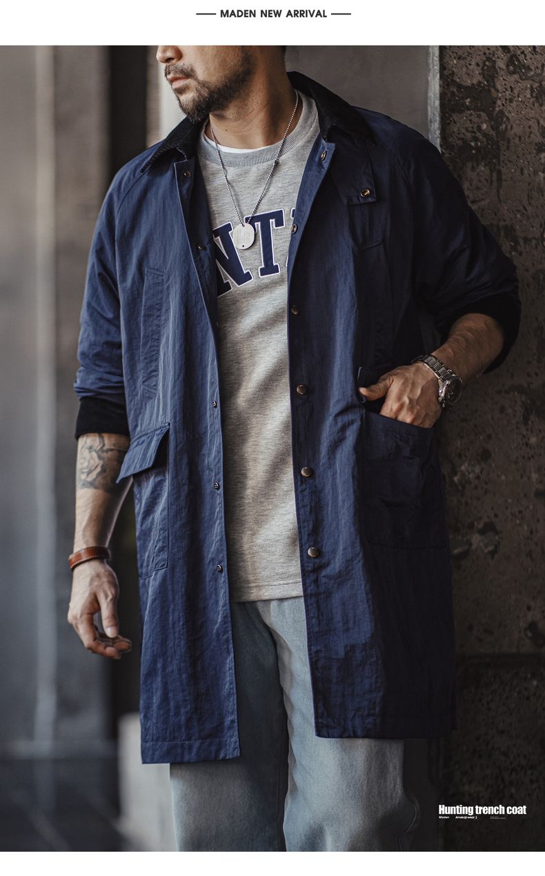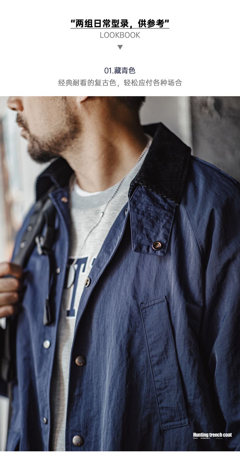 工装优选美式复古oversize猎装风衣宽松翻领单排扣中长款外套男秋
