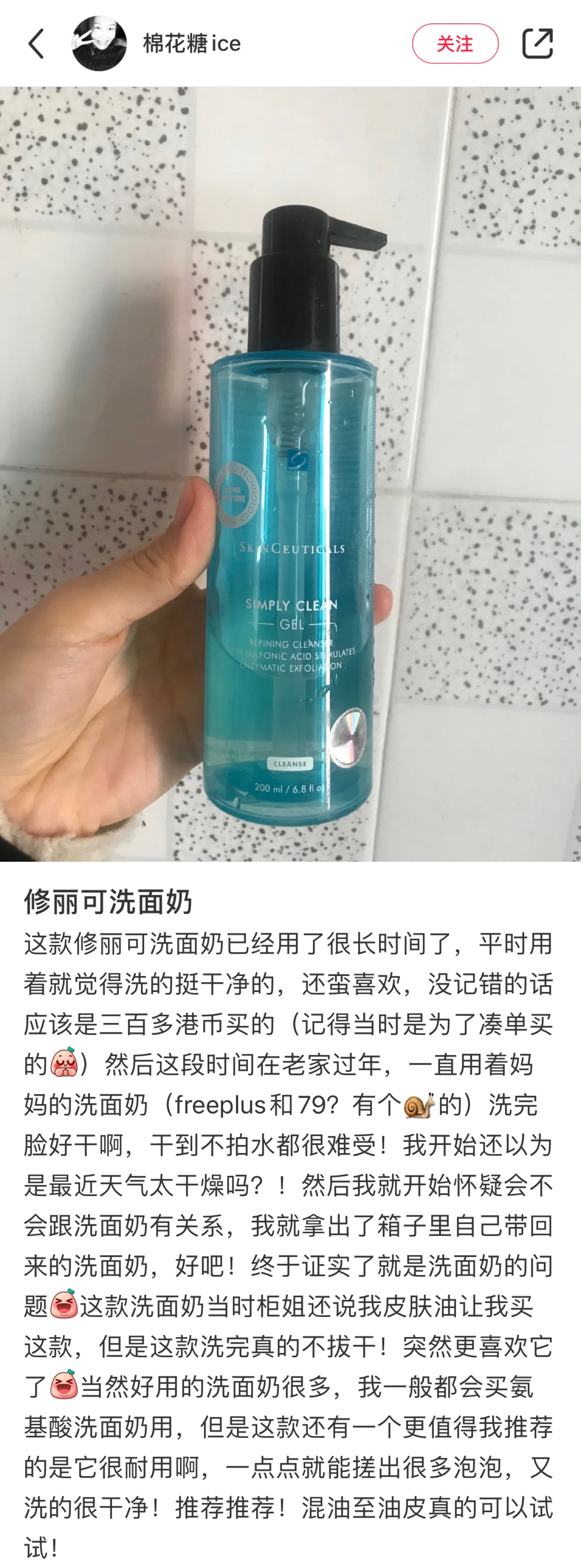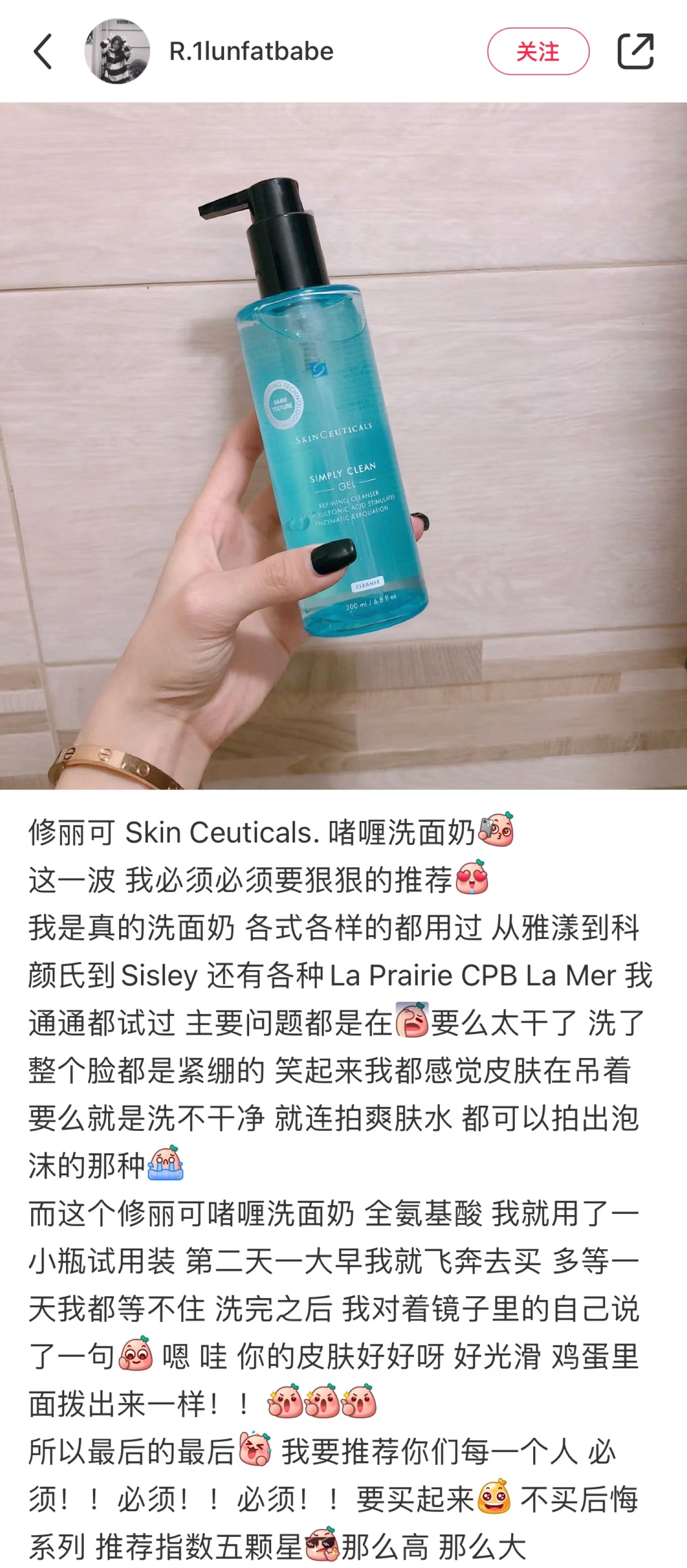 来上一款修丽可的新洁面,氨基酸,啫喱状,油皮痘肌实在不知道用什么洁面,选它就不会有错。