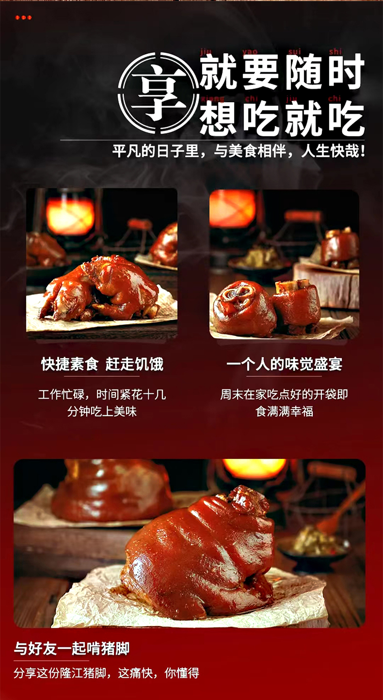 制作工艺是惠来隆江猪脚的核心所在,从猪脚的挑选、焯水、炖煮到调味,每一个环节都需严格掌控火候和时间。焯水后的猪脚被放入特制的卤水中进行长时间炖煮,香料和调料充分渗透到猪脚内部,使其肉质更加酥软。同时,火候掌握也至关重要,既要保证猪脚熟透,又要避免其过于软烂失去口感,也正是这样的选材、配料和制作工艺,造就了惠来隆江猪脚那红润油亮、Q弹嫩滑、肥而不腻的独特风味。