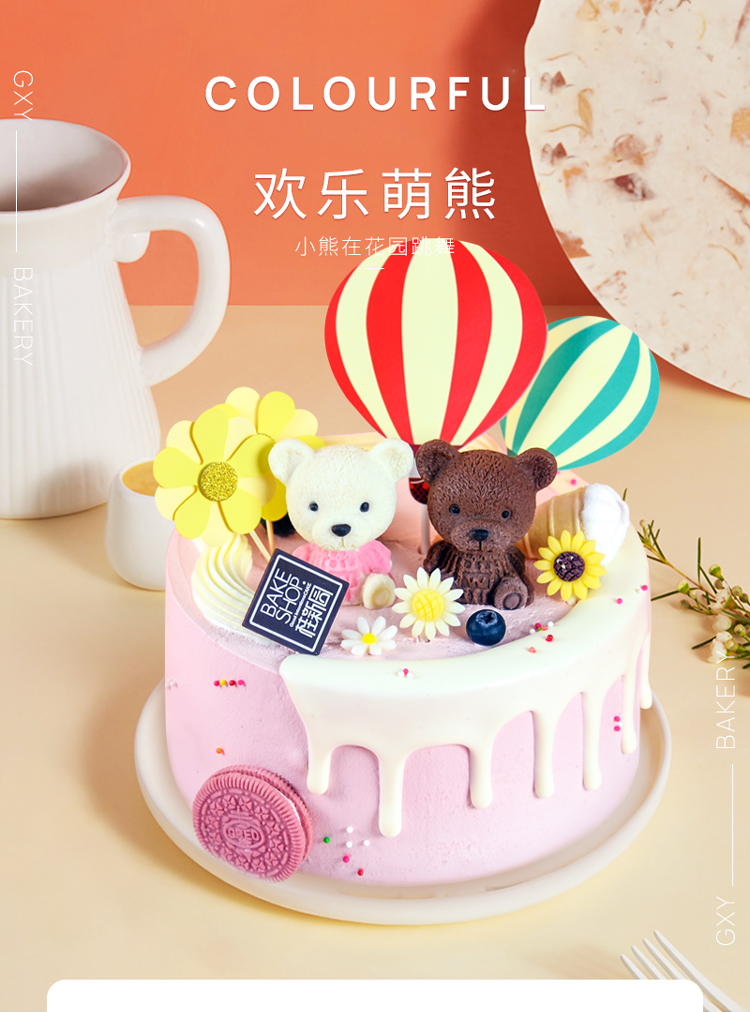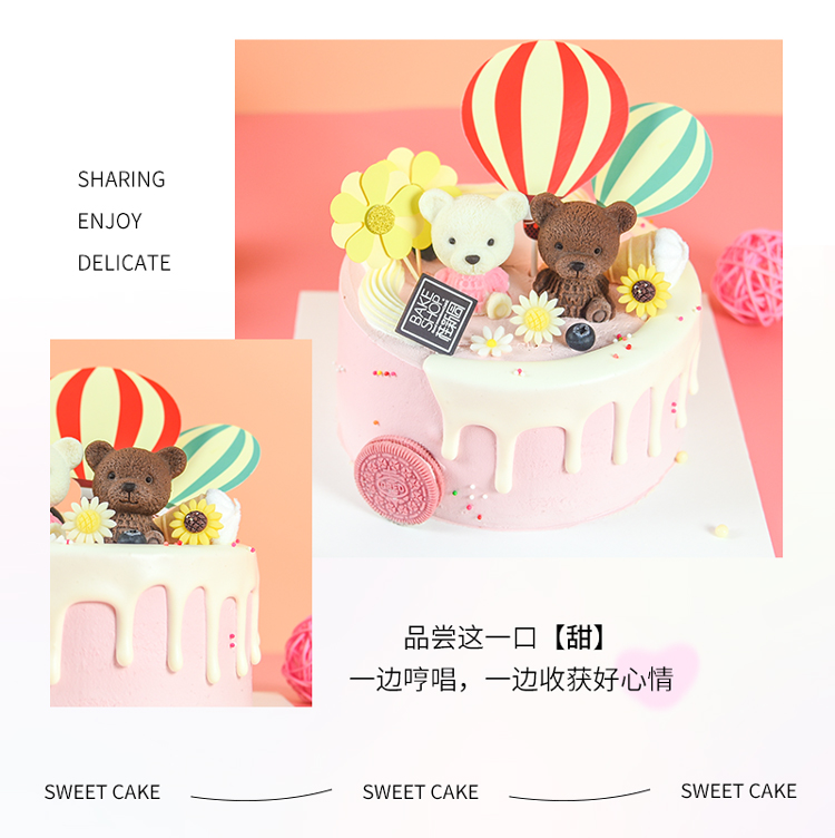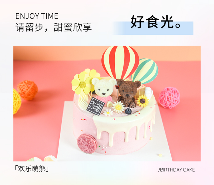 【欢乐萌熊】 新款趣味生日蛋糕—纯乳脂与牛奶奶油混合,巧克力味夹层口味升级,细腻香甜