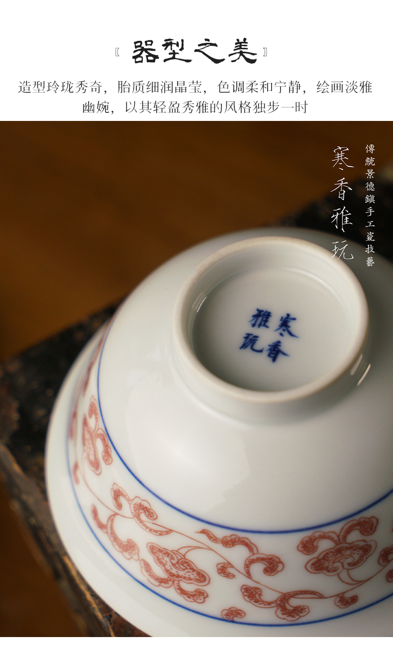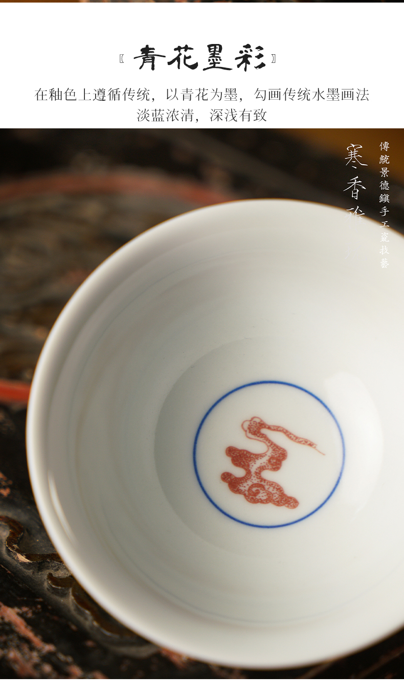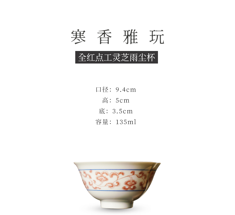 寒香雅玩青花全红点工灵芝雨尘杯(缺货)