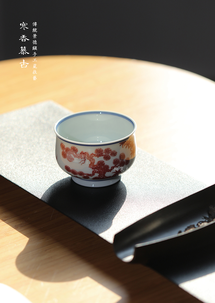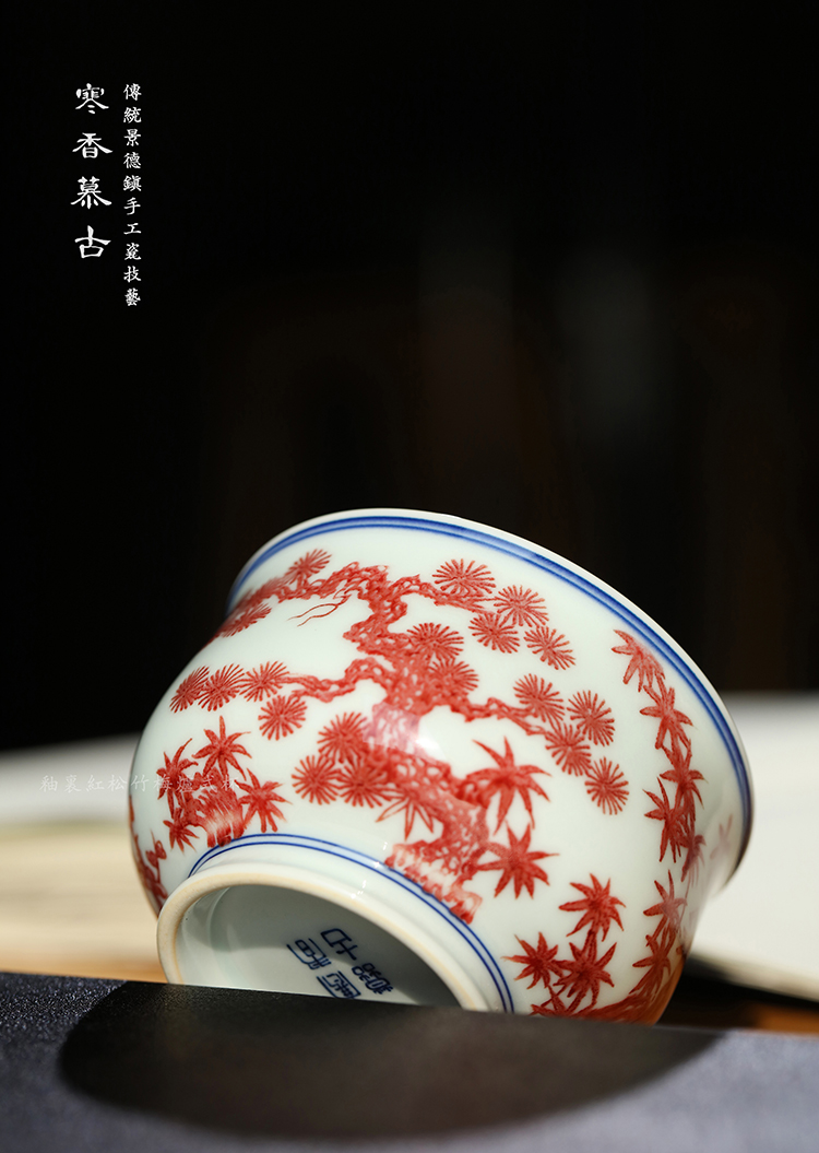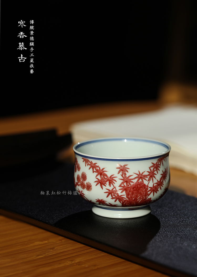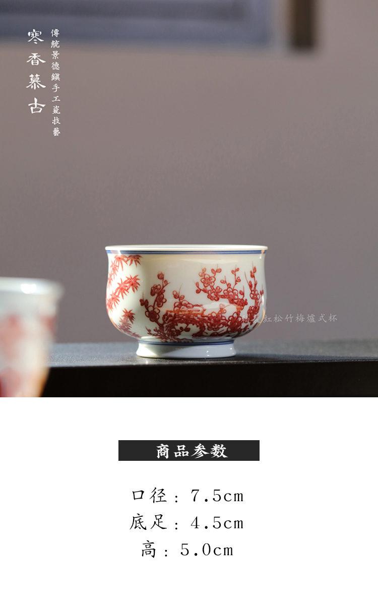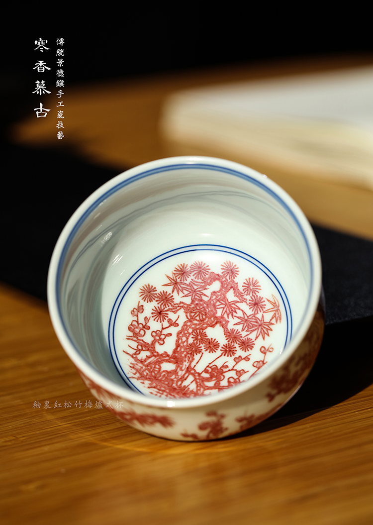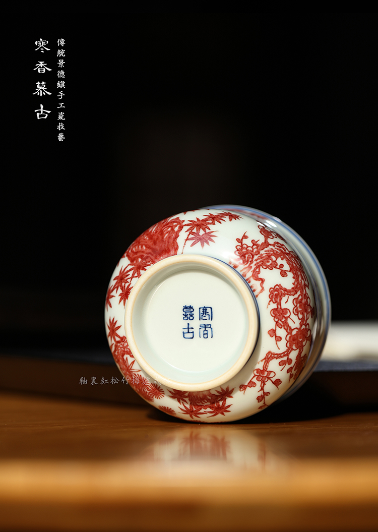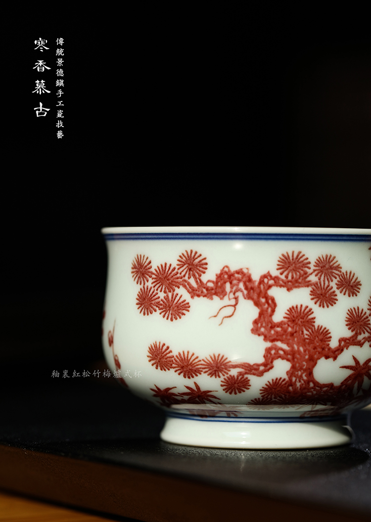 寒香慕古釉里红松竹梅炉式杯