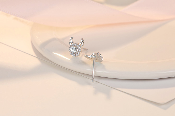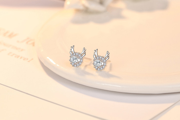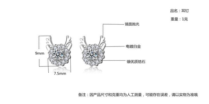 S925纯银麋鹿耳钉雪花女圣诞鹿角耳环小众冬季耳饰圣诞节礼物
