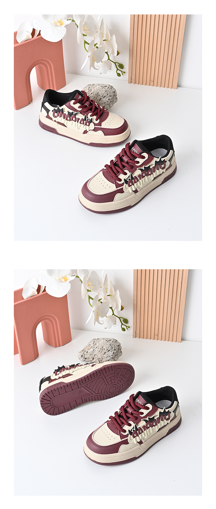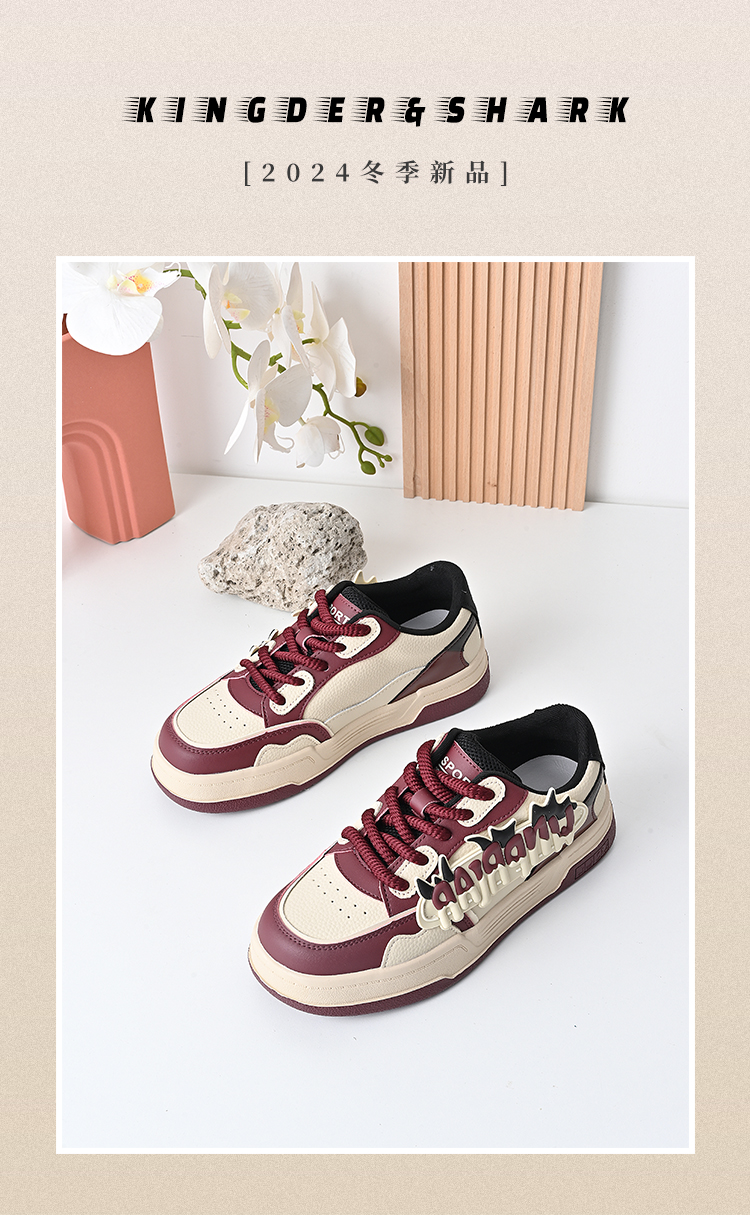 经典鲨2024年冬季新款时尚拼色系带平底通勤休闲鞋跑步鞋女KW160-D37281