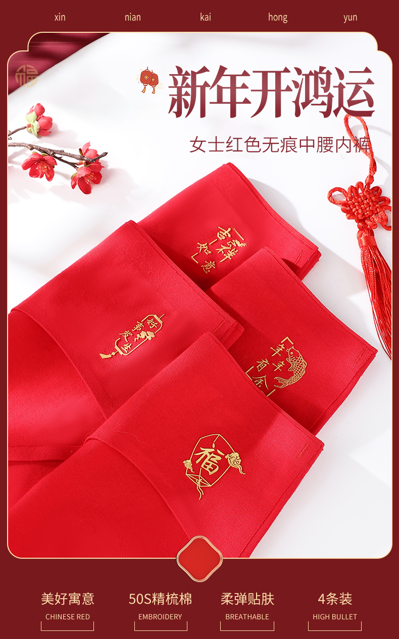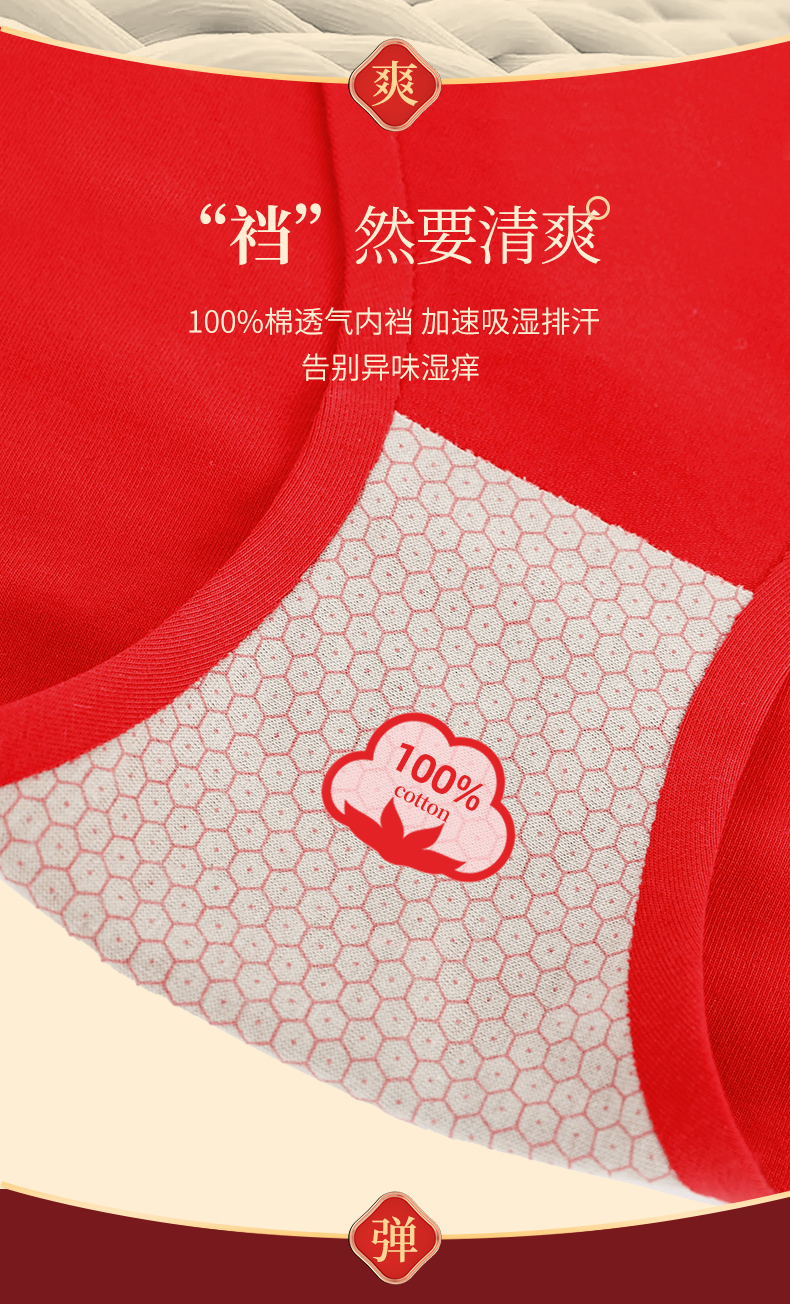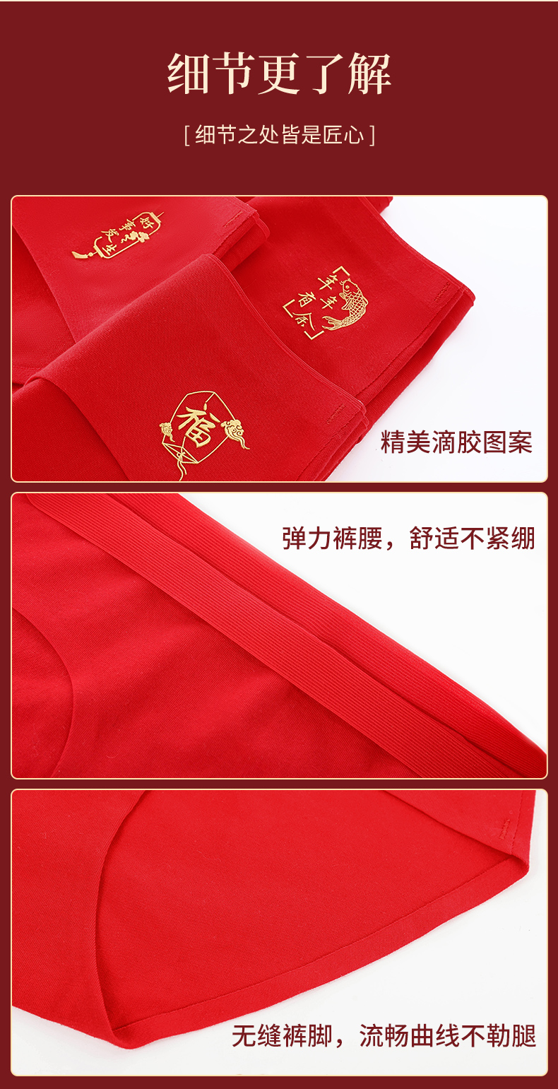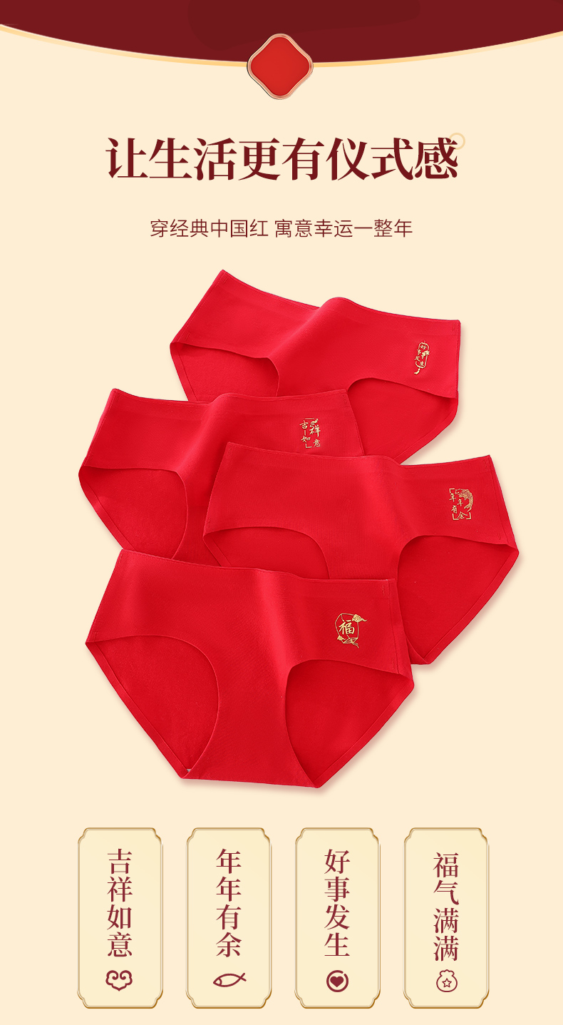 雅黛丽内裤女纯棉本命年女属虎红色三角裤无痕全棉结婚中腰短裤头
