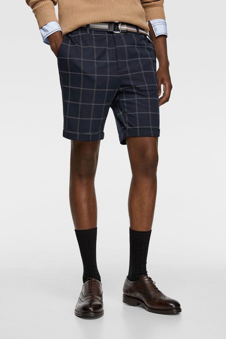 苏格兰格纹亚麻工装短裤