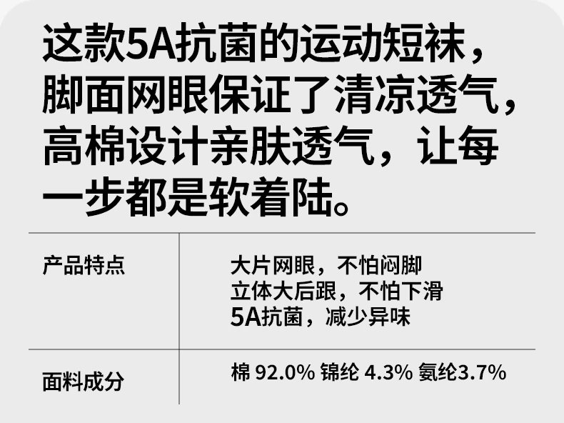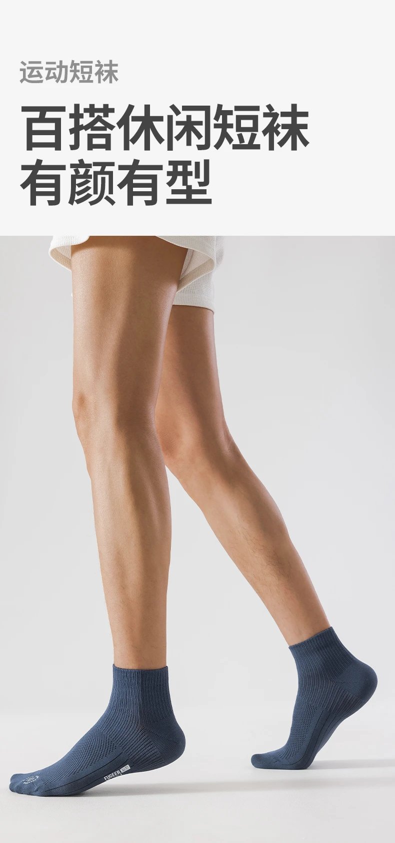 副歌男款高棉抑菌防臭网眼透气短袜真正持久防异味不闷汗不臭脚每组5双装