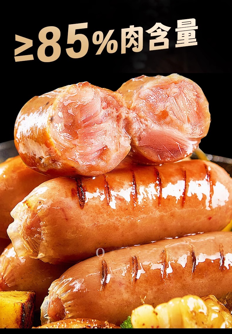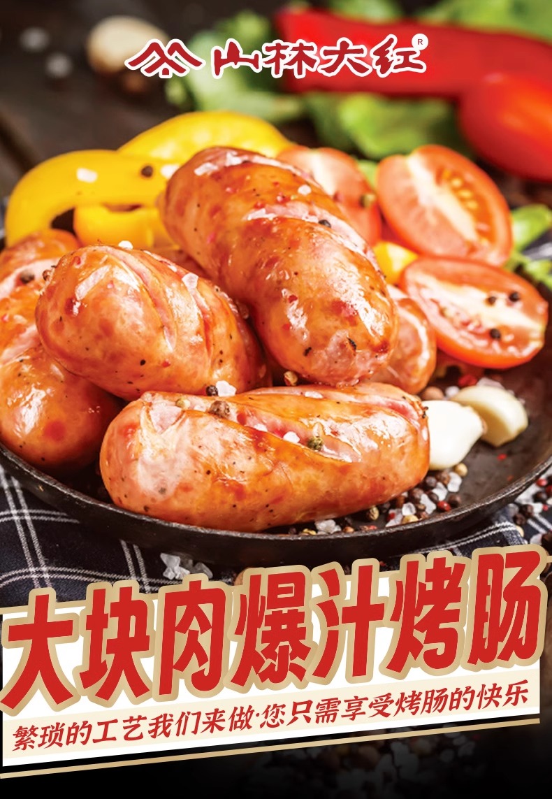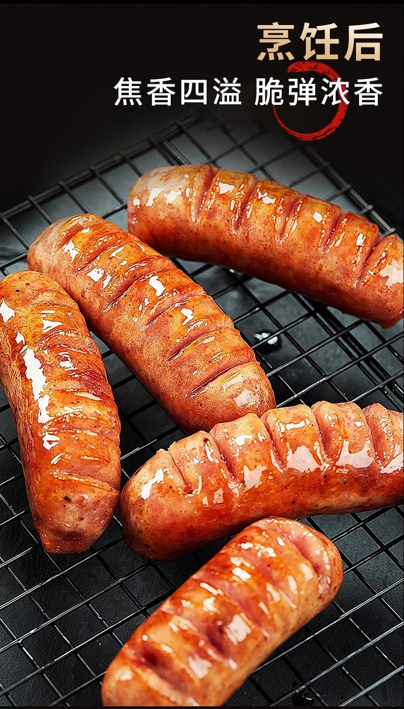 山林大红烤肠肉肠脆皮火山石香肠黑椒风味热狗肠空气炸锅非淀粉肠