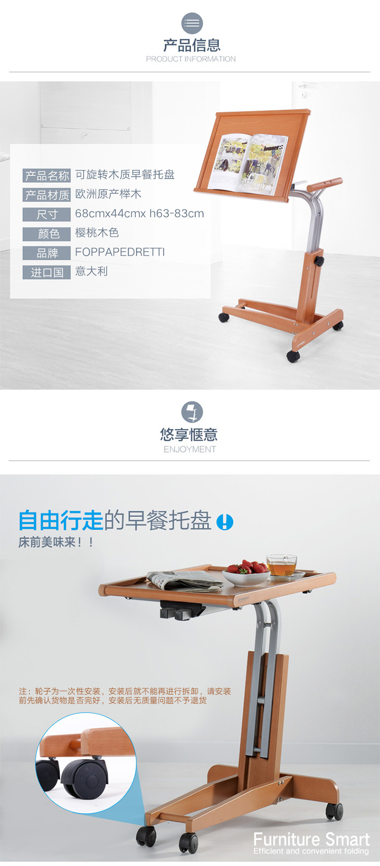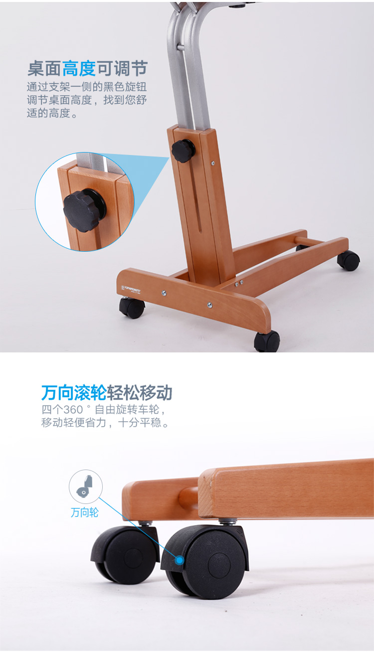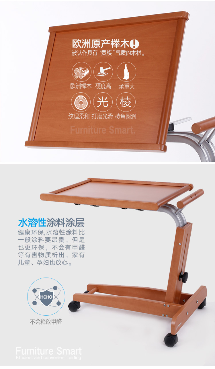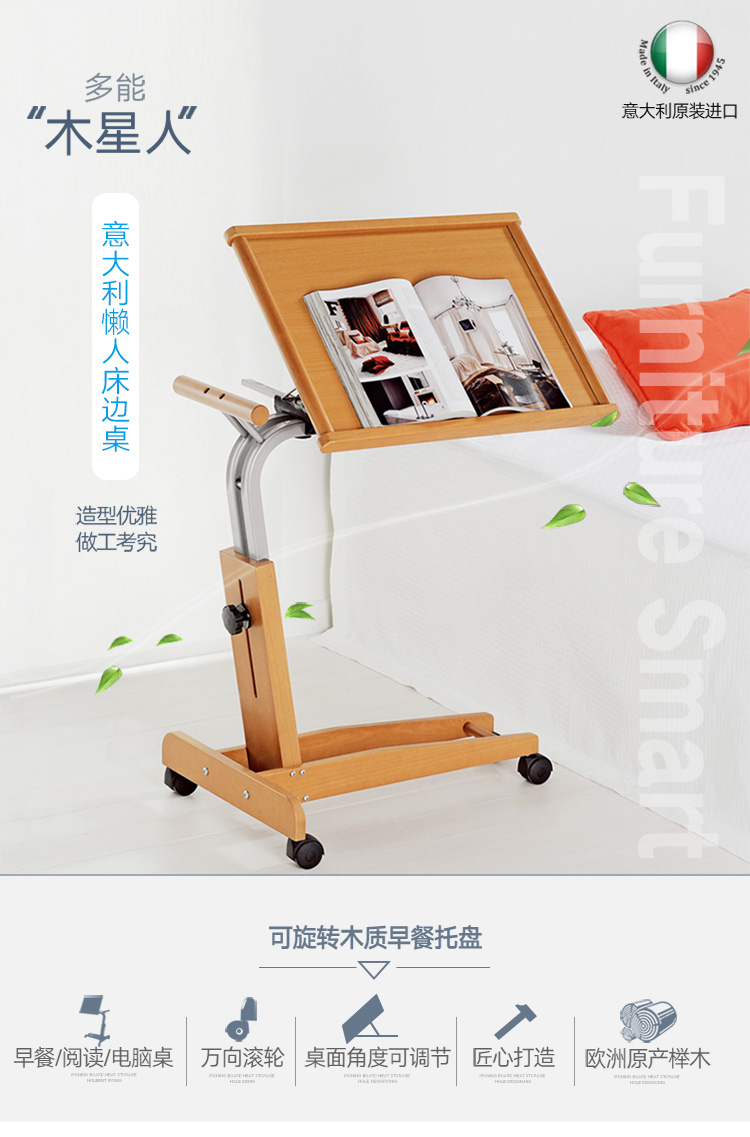 【6F】利快 实木床边桌意大利进口福帕FOPPA可移动懒人桌可旋转升降电脑桌