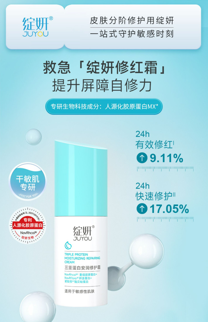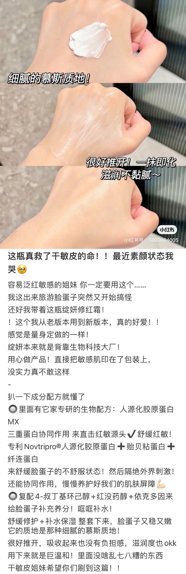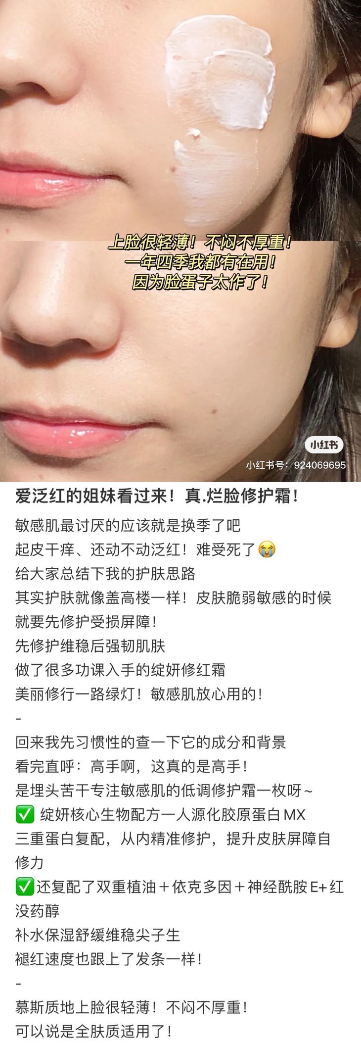 绽妍面霜又升级咯,三重蛋白安润修护霜,敏敏肌专用!