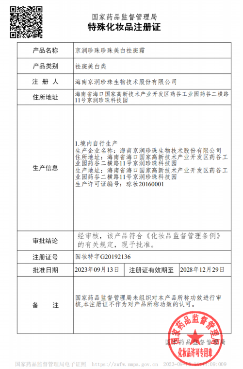 【99元3瓶】京润珍珠美白祛斑霜小红瓶30g*3瓶【祛斑美白特证更放心】