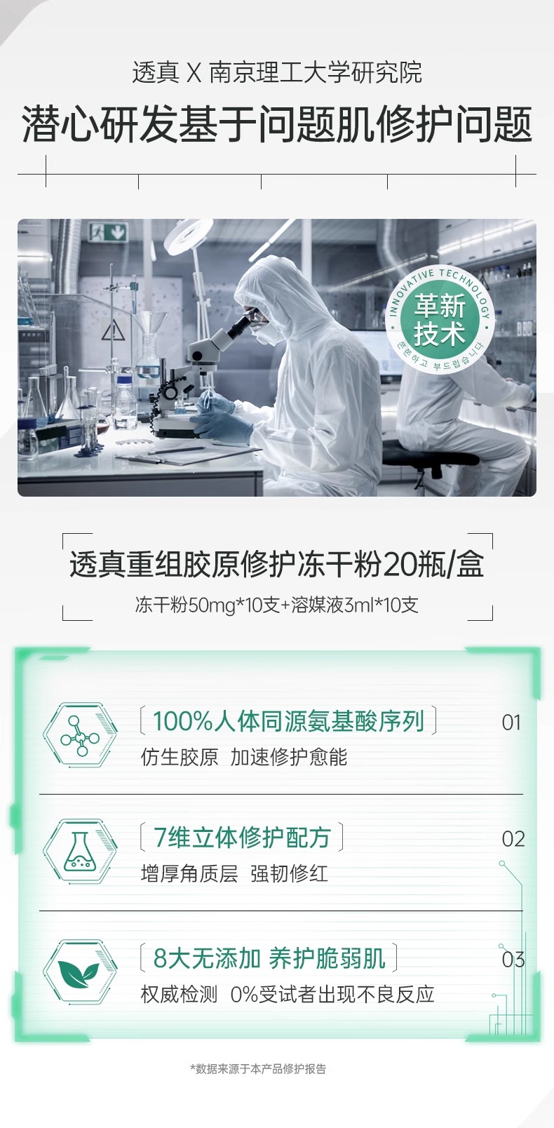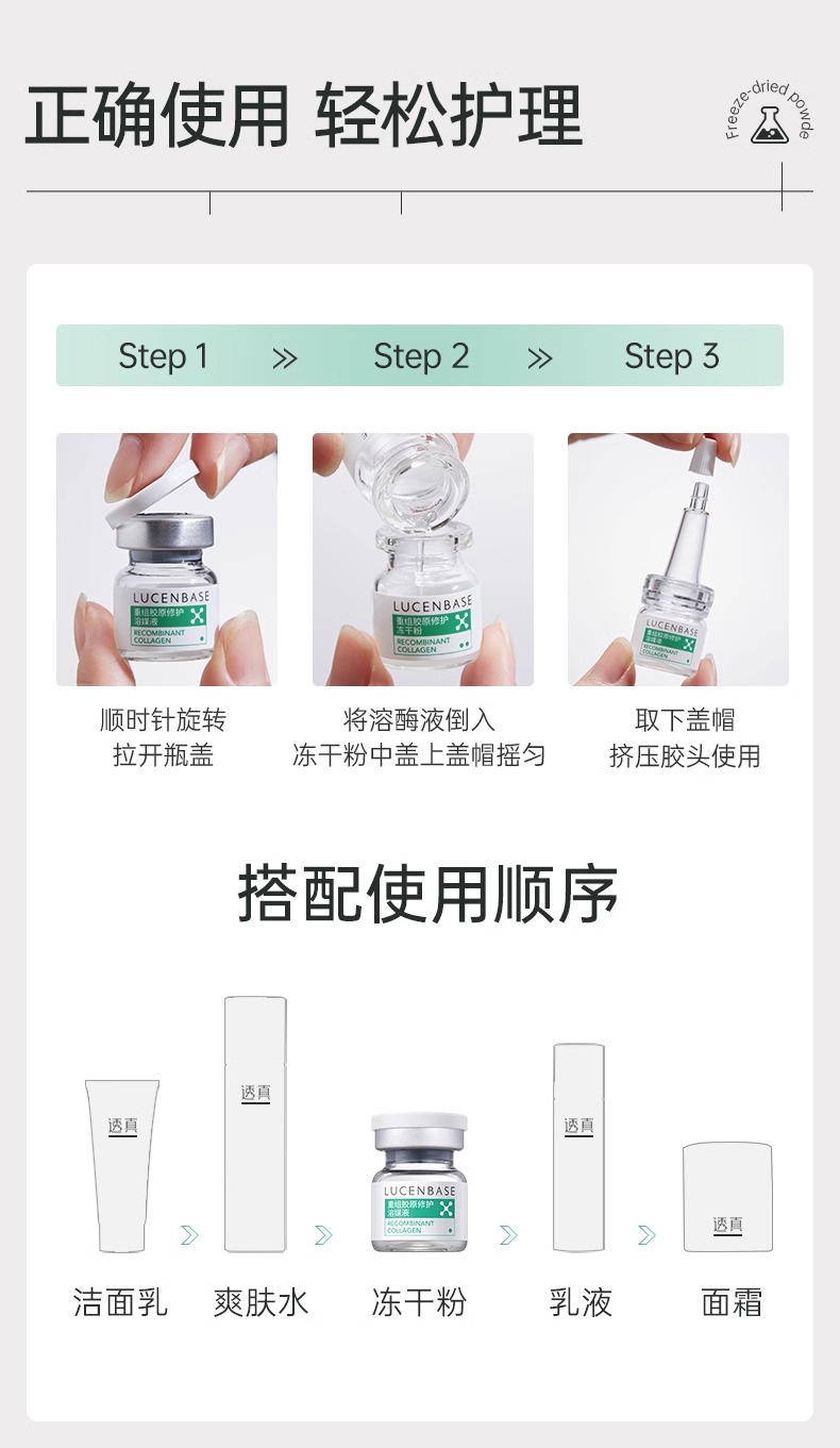【2h急效修护 强韧屏障】重组胶原修护冻干粉50mg*10+修护溶媒液3ml*10#透真重组胶原冻干粉紧致淡纹抗皱衰老冻干精华液修护精华液正品