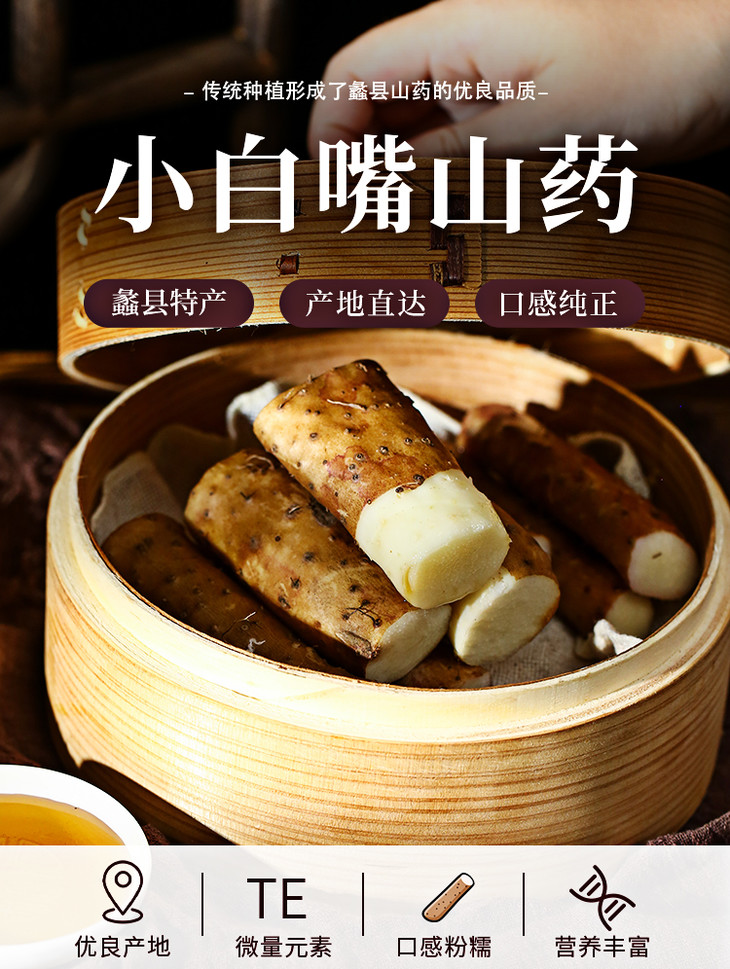 【河北 • 小白嘴山药】肉质细腻粉糯 入口即化 皮薄如纸易撕 食用方便 含有优质的黏液蛋白和维生素及矿物质 健康辅食美味 老少皆宜