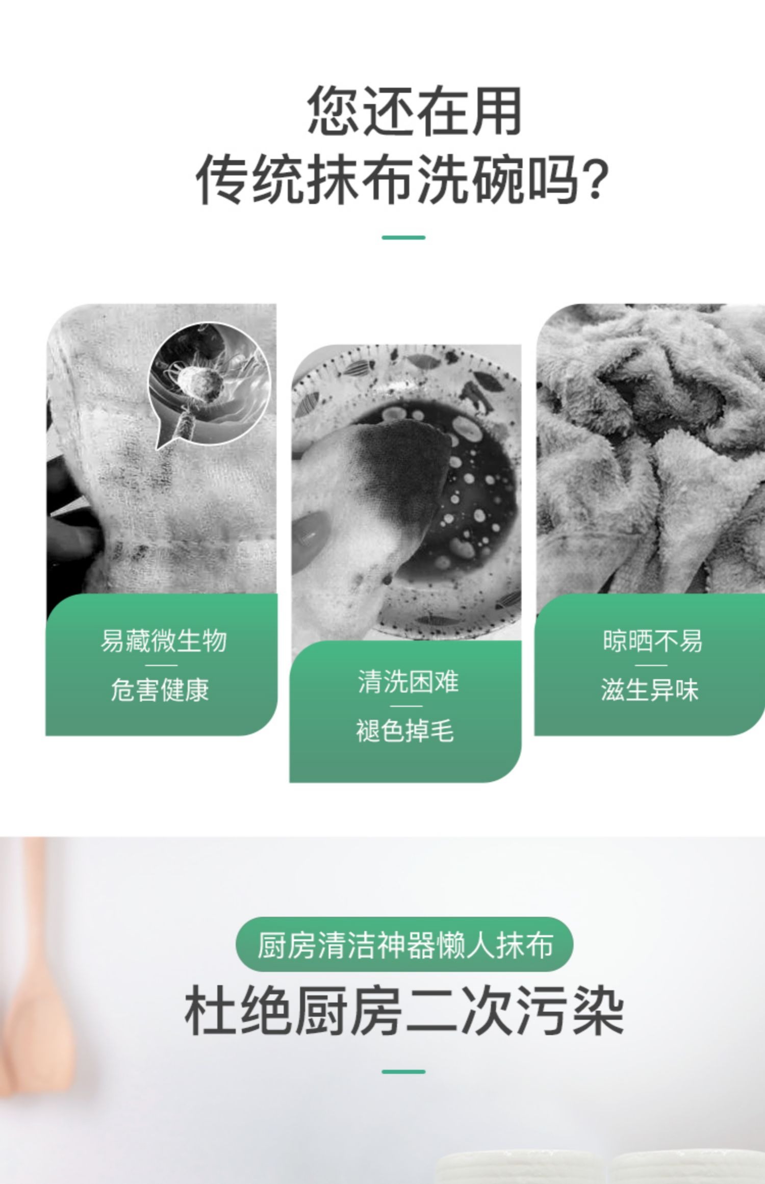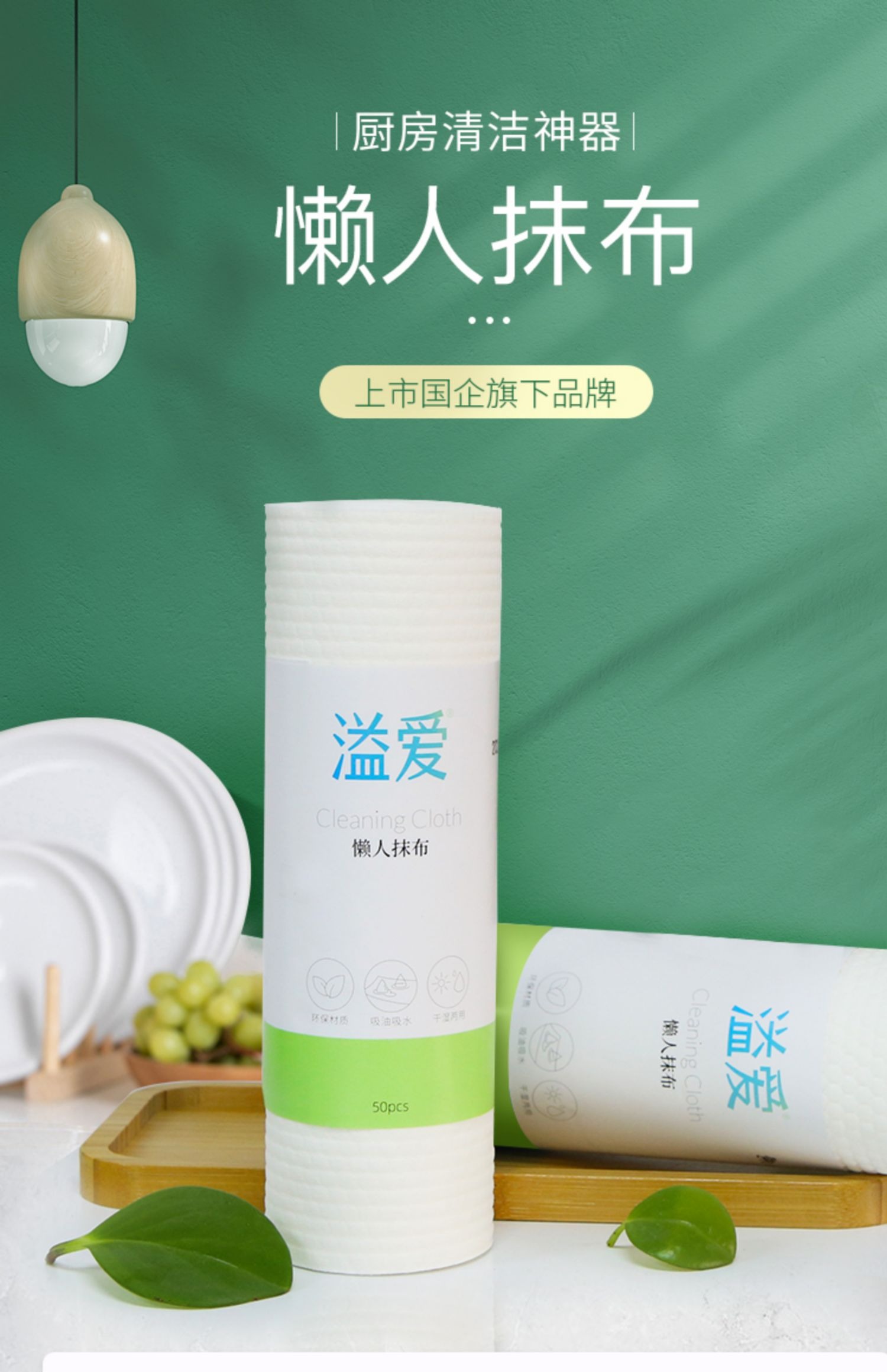 溢爱5大卷家用次抛懒人抹布50段/卷 干湿两用不沾油 能做去油洗碗布
