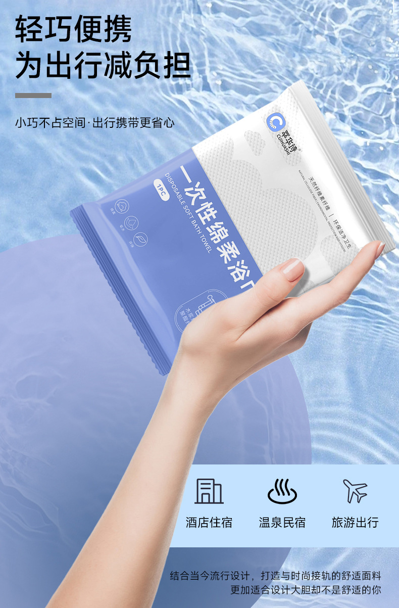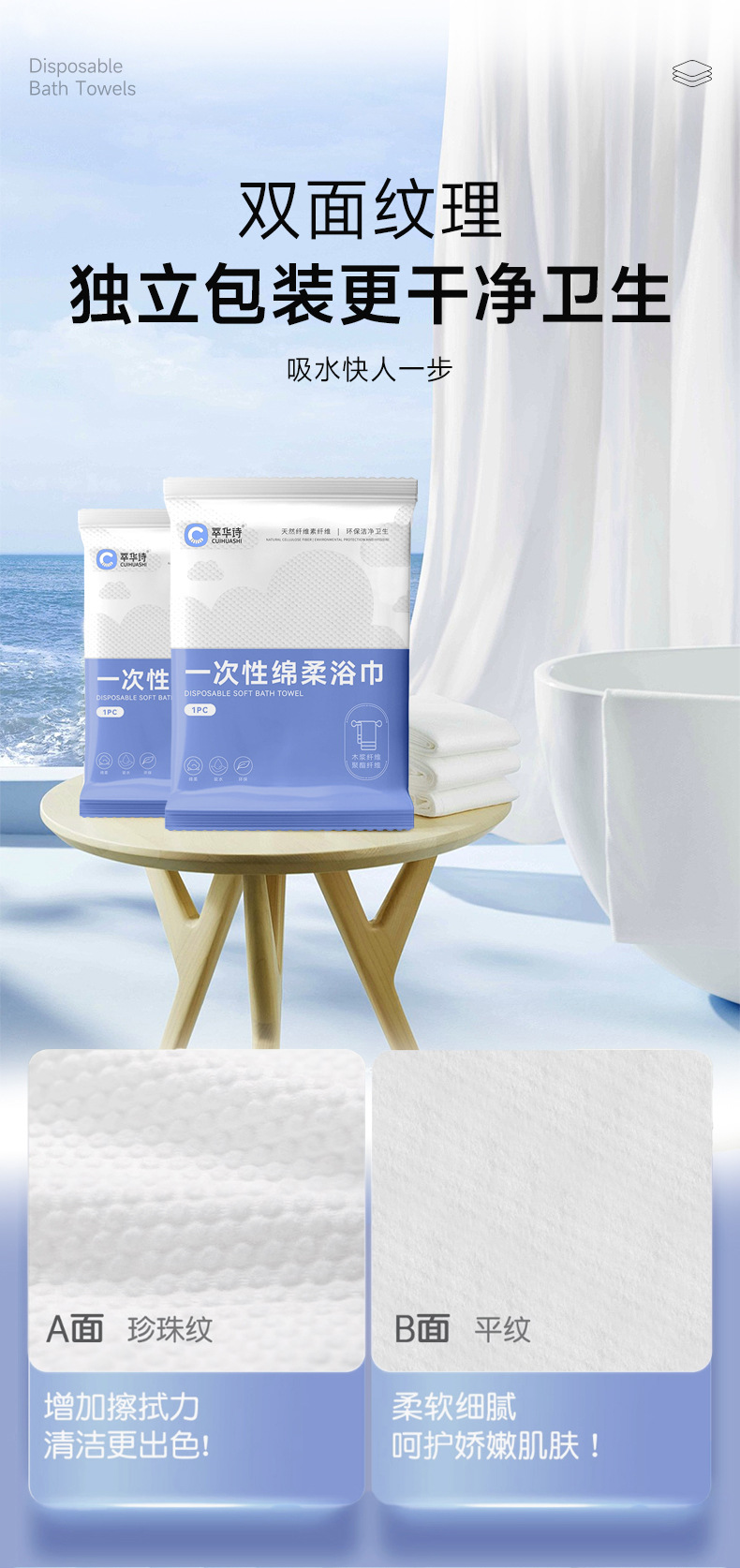 萃华诗 一次性加厚独立包装浴巾50*100 新老包装随机1条