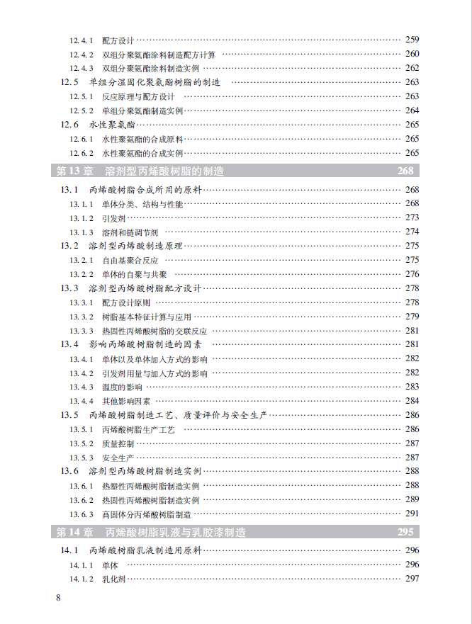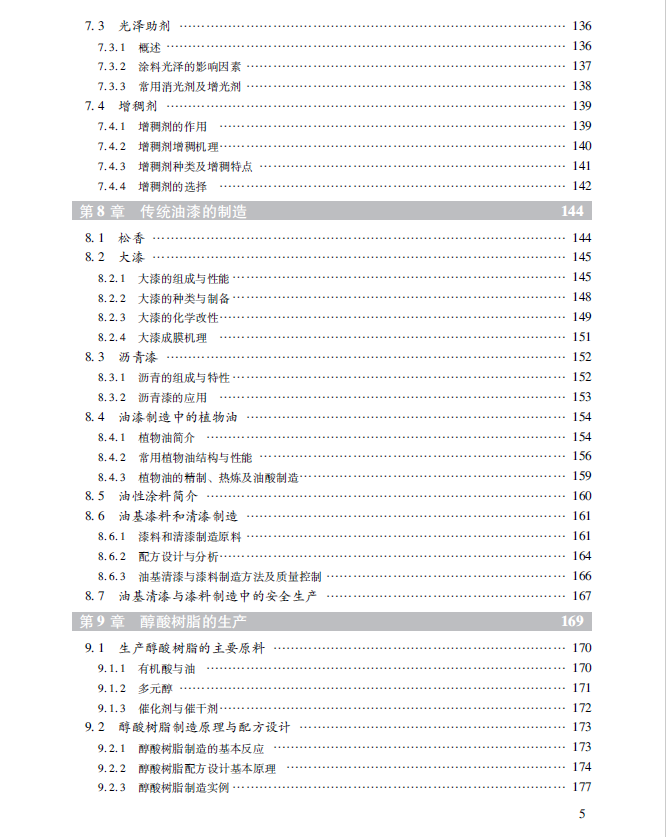 本书主要包括14章内容,分别为绪论、涂料性能与配方设计、涂膜的结构与性能、涂膜制造原理、涂料制造中的颜填料、涂料制造中的溶剂、涂料助剂、传统油漆的制造、醇酸树脂的生产、氨基树脂制造、环氧树脂与环氧酯树脂制造、聚氨酯树脂与涂料的制造、溶剂型丙烯酸树脂的制造、丙烯酸树脂乳液与乳胶漆制造等。