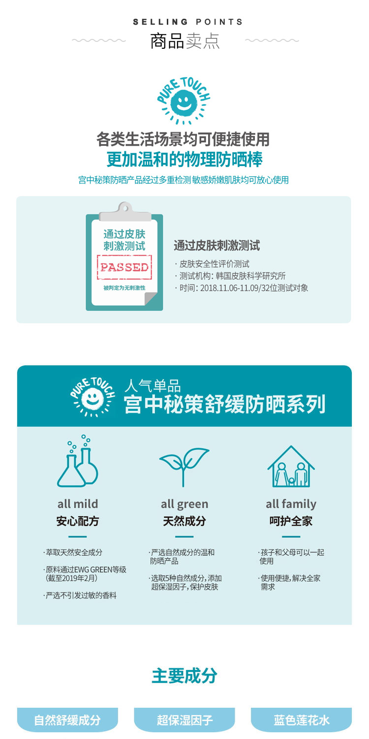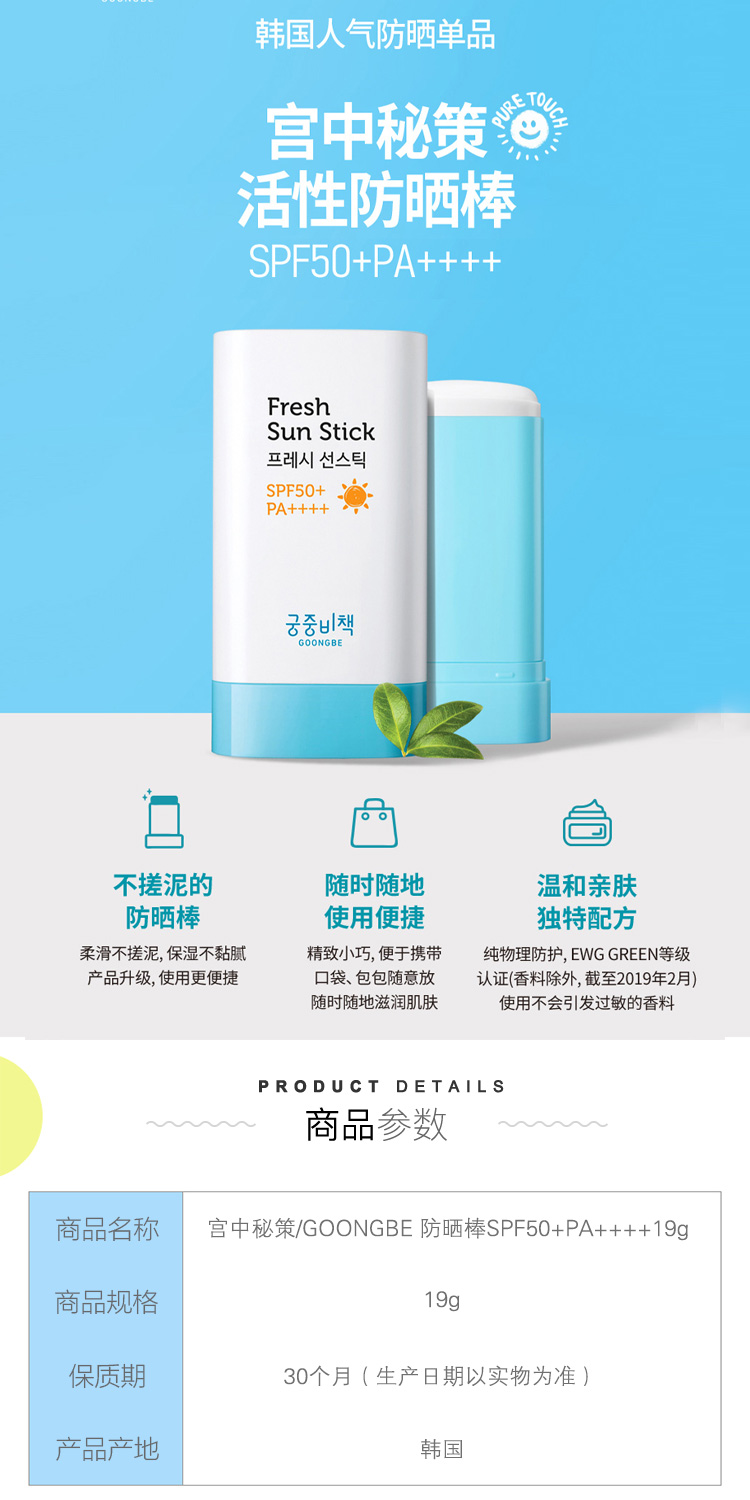 【一般贸易进口】韩国宫中秘策Goongbe儿童轻盈防晒棒SPF50+PA++++隔离保湿防晒霜19g
