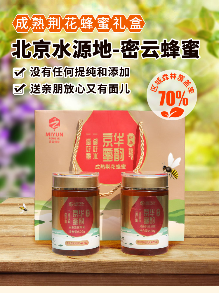 【送礼必备】北京水源地密云荆花蜂蜜 京华蜜韵礼盒装520g*2瓶