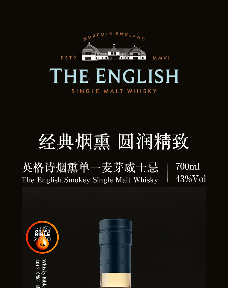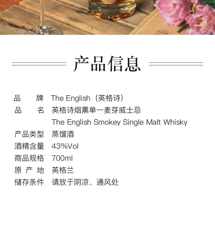 英格诗烟熏单一麦芽威士忌 43%vol 700ml