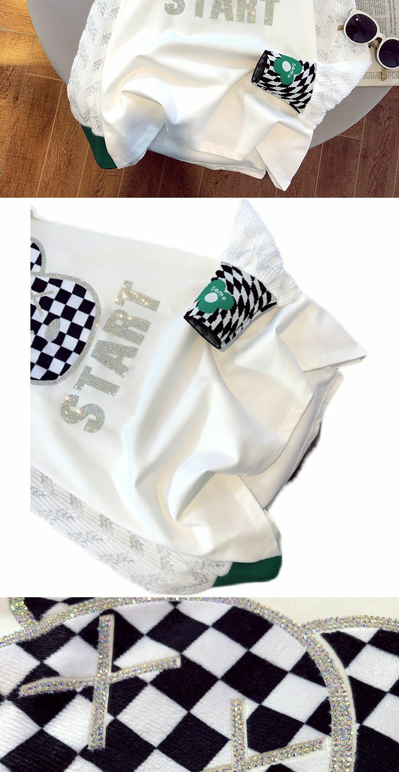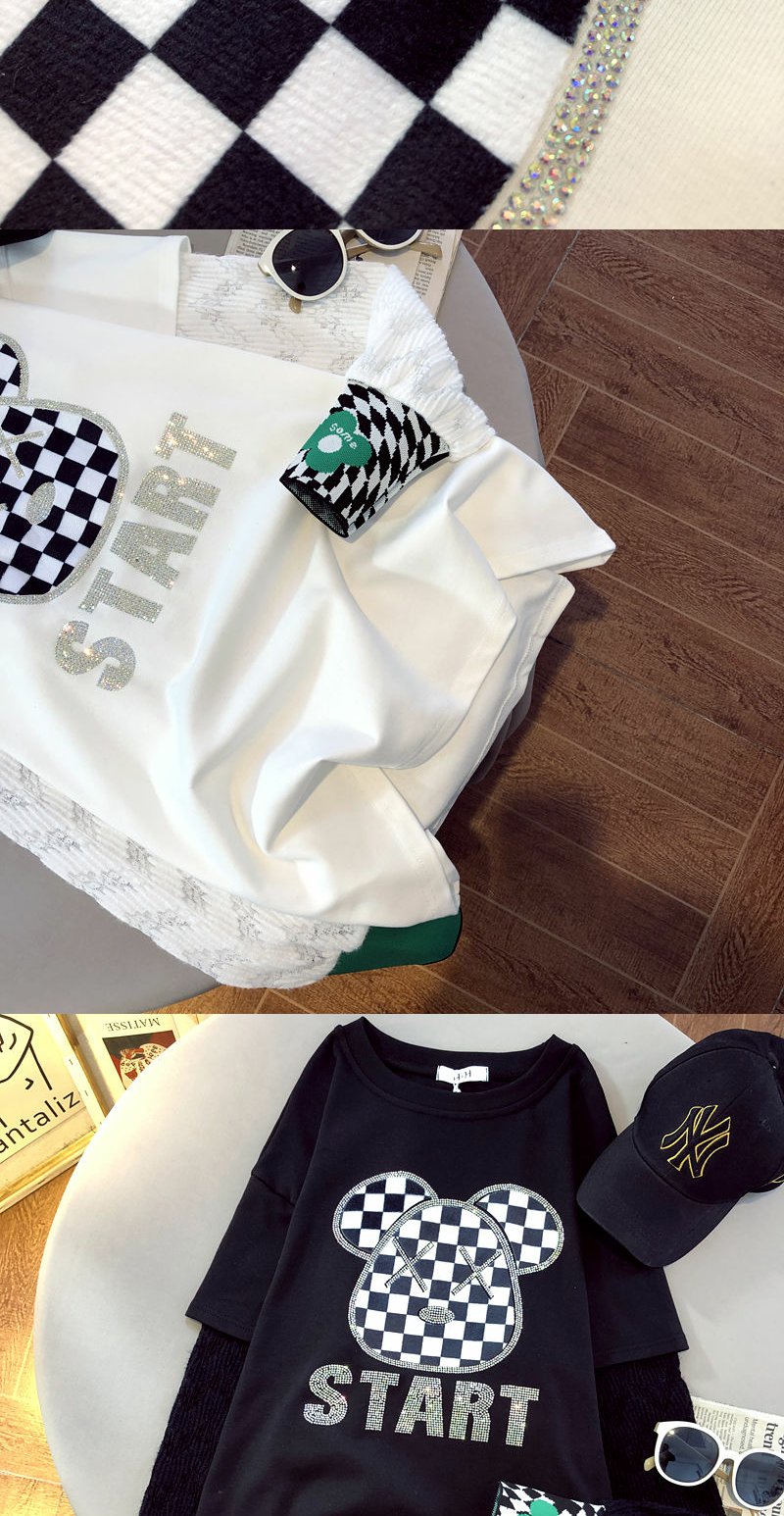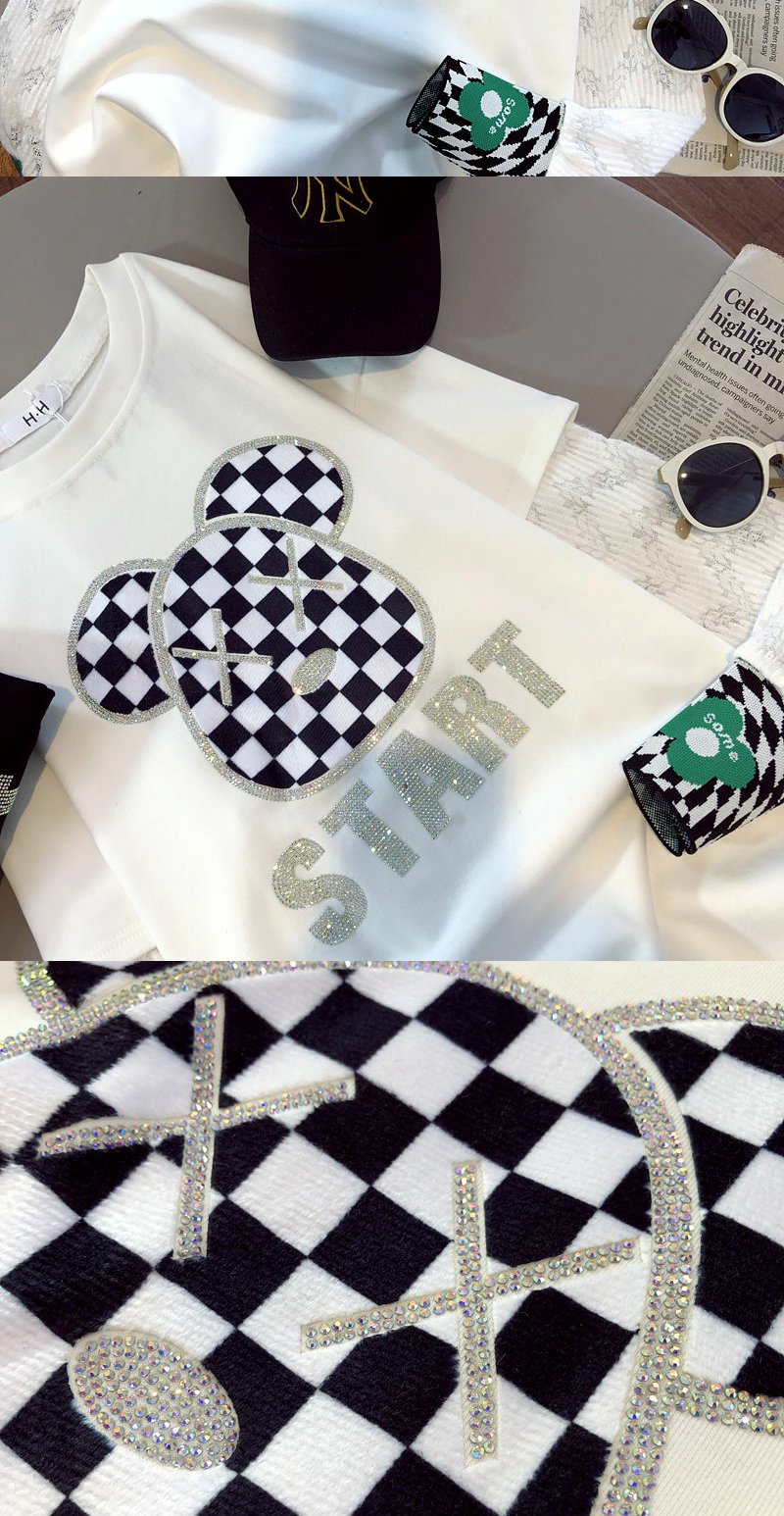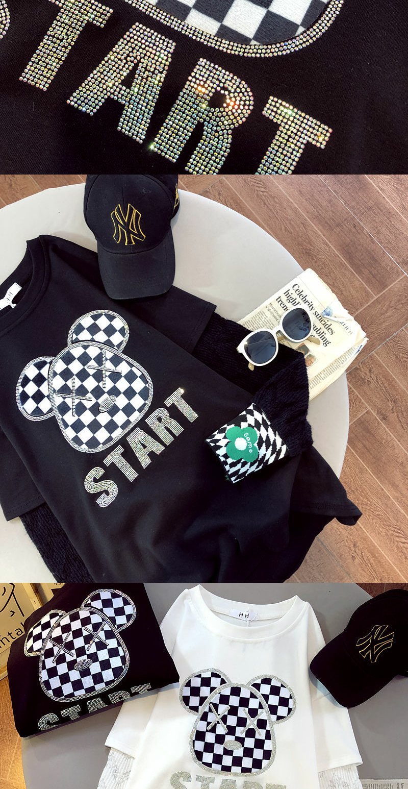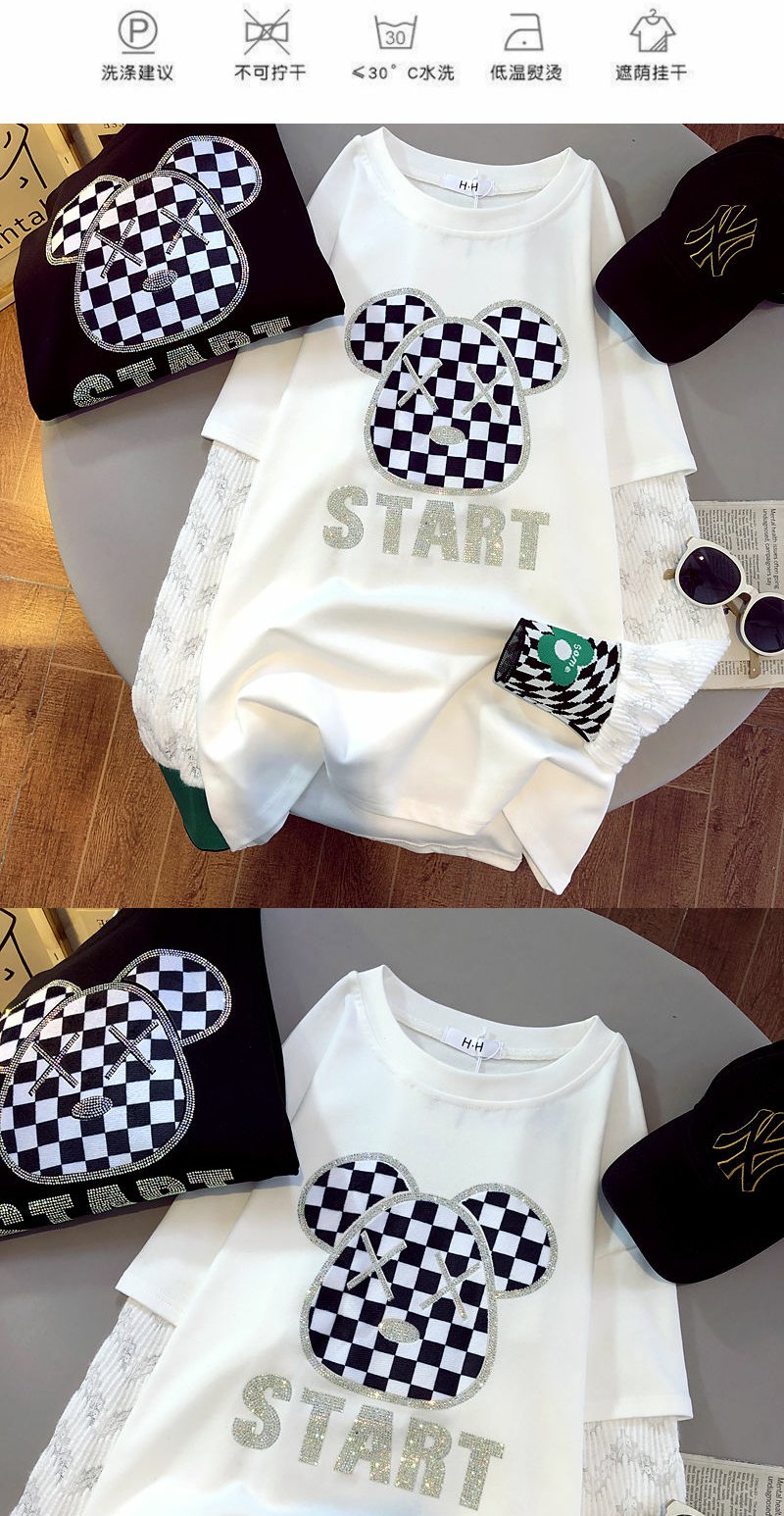 棉韩国东大门新款ins烫钻卡通长袖T恤加厚蕾丝袖上衣女