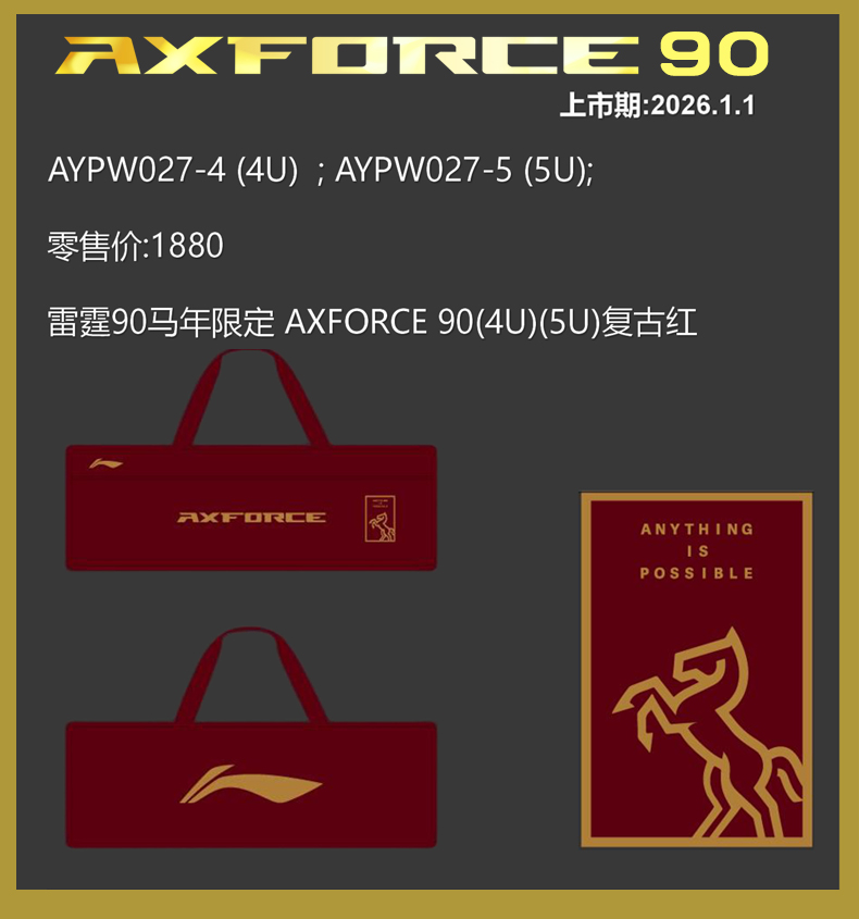[空拍收货后返现chutianyundong,可选编号]李宁2026新款雷霆90马年限定高端专业拍单打进攻全碳素羽毛球拍
