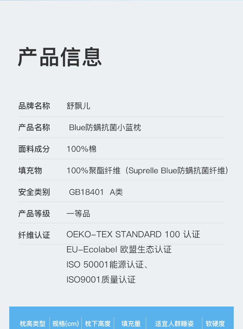 【儿童/成人】舒飘儿 Blue防螨抗菌儿童/成人小蓝枕