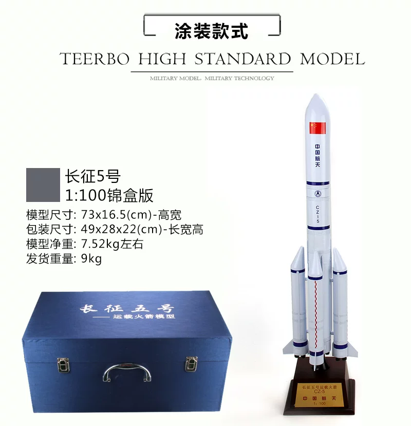FXQ 特尔博-长春航展、九三阅兵纪念品 1:150 1:100中国长征五号火箭模型 合金成品玩具长征5号发射航天模型