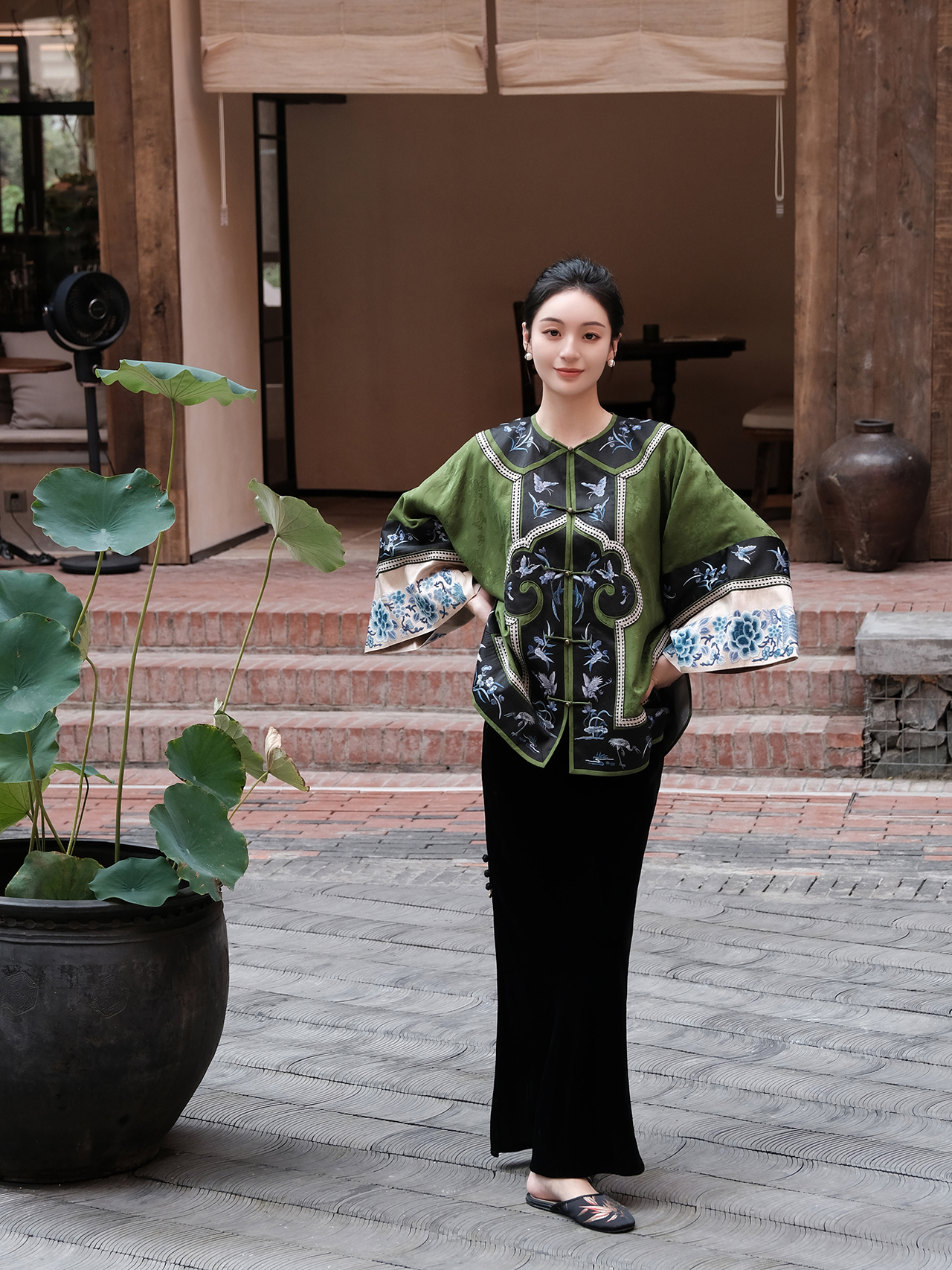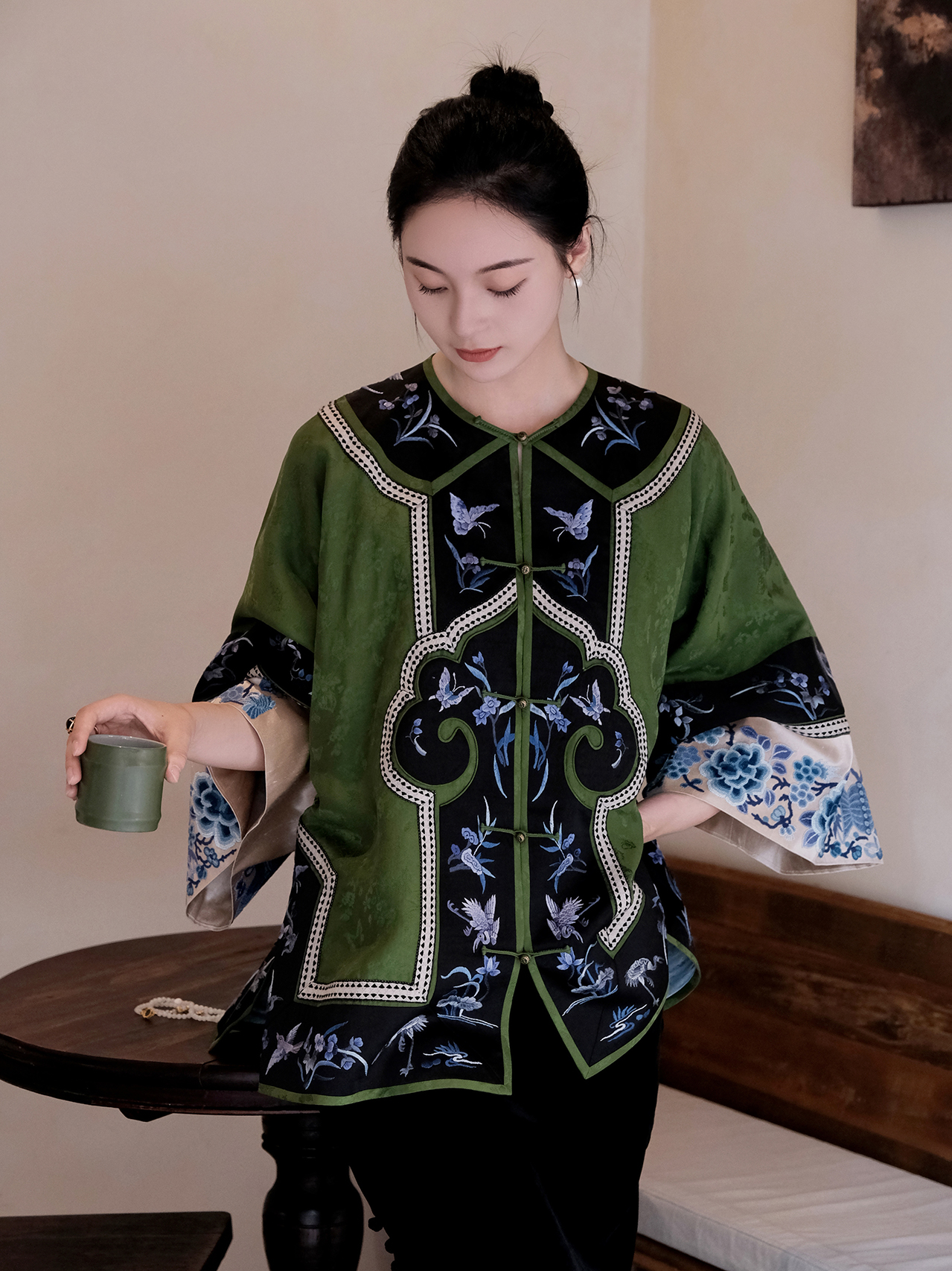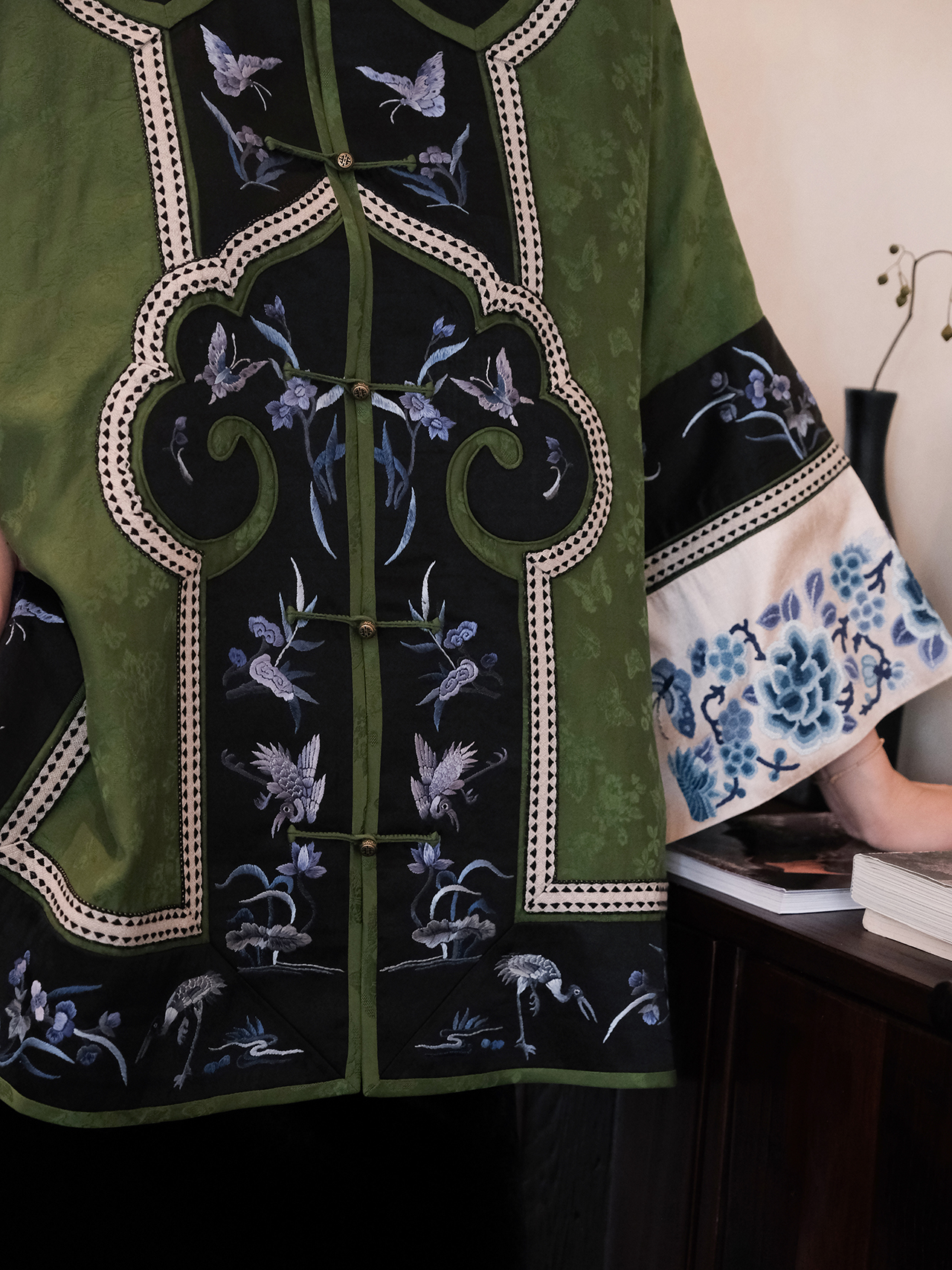 盛唐牡丹|高货-香云纱三蓝绣对襟外套