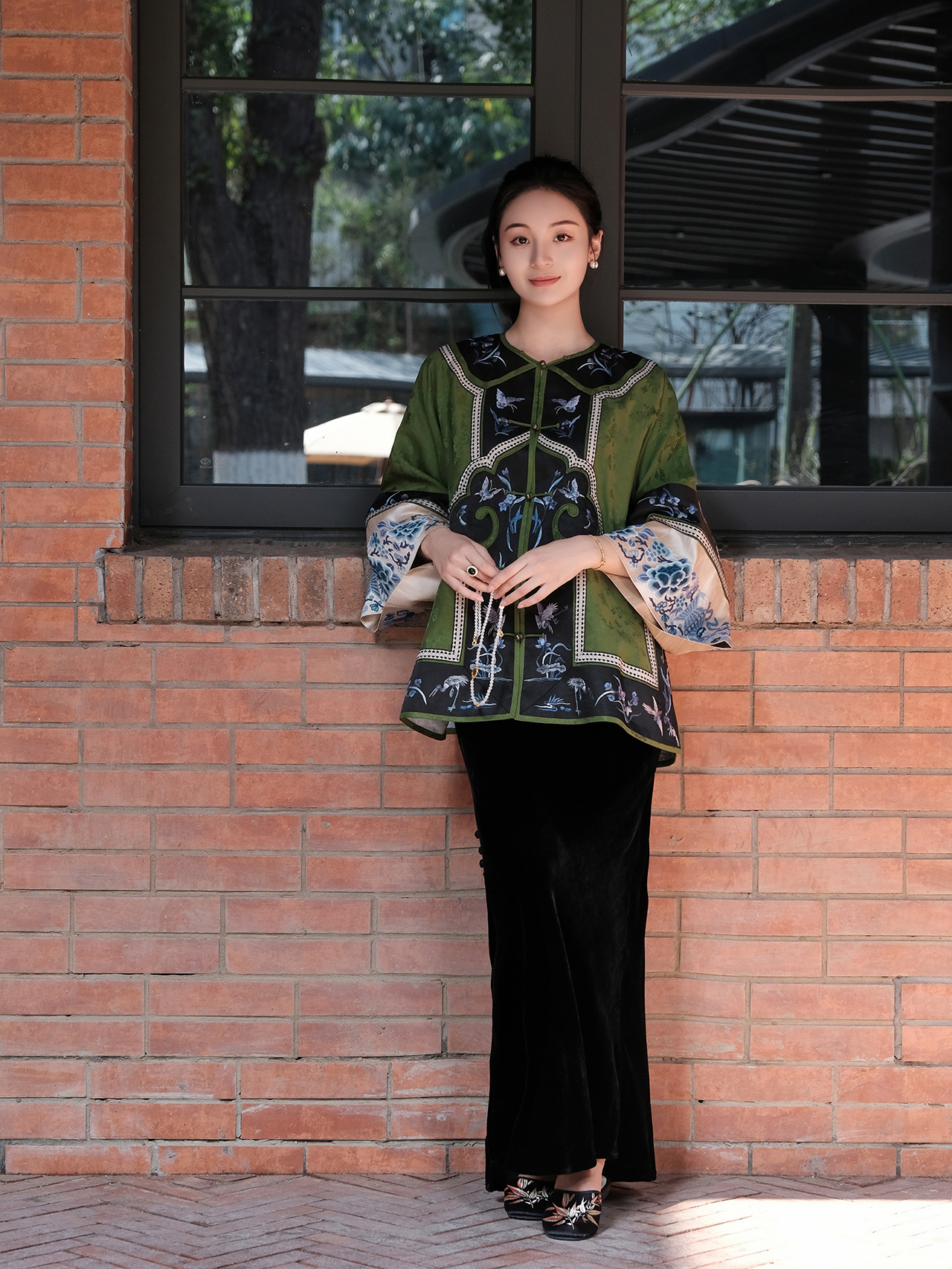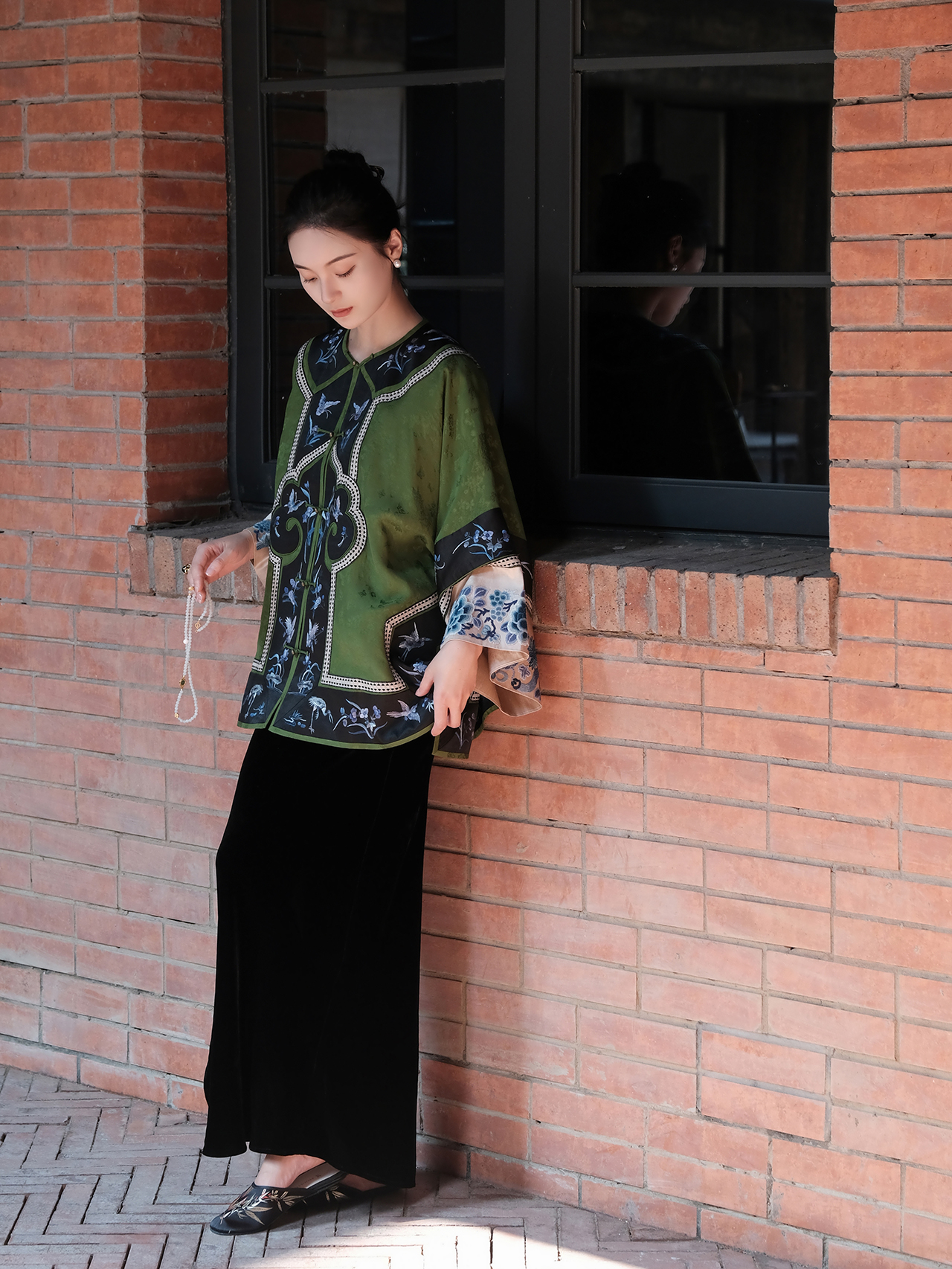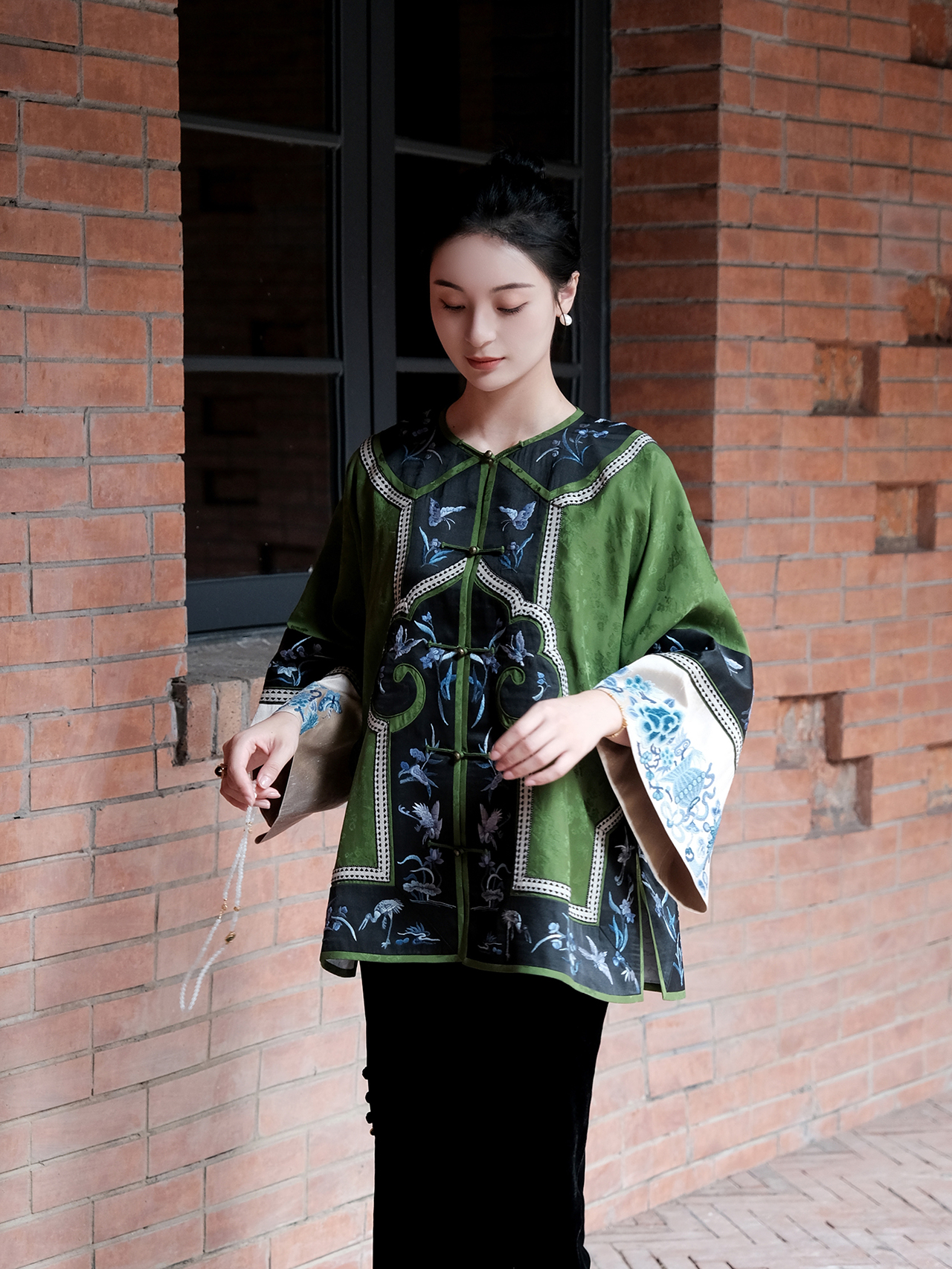 盛唐牡丹|高货-香云纱三蓝绣对襟外套