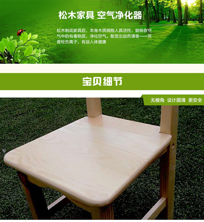幼儿园松木六人桌实木桌子环保漆圆角设计松木桌椅