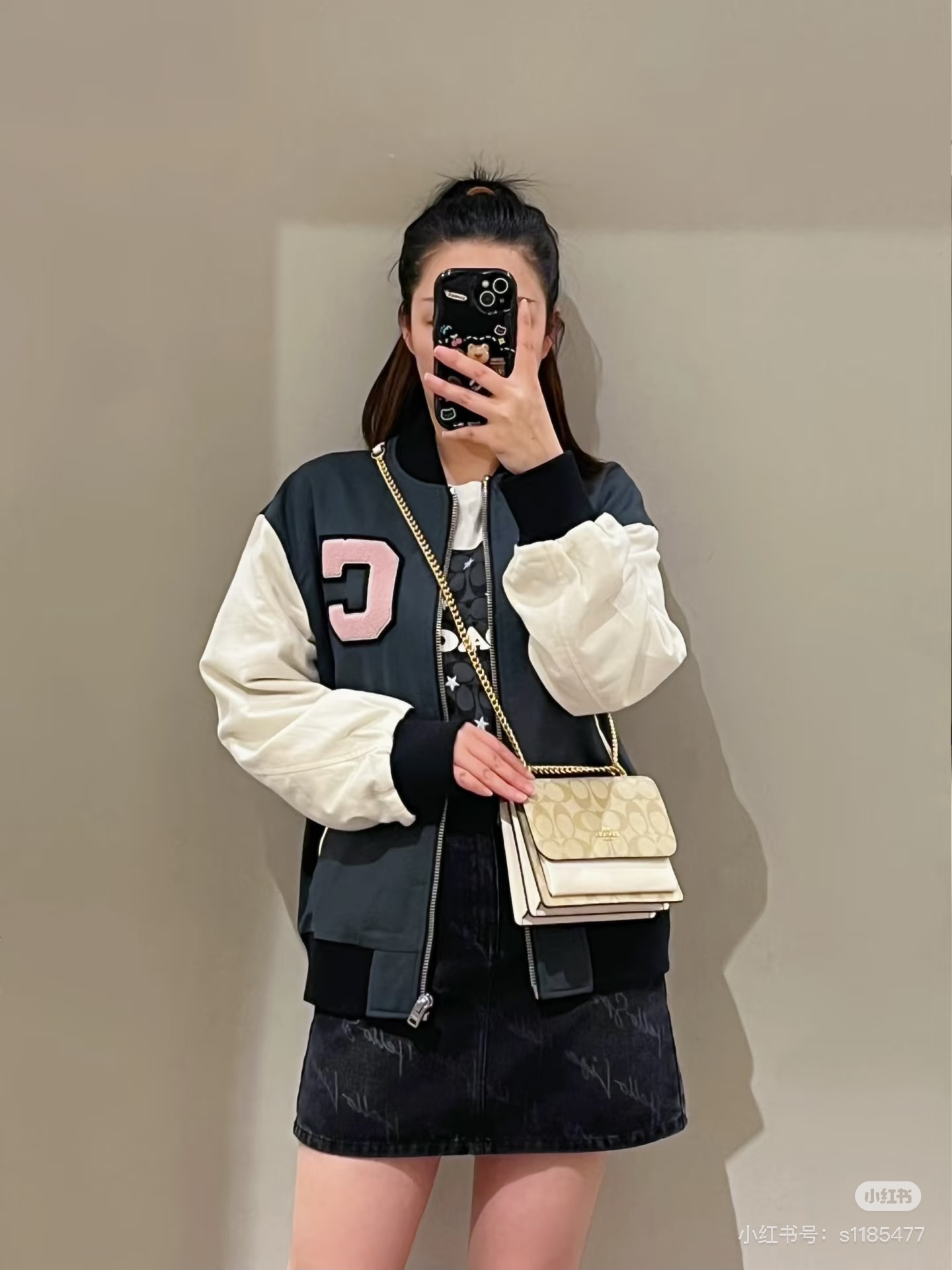 蔻驰女士夹克保暖防风棉质拼色春秋日常外套爆款休闲!!